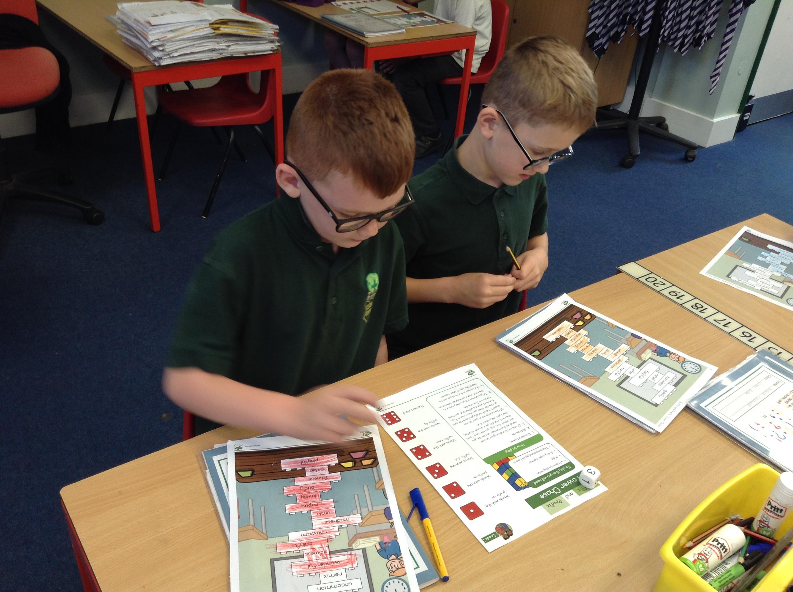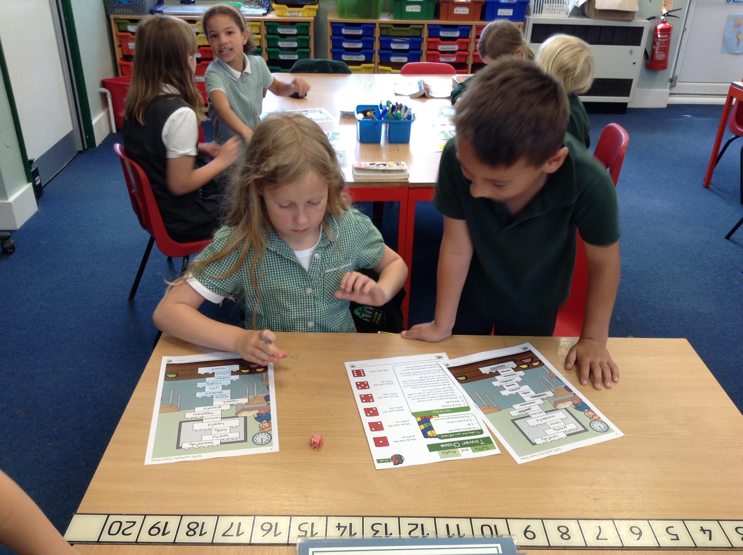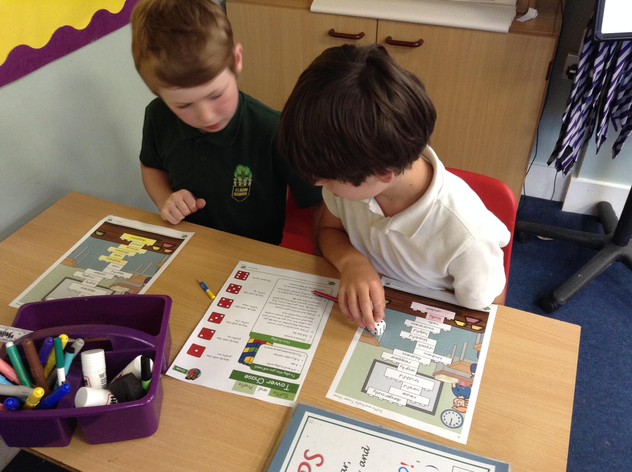 In English we have been learning about prefixes and suffixes. We enjoyed playing a game, rolling the dice and colouring the matching word.