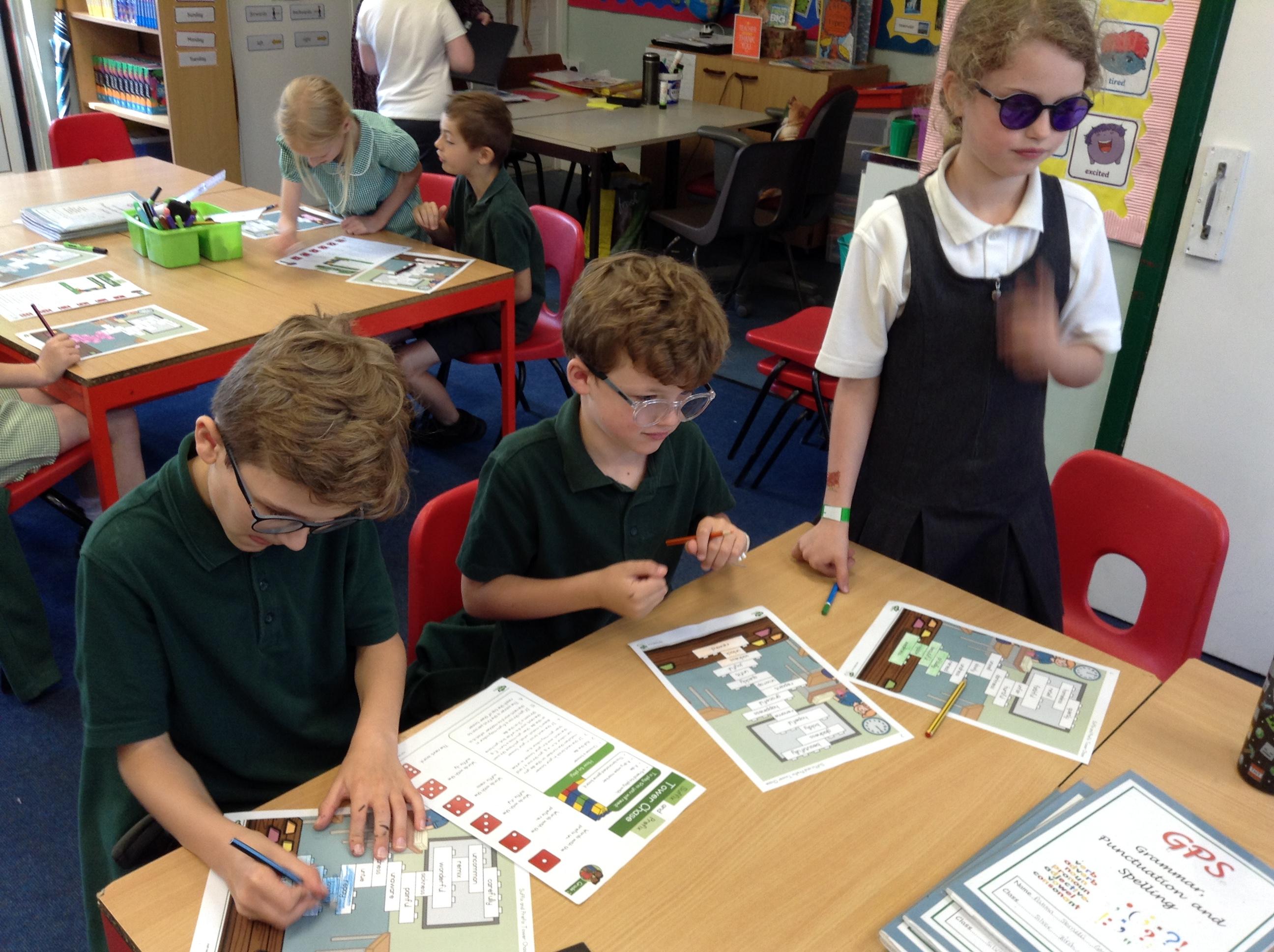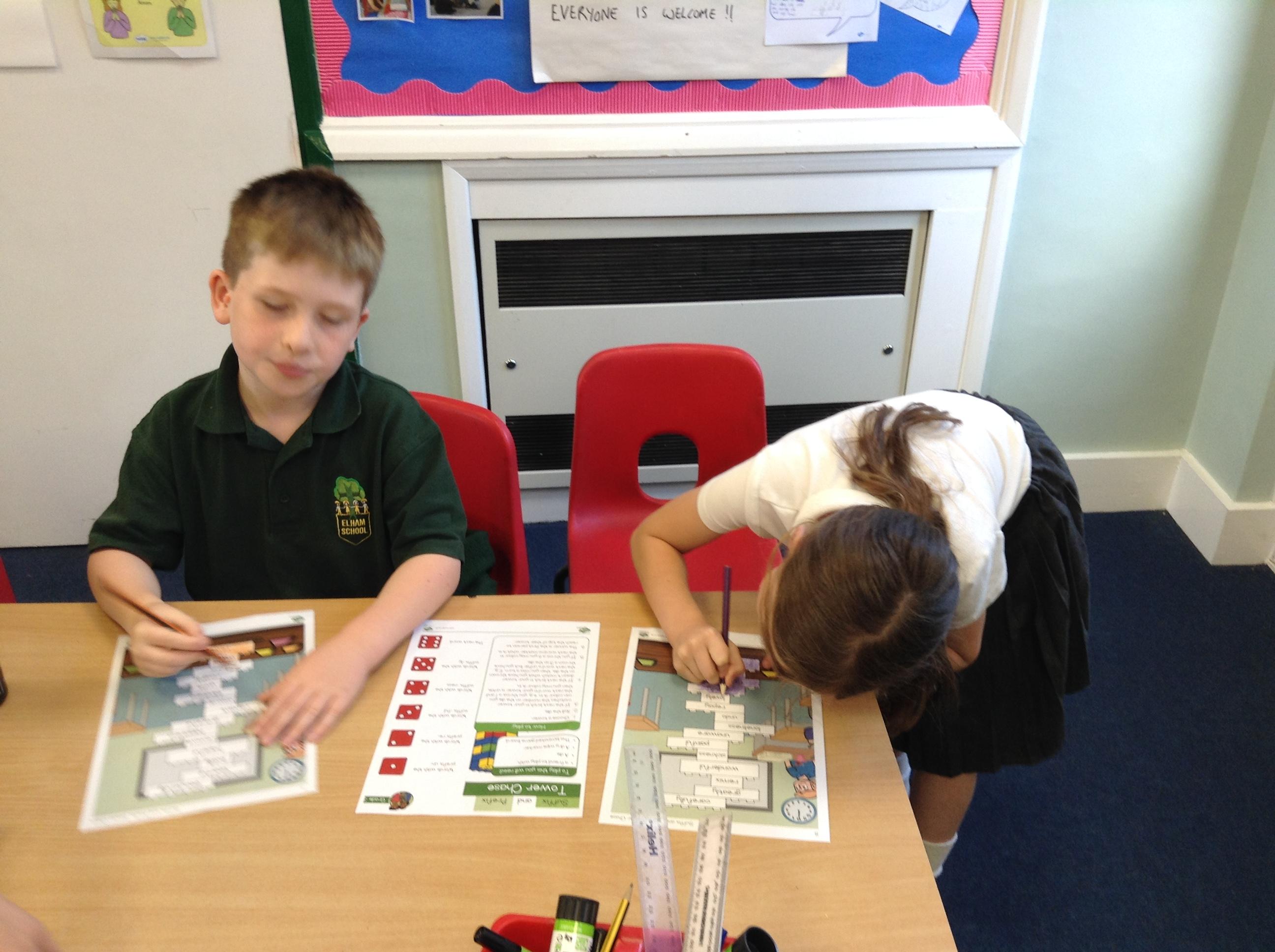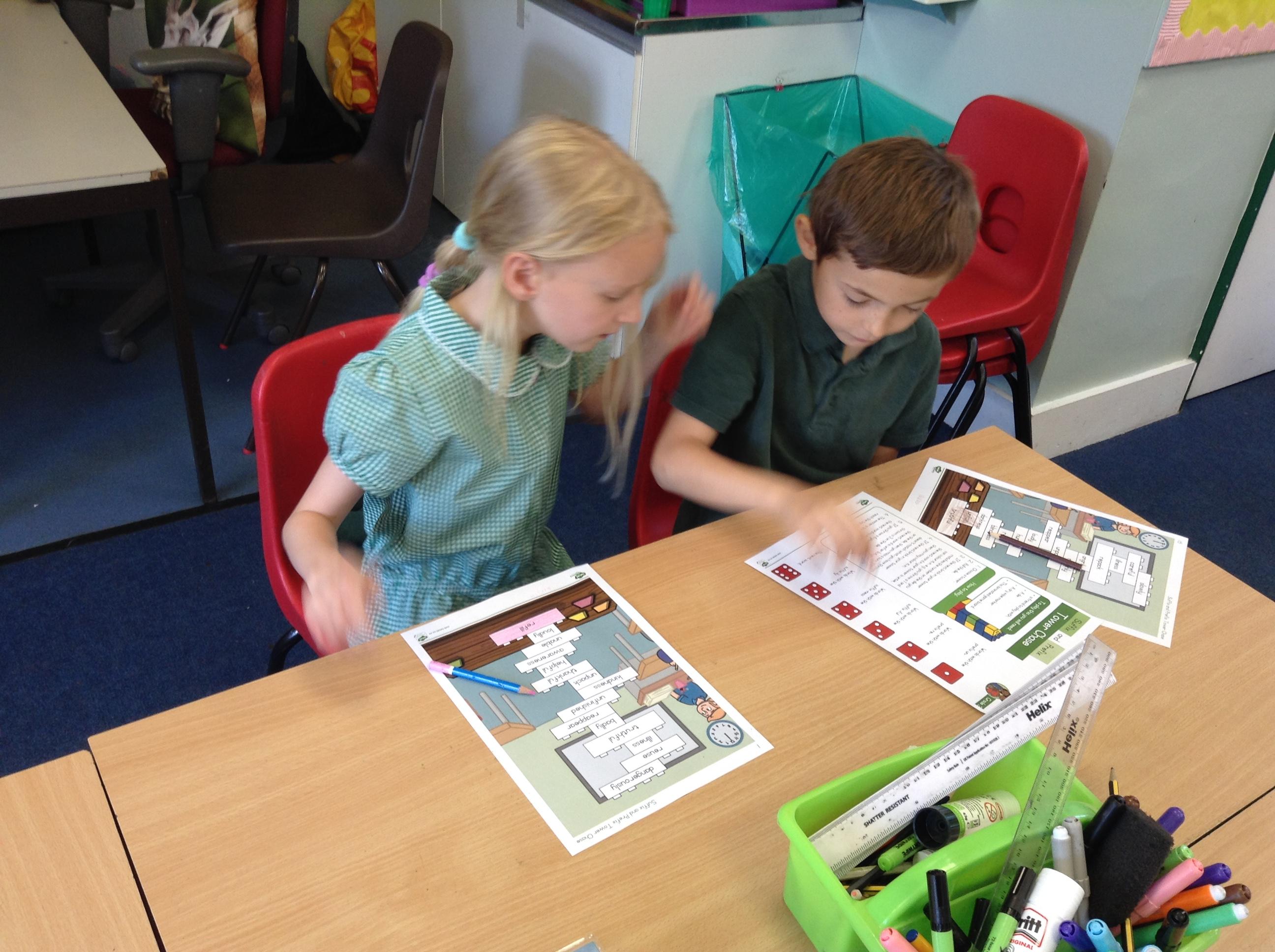 In English we have been learning about prefixes and suffixes. We enjoyed playing a game, rolling the dice and colouring the matching word.