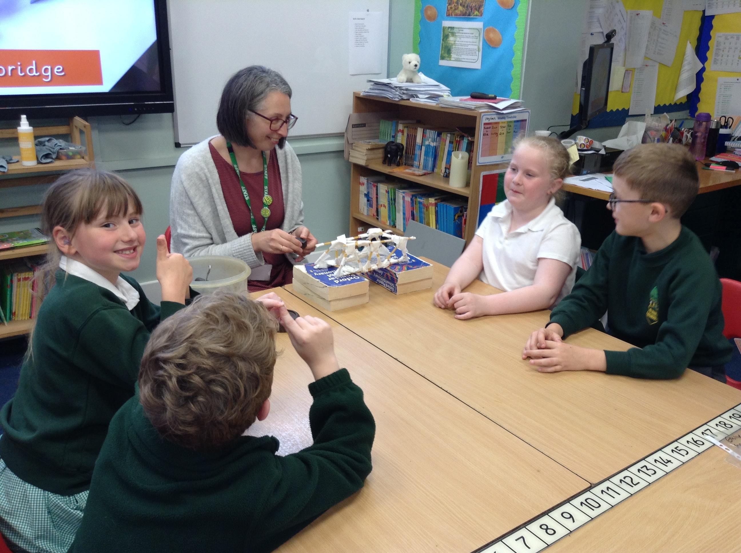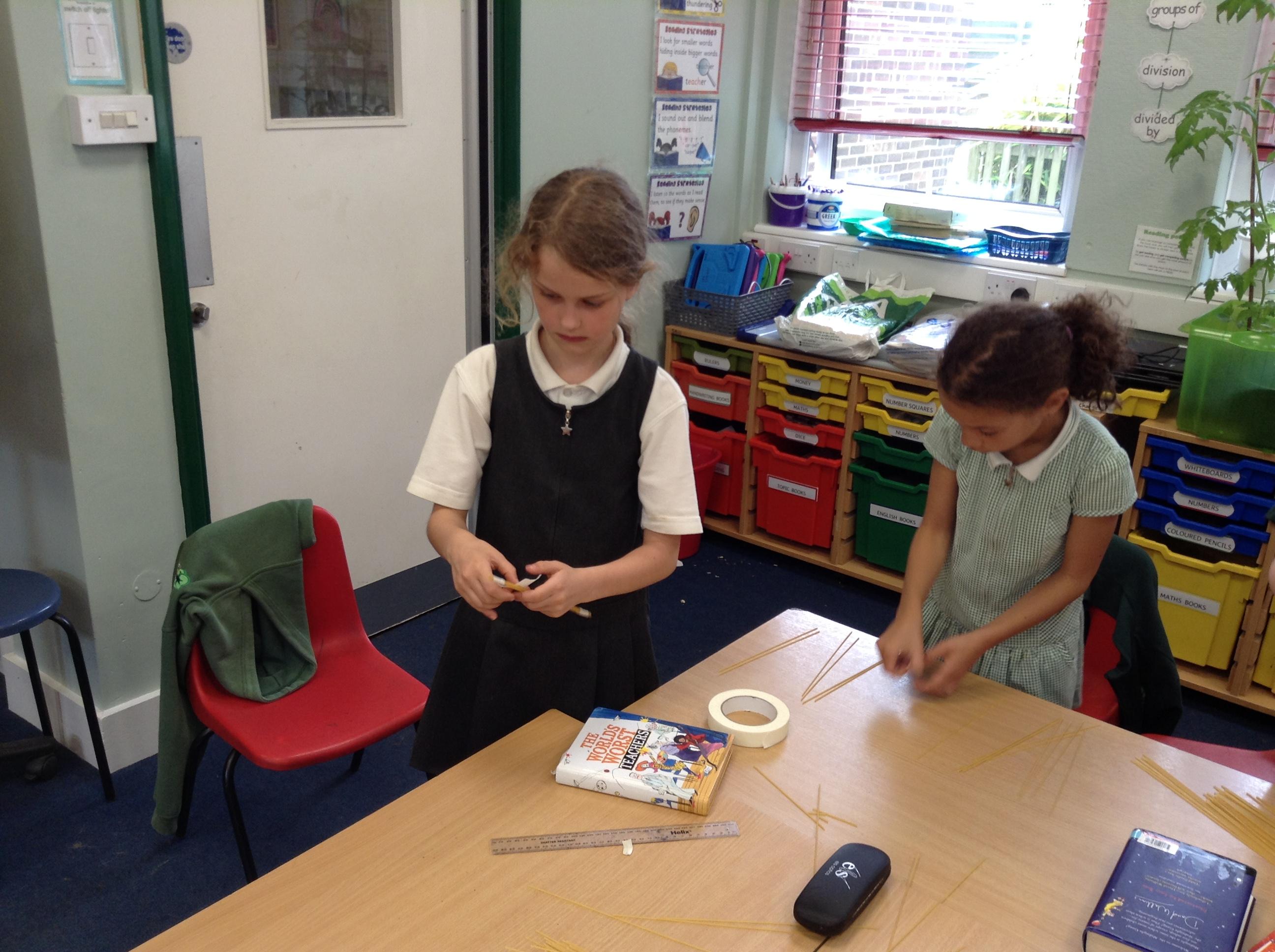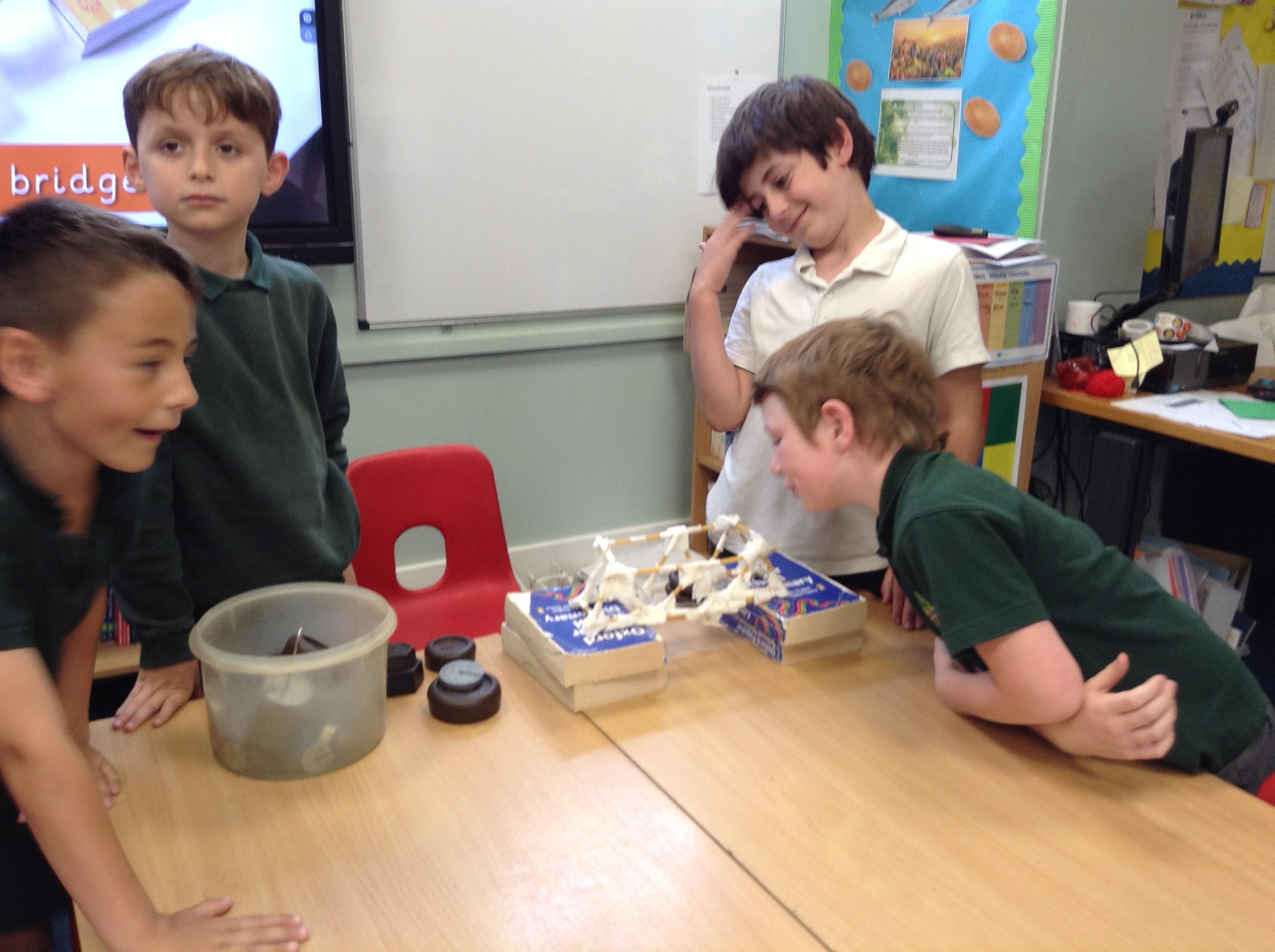 In DT we have been building bridges using spaghetti and masking tape. We worked in groups to make triangles and beams. We tested our bridges for strength using weights, they we really good! Four of the bridges held 1kg!