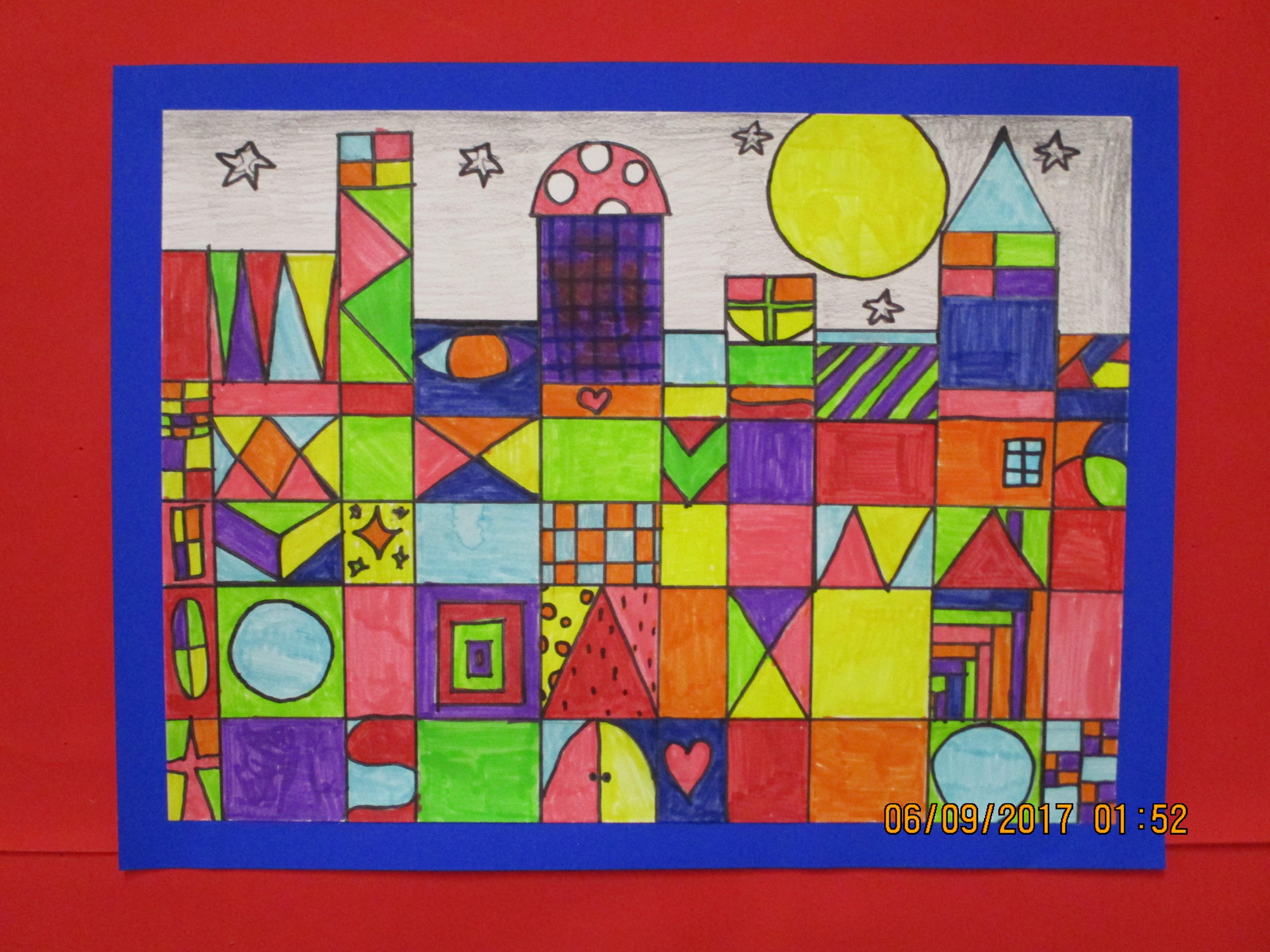 On Wednesday we were introduced to the work of the artist Paul Klee by Mrs Vincent and Mrs Glass and were taught how to produce a piece of art in his style, either a skyscape or a wordscape. We all produced fantastic designs, which are now on display (some in the hall, some in our school 'art gallery'). You can see a small selection of them below.