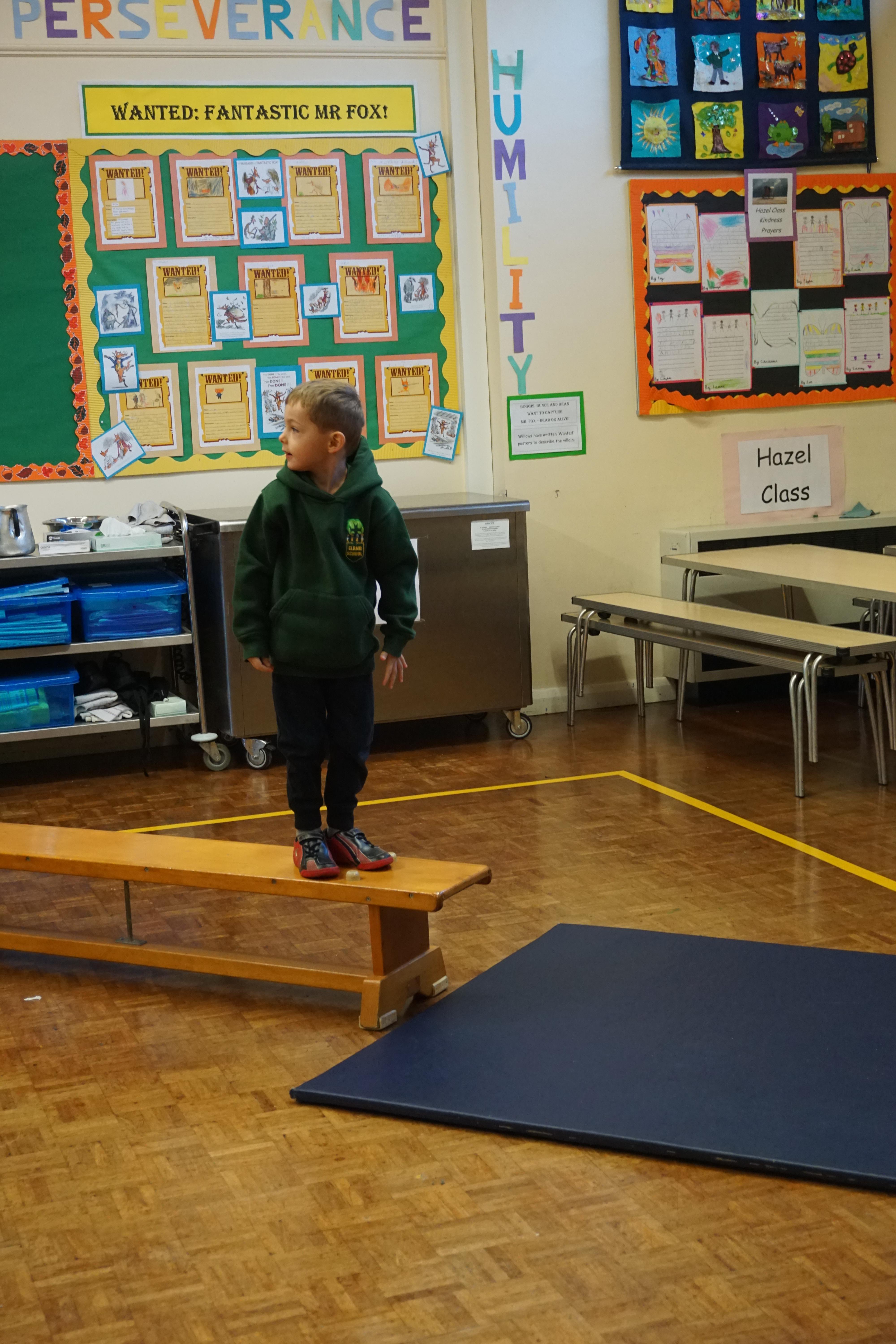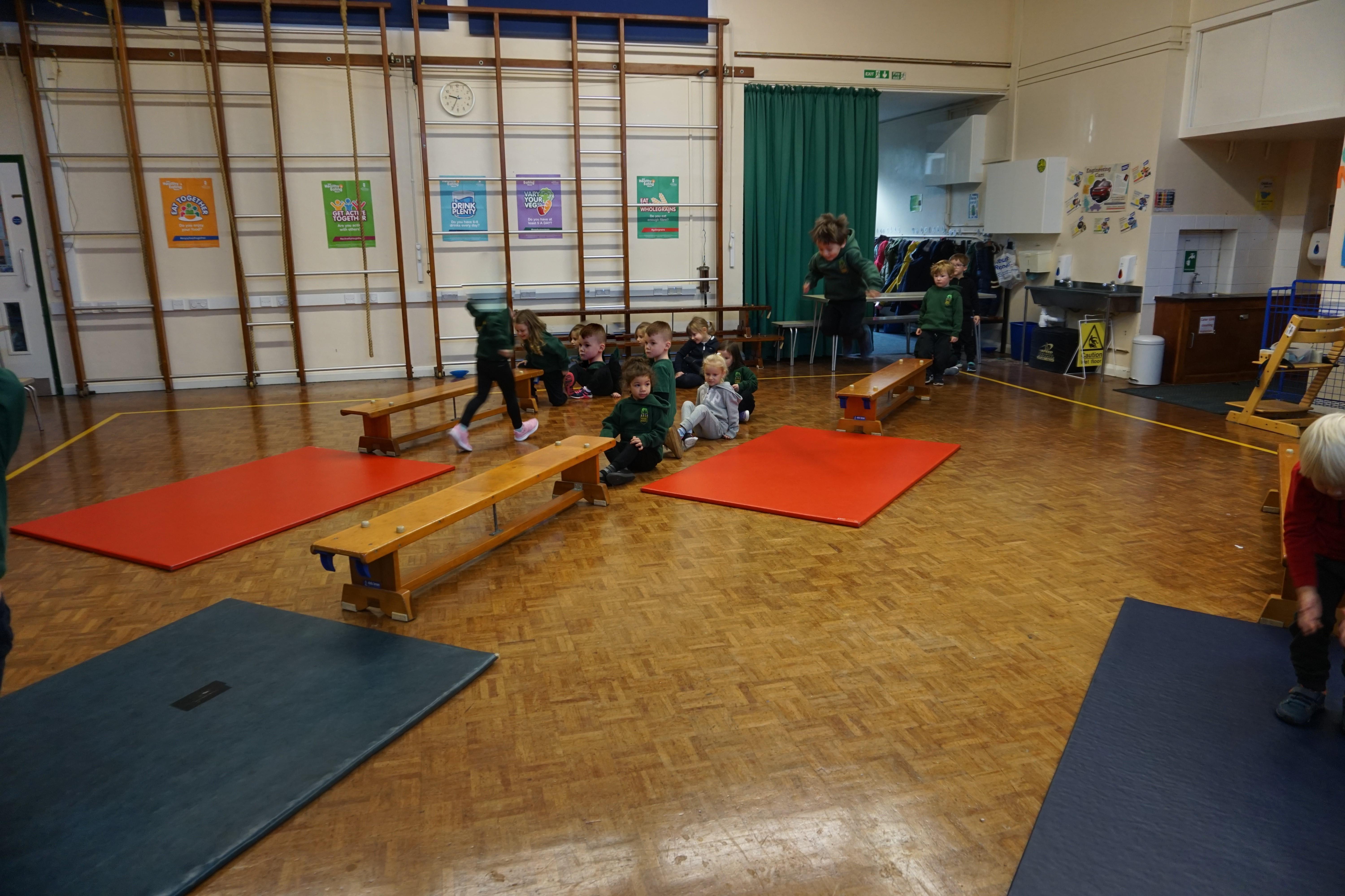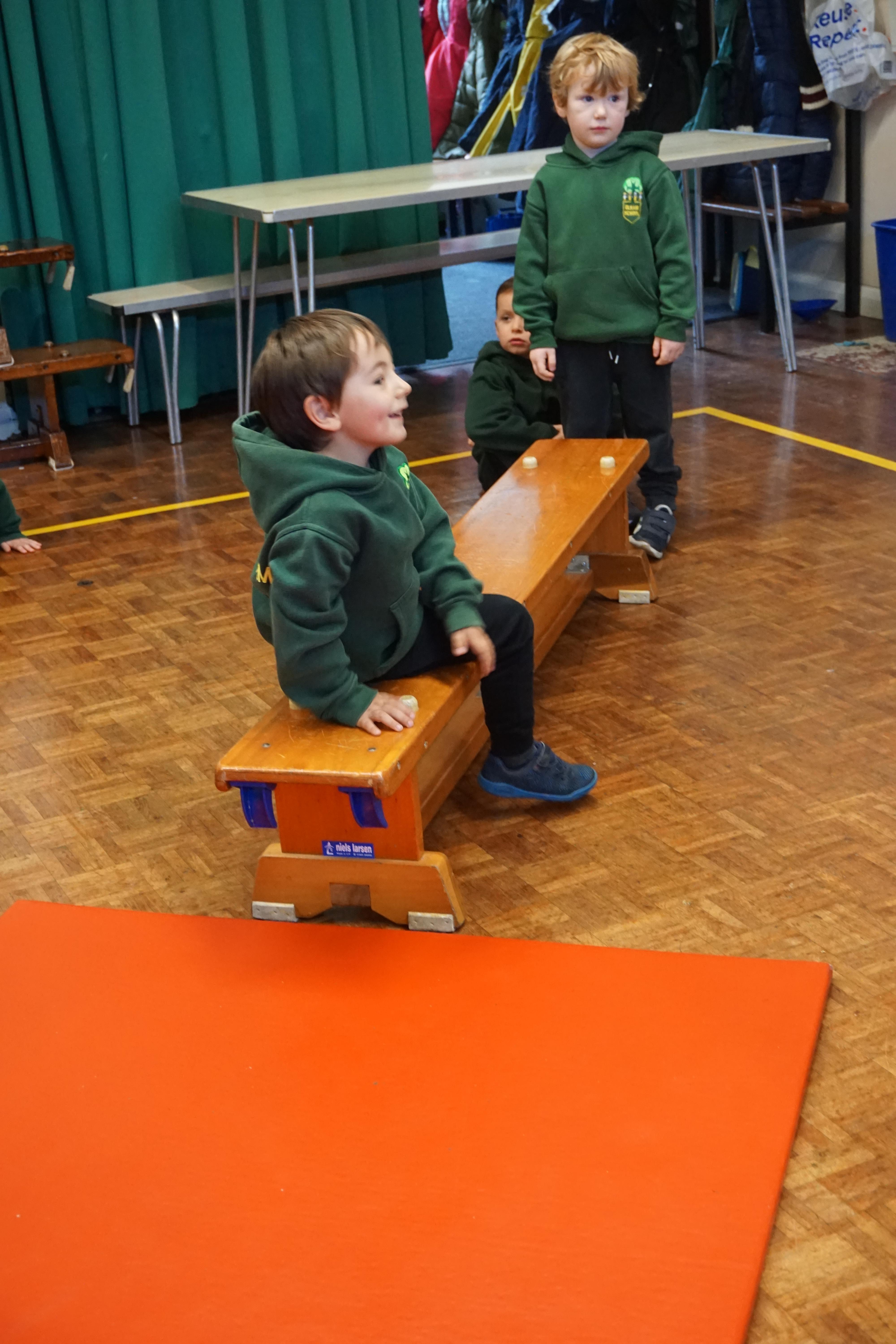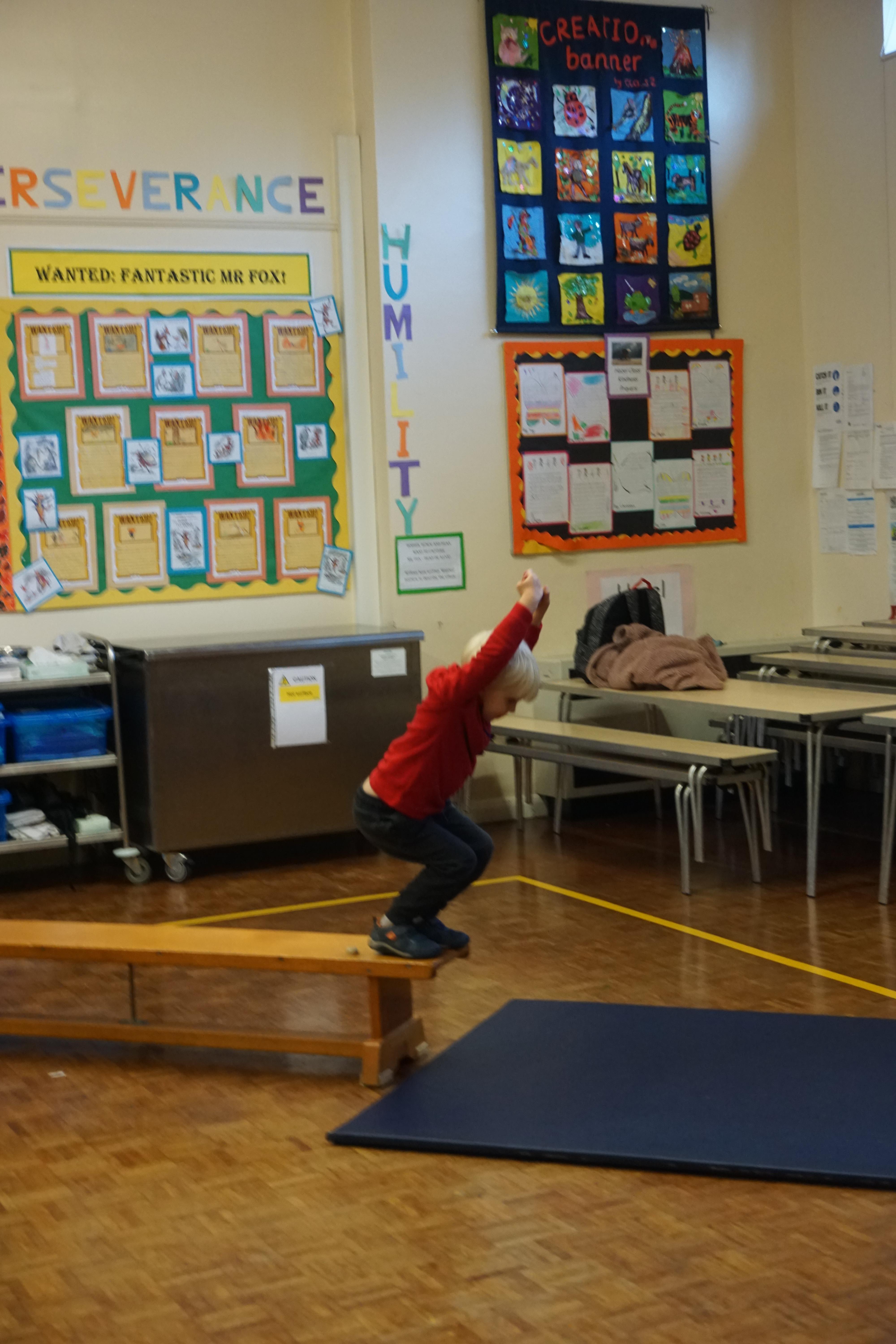 We also had our first PE session. Thank you for all coming dressed in PE clothes. We learnt how to sit in a space, travel in different ways along a bench and jump safely bending our knees. We also played some fun games to warm up and thought about what happens to our bodies when we exercise.