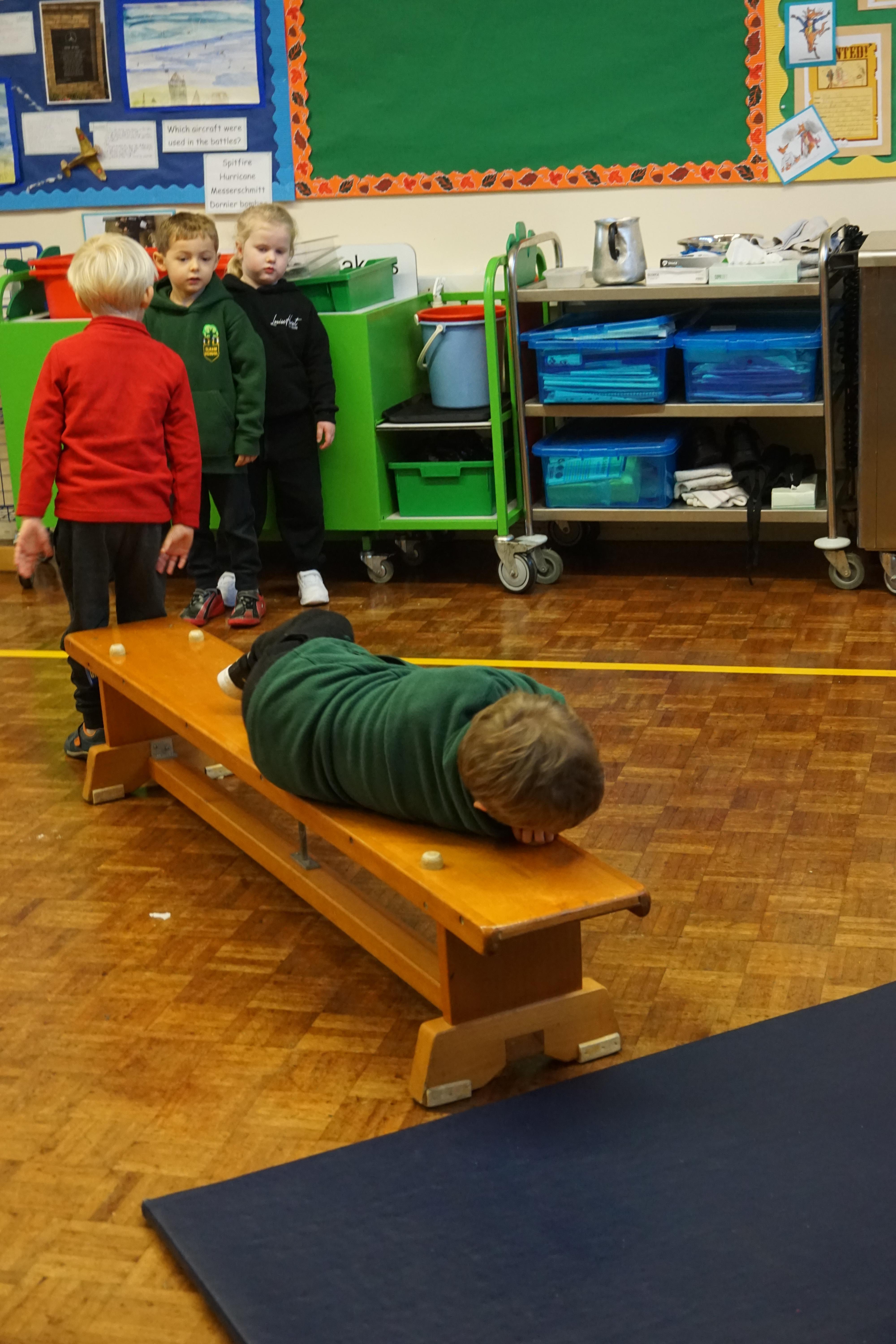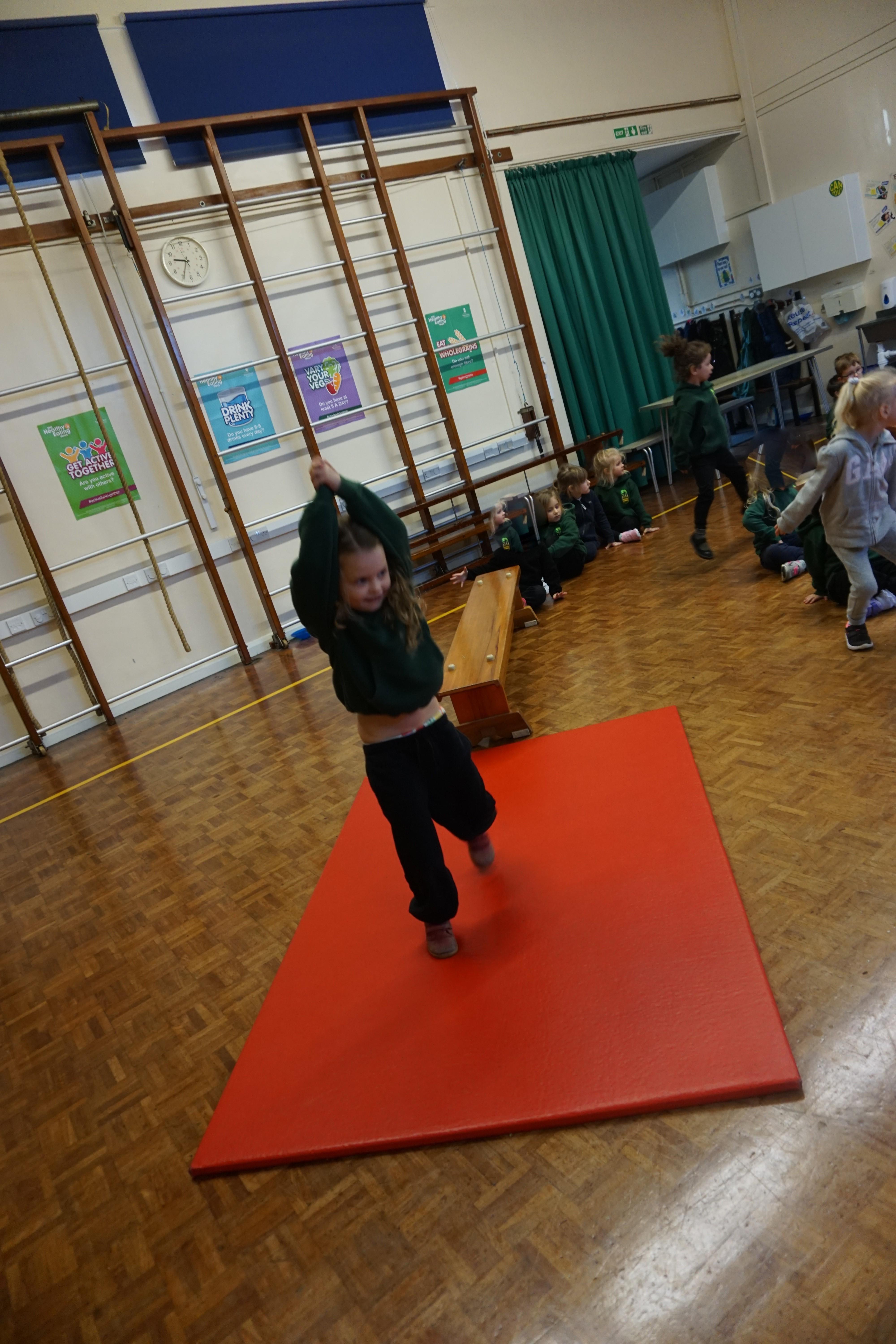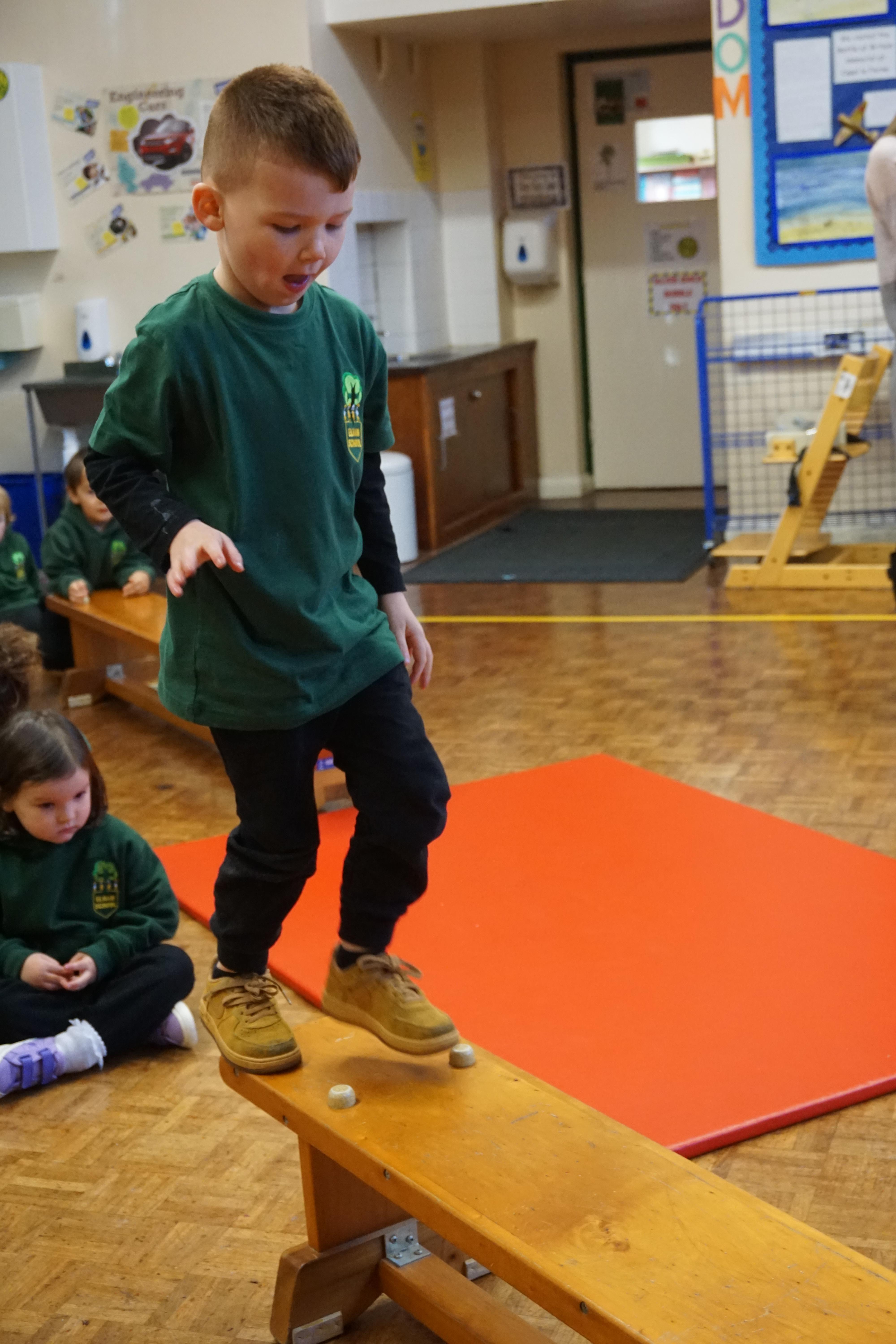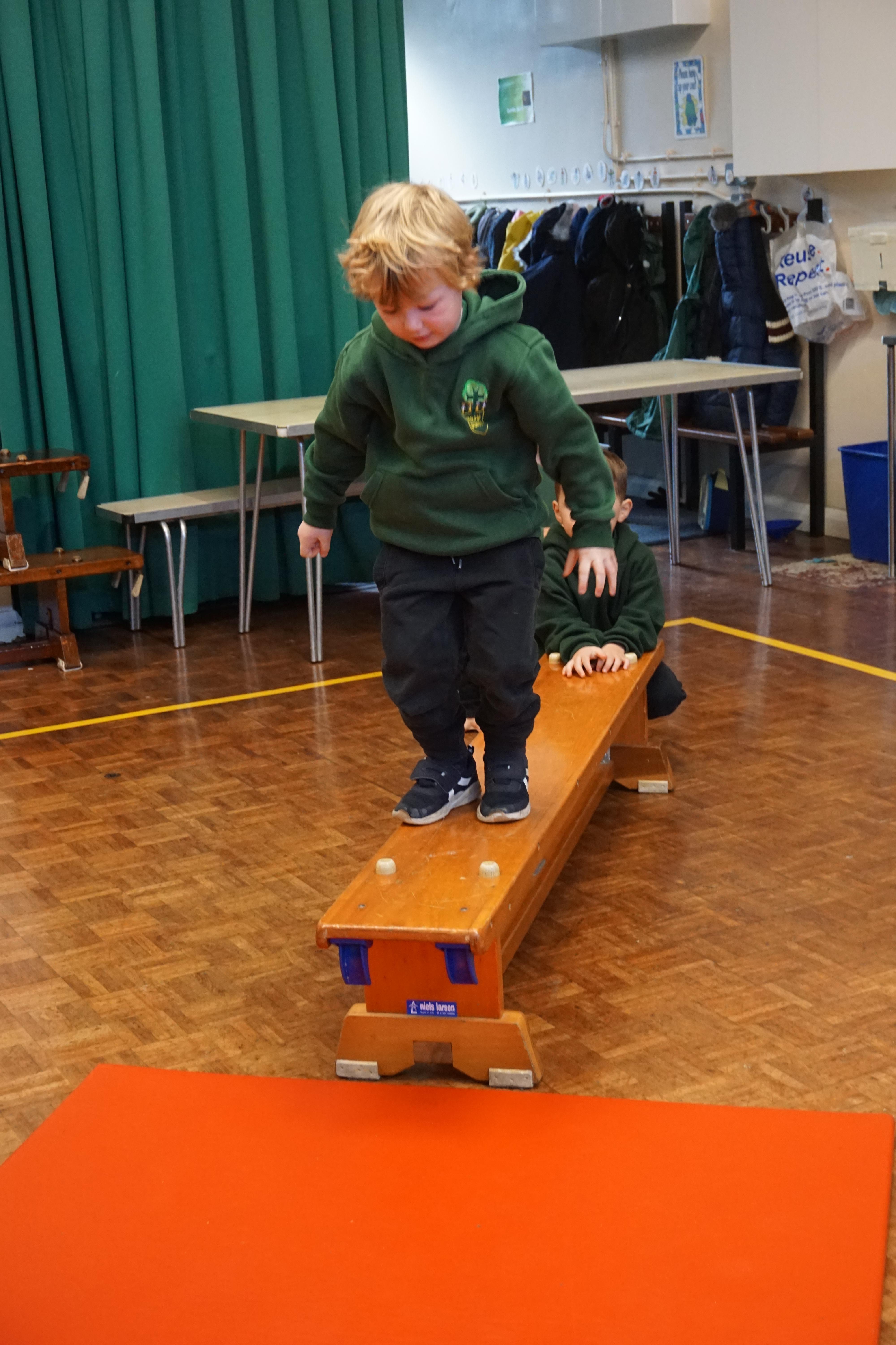 We also had our first PE session. Thank you for all coming dressed in PE clothes. We learnt how to sit in a space, travel in different ways along a bench and jump safely bending our knees. We also played some fun games to warm up and thought about what happens to our bodies when we exercise.