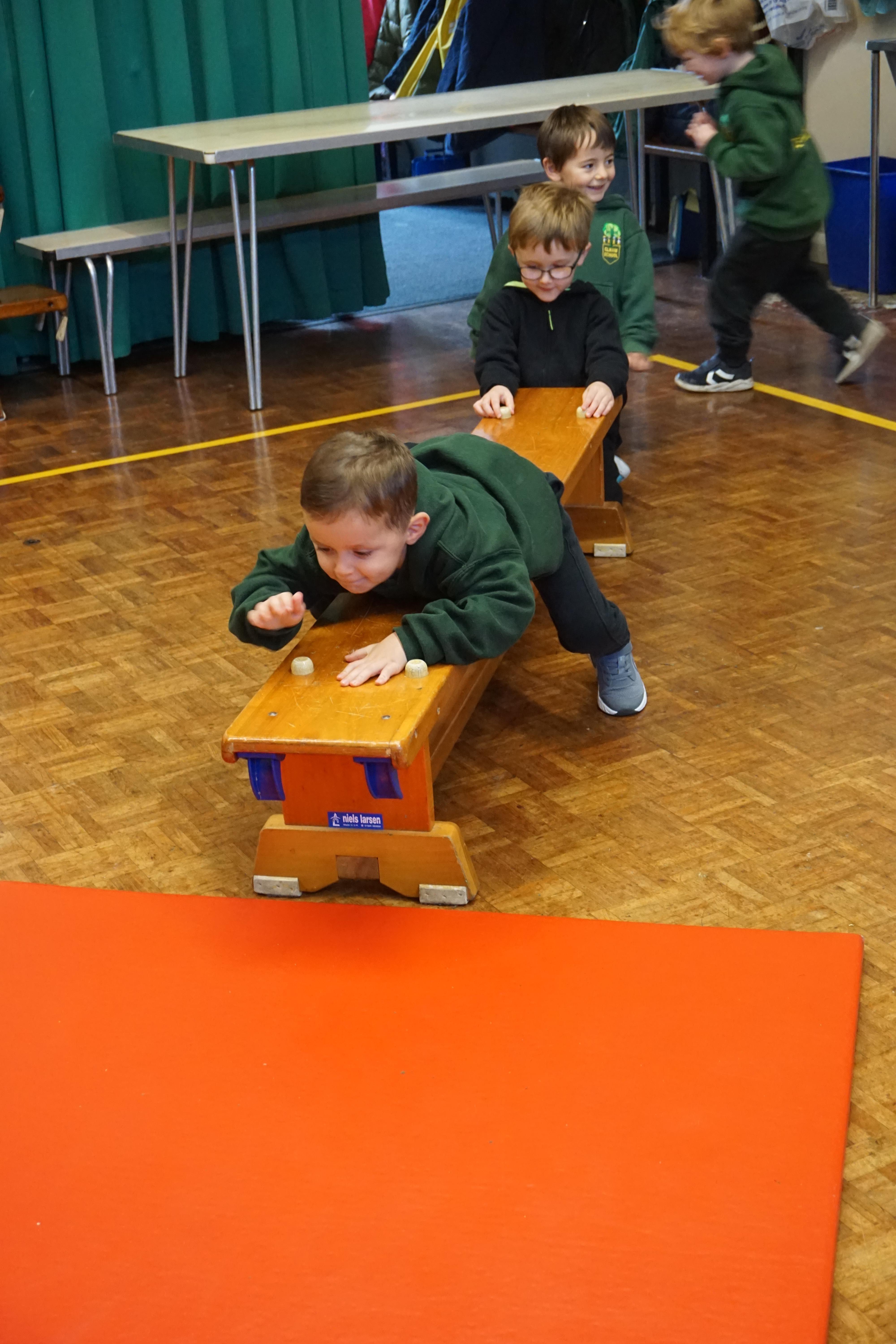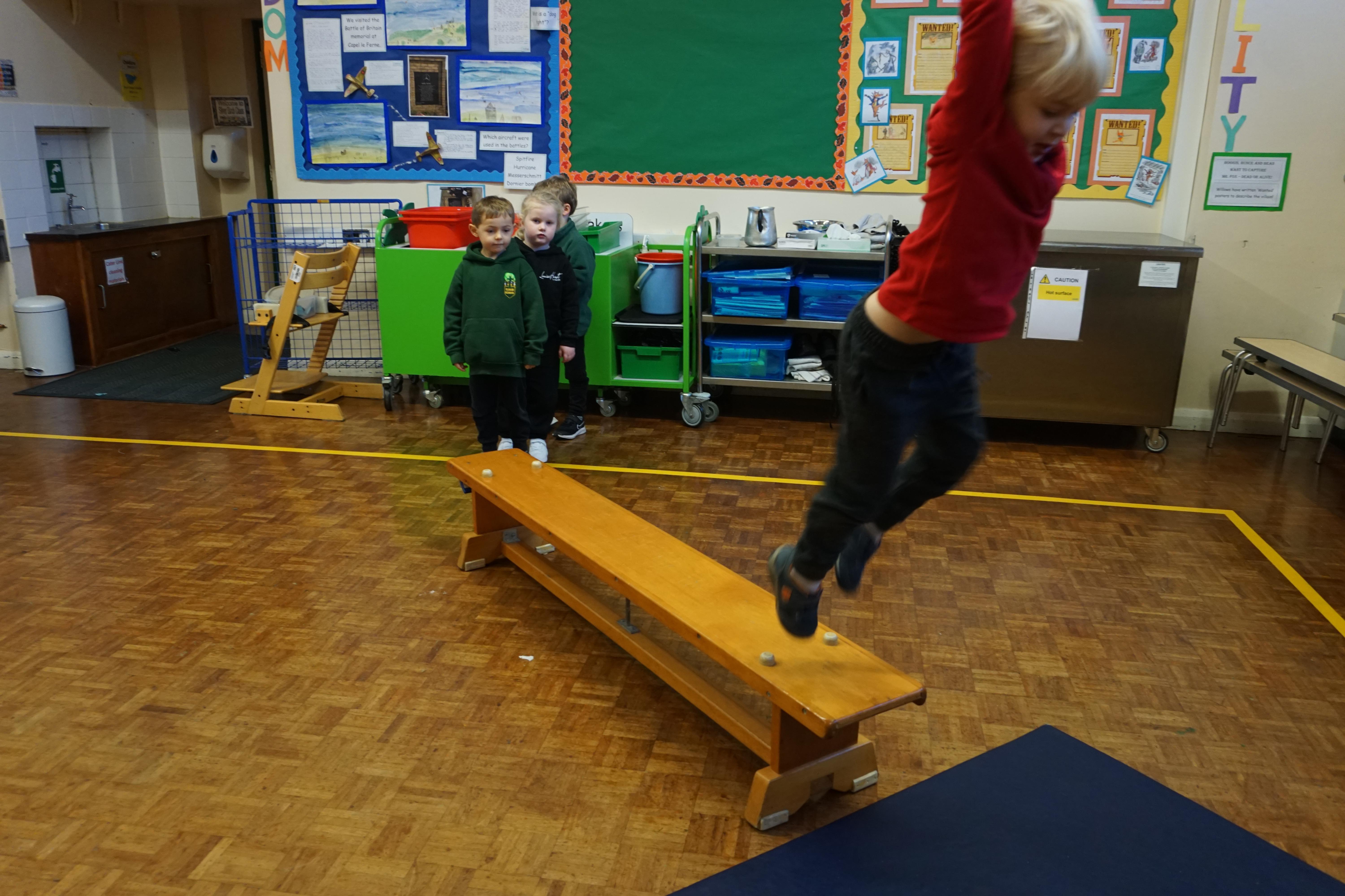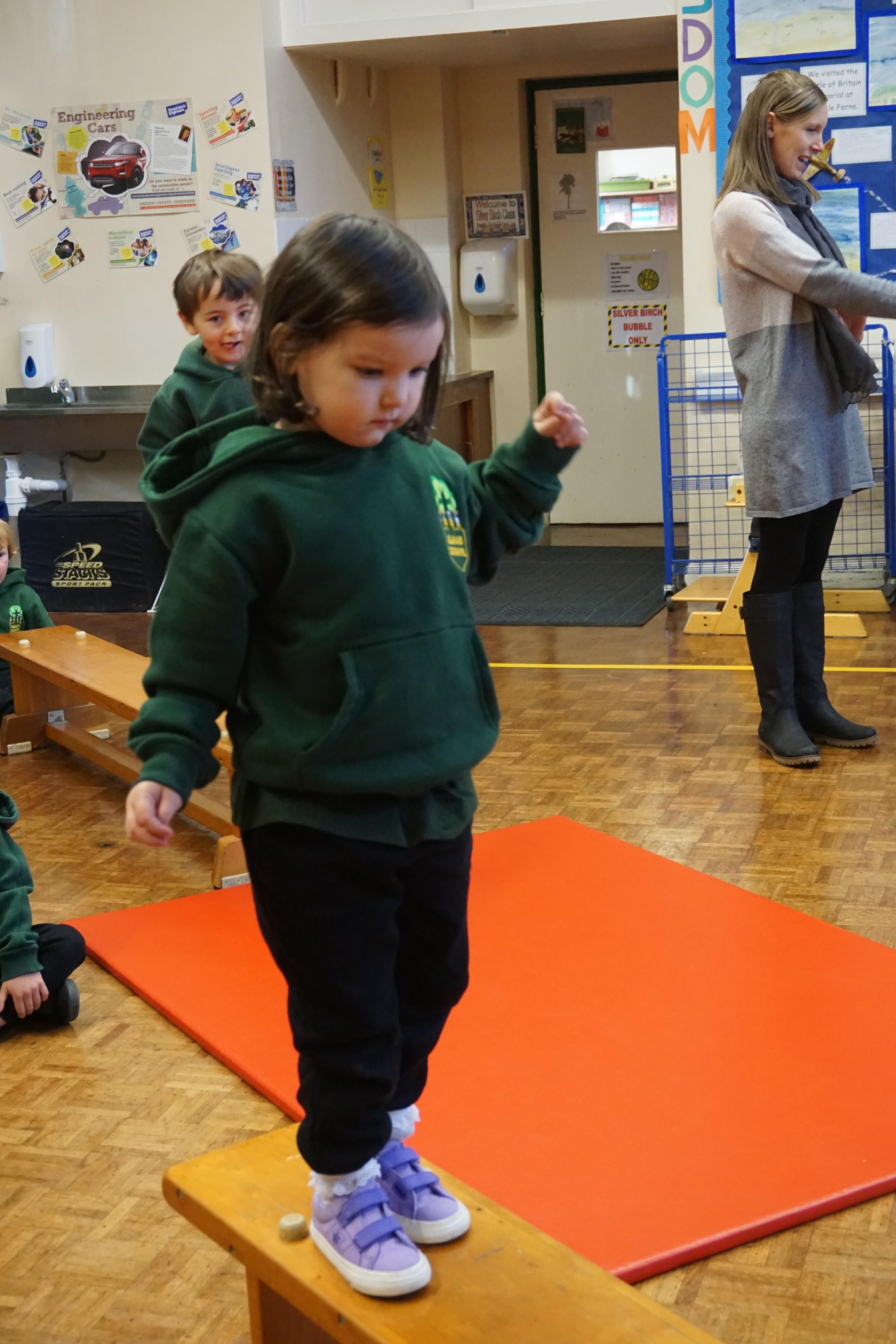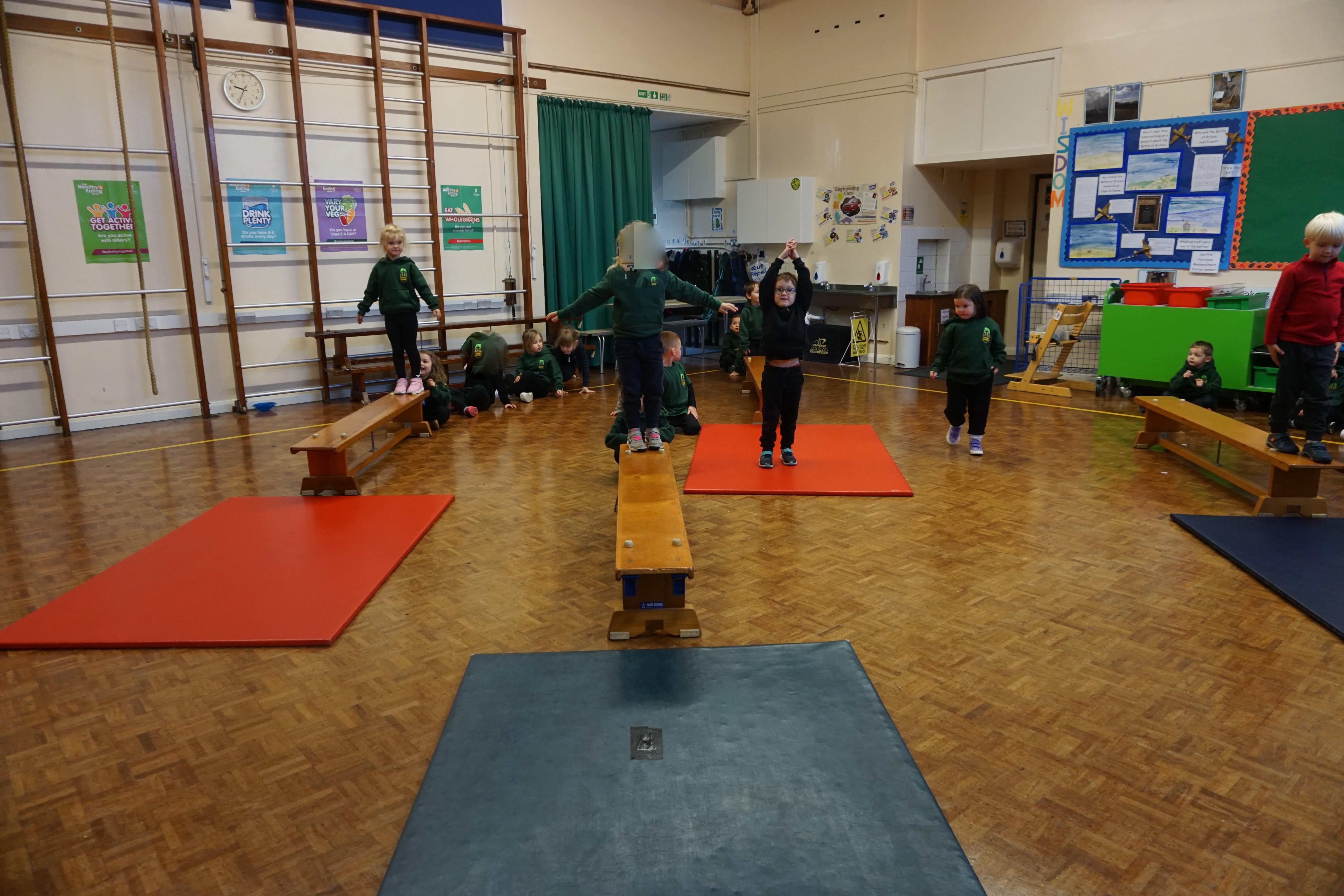 We also had our first PE session. Thank you for all coming dressed in PE clothes. We learnt how to sit in a space, travel in different ways along a bench and jump safely bending our knees. We also played some fun games to warm up and thought about what happens to our bodies when we exercise.