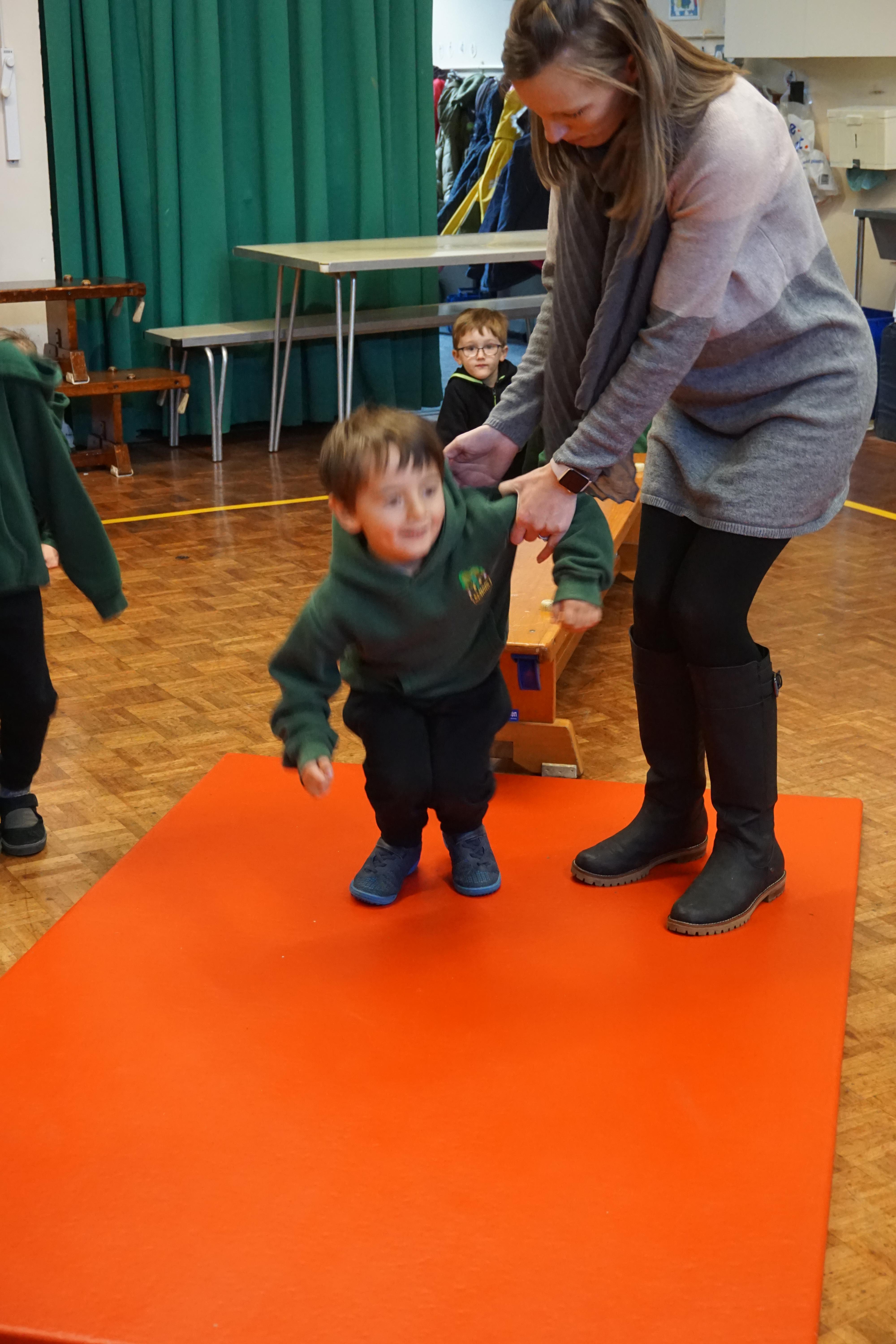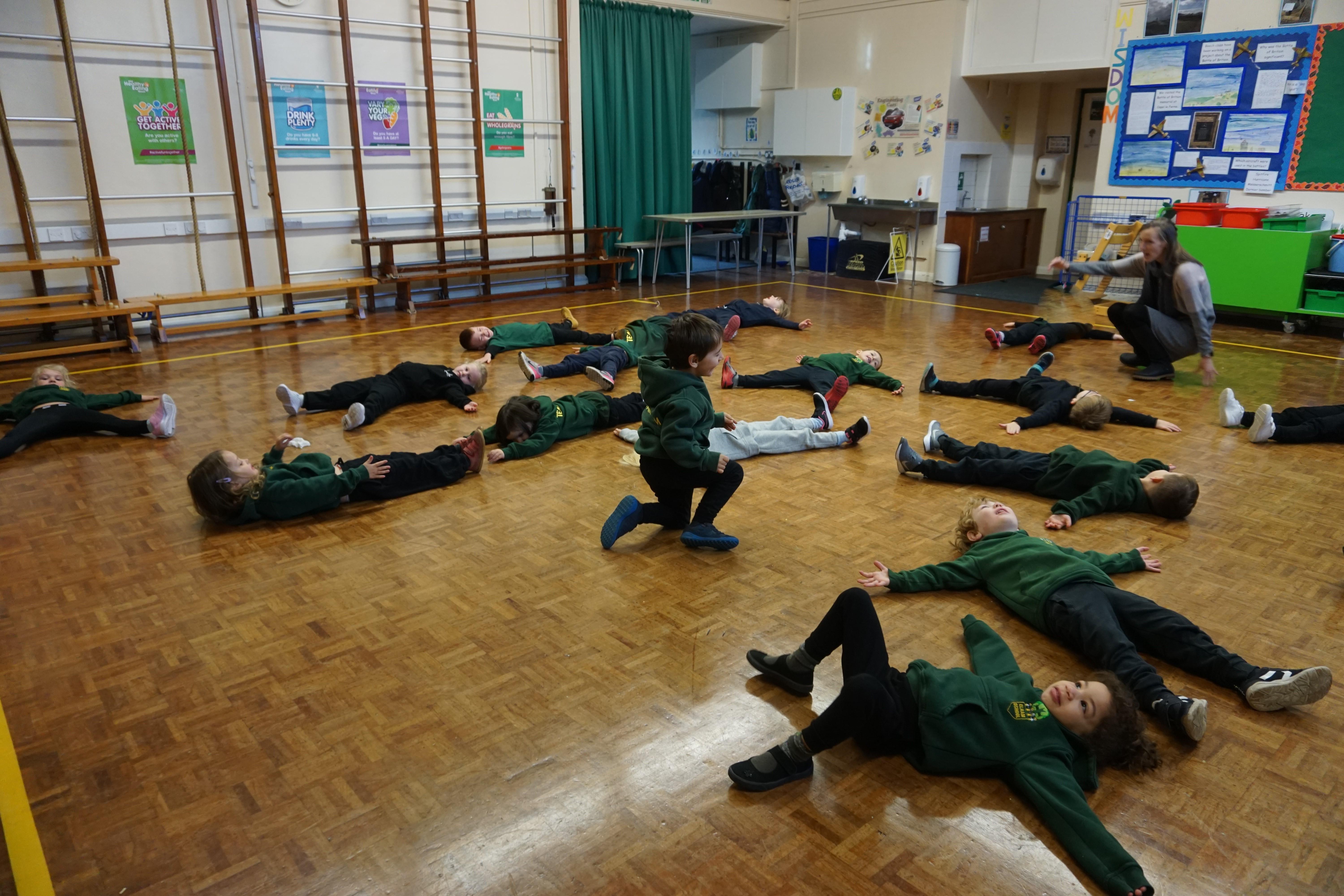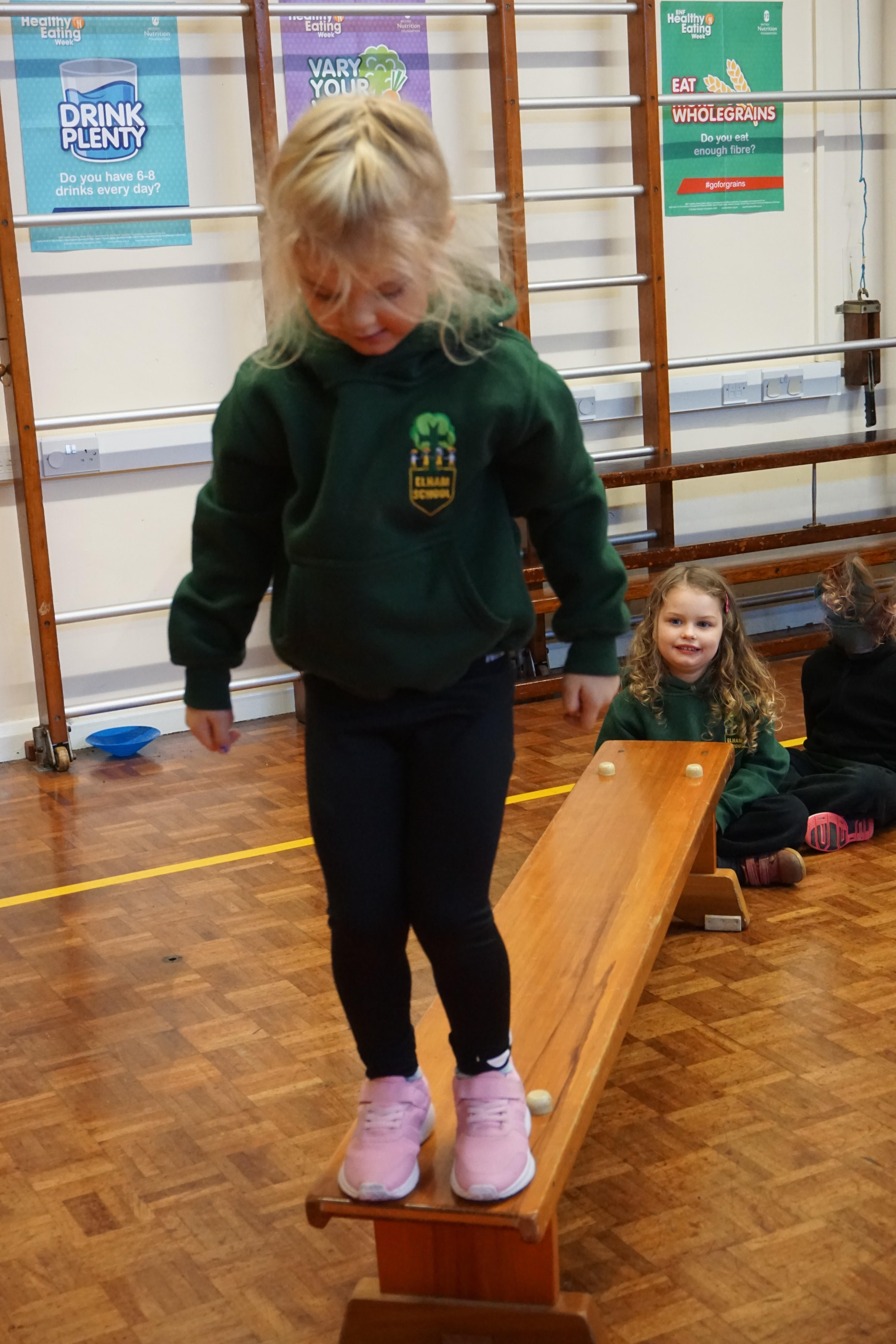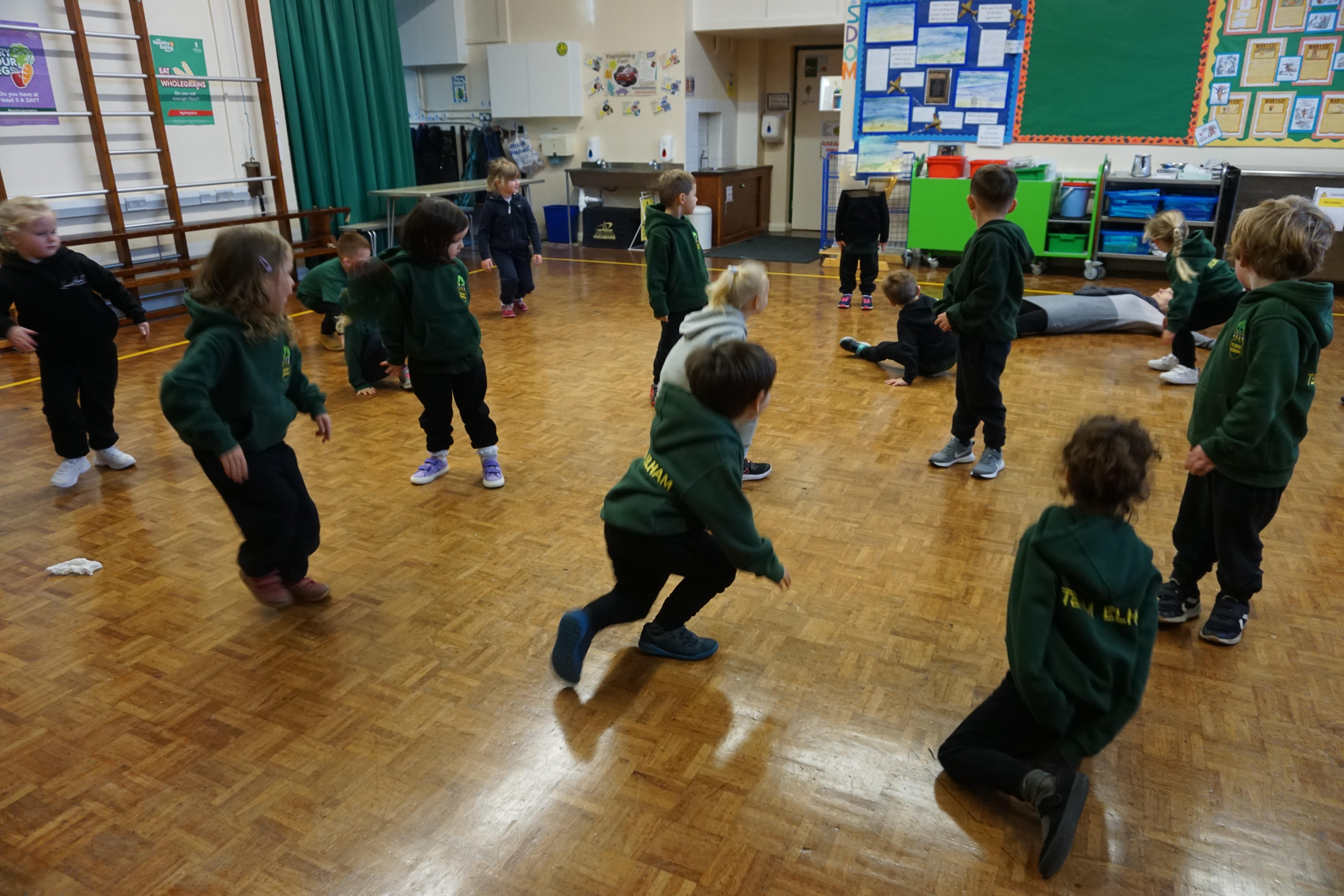 We also had our first PE session. Thank you for all coming dressed in PE clothes. We learnt how to sit in a space, travel in different ways along a bench and jump safely bending our knees. We also played some fun games to warm up and thought about what happens to our bodies when we exercise.