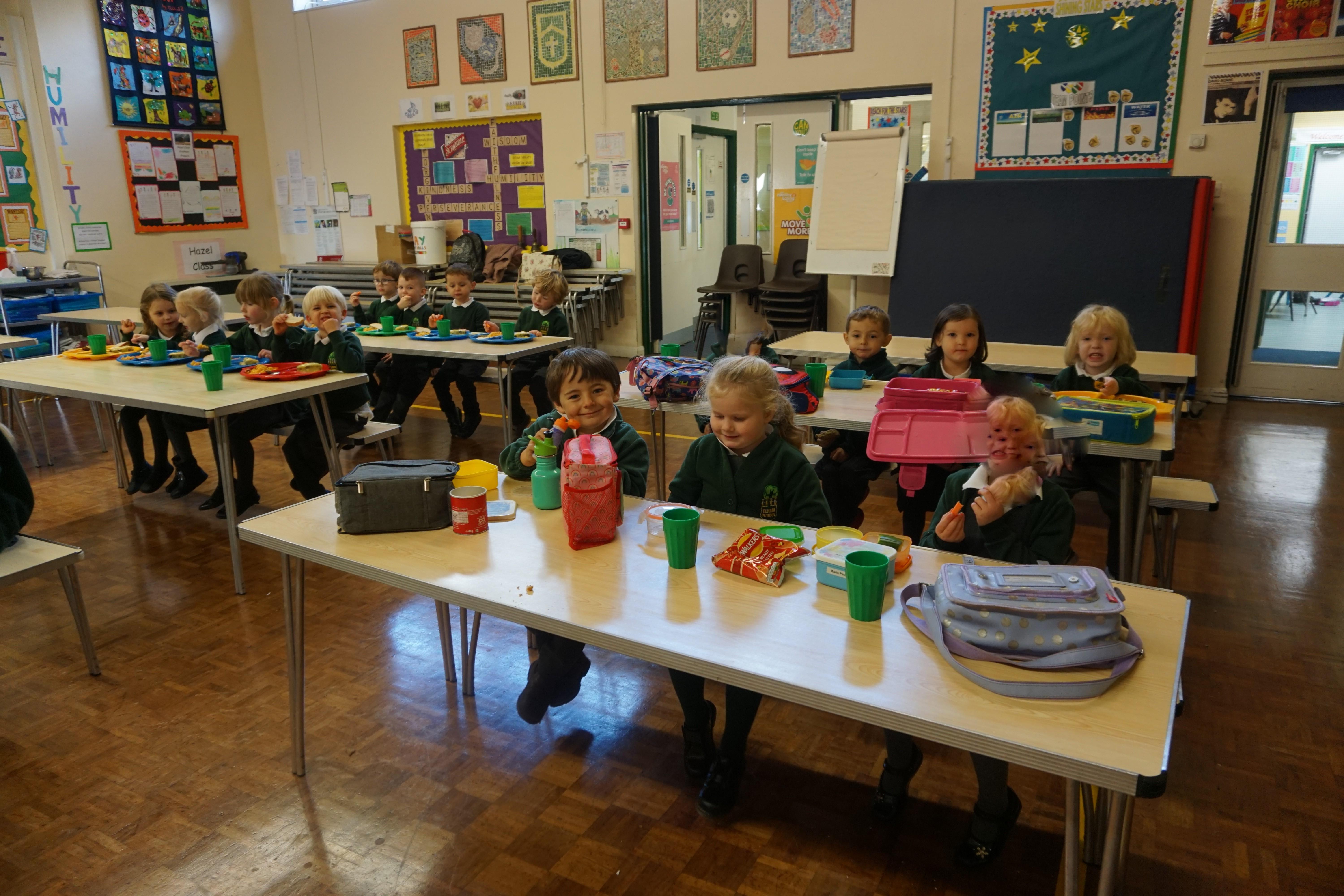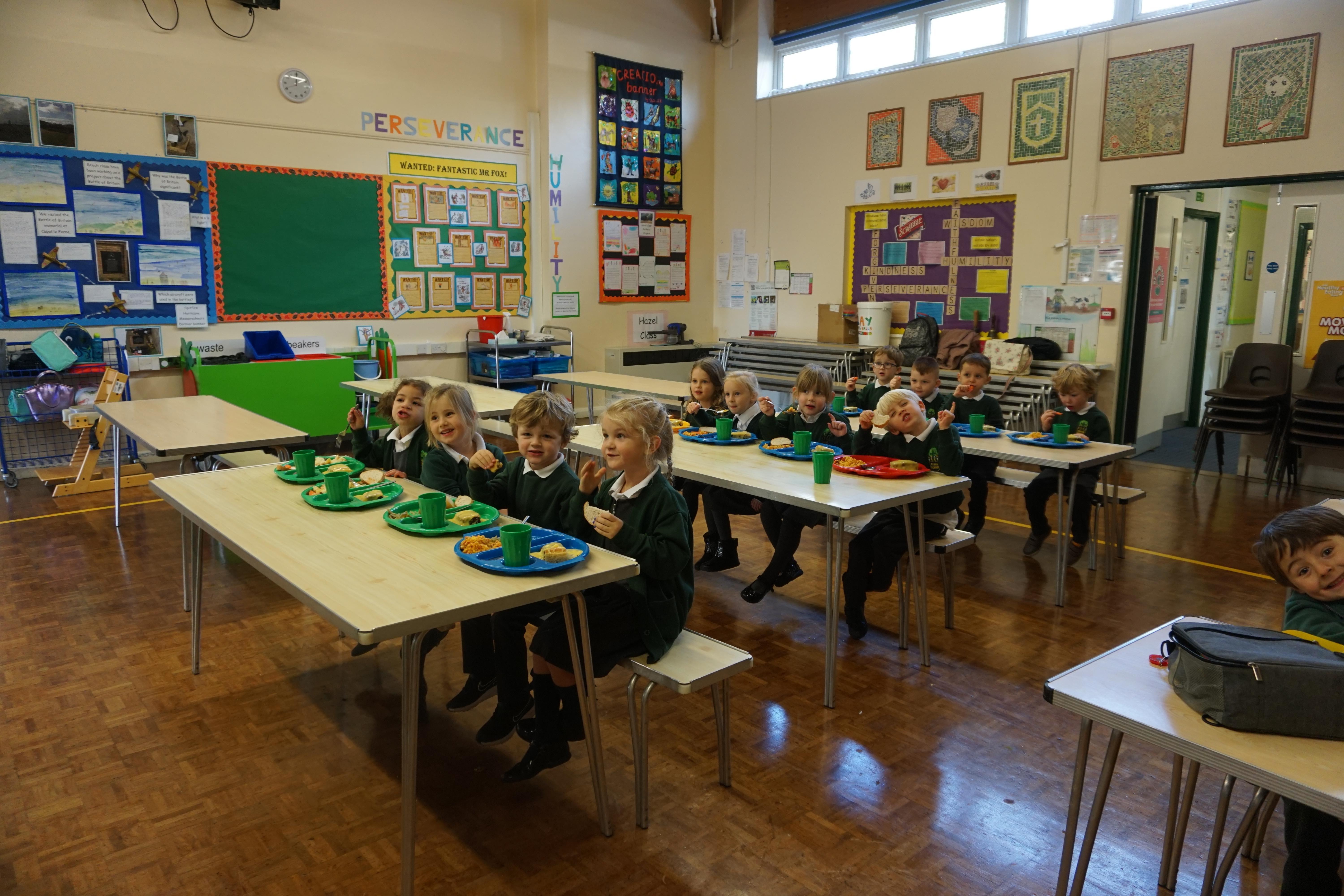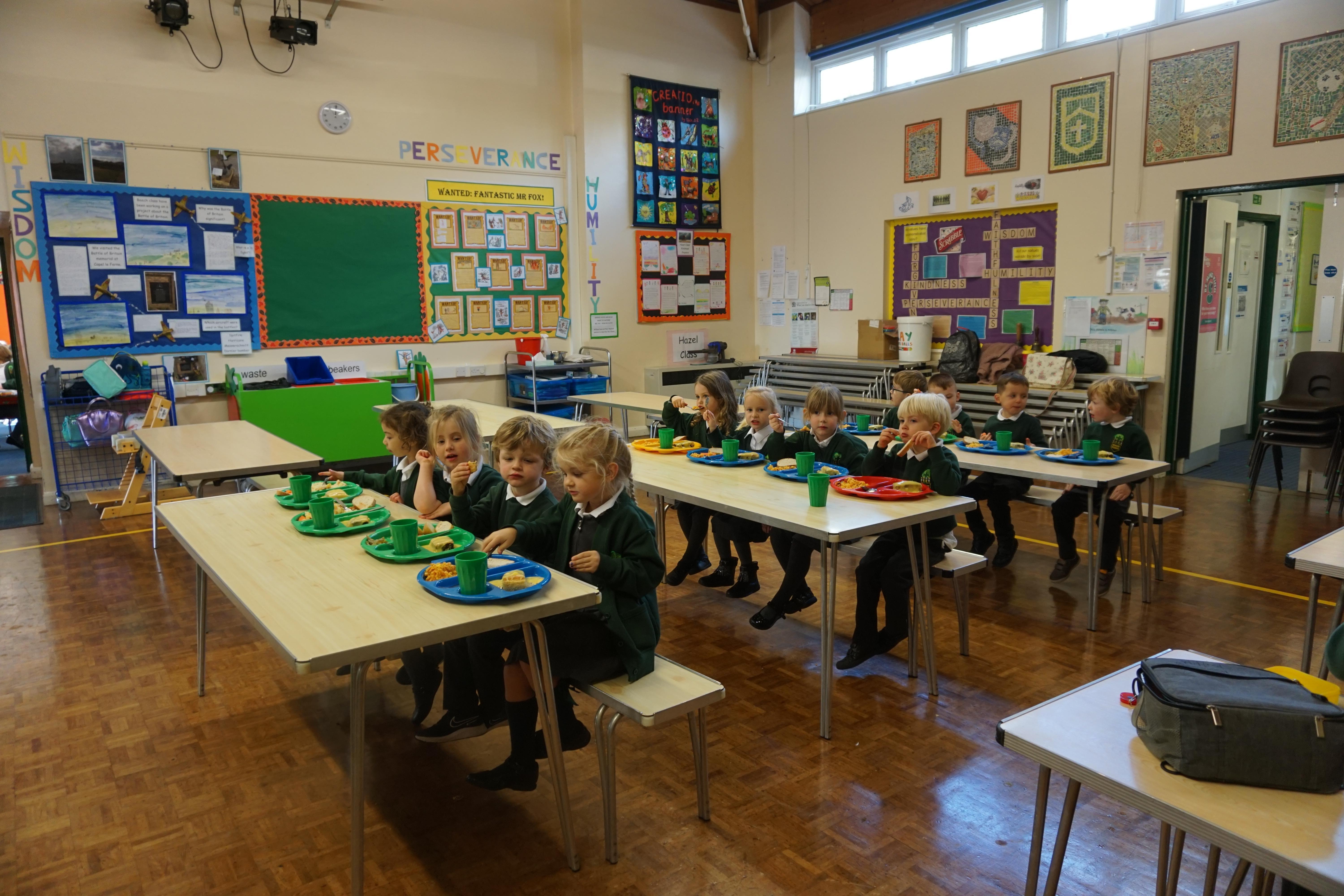 I think the children have really enjoyed having their first lunches in the hall. They are eating really well and are ready for the move to integrate into the school as much as we can at the moment.
