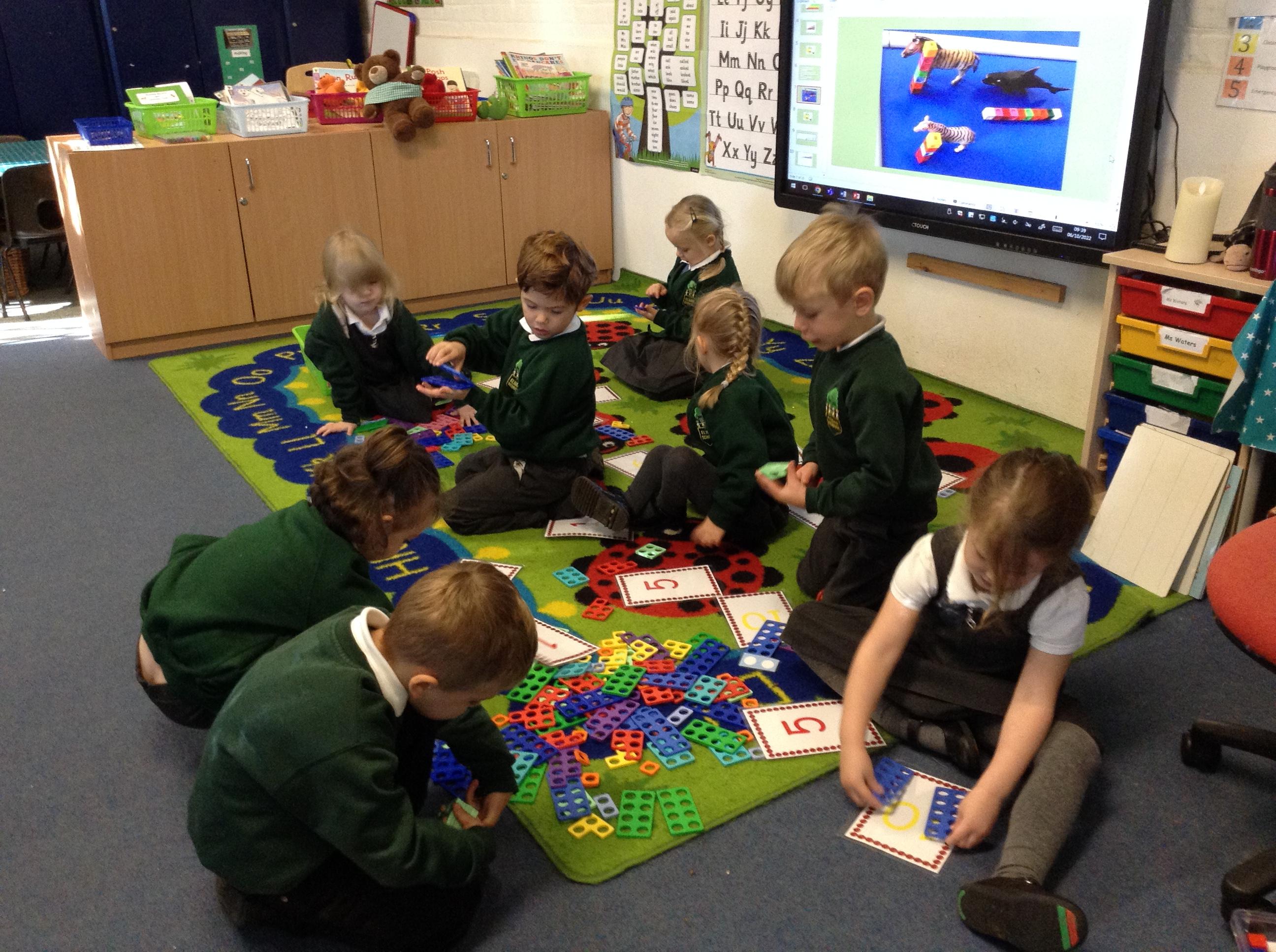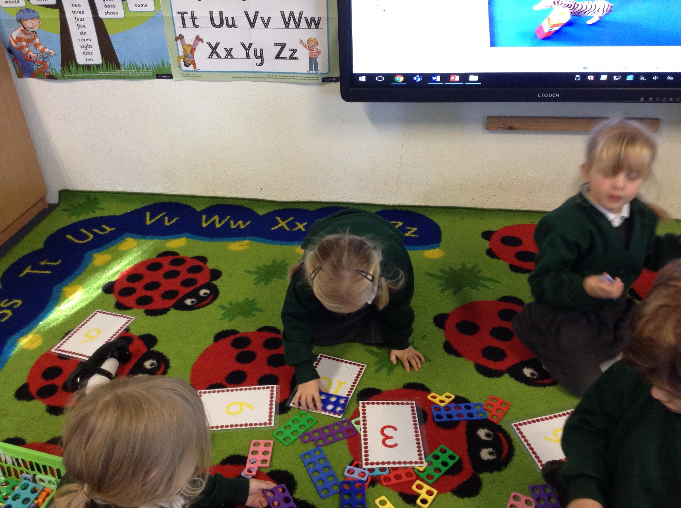 In our number learning we have counted out objects to 10 and matched numicon to numerals. We have also ordered objects and people by size using the correct language.