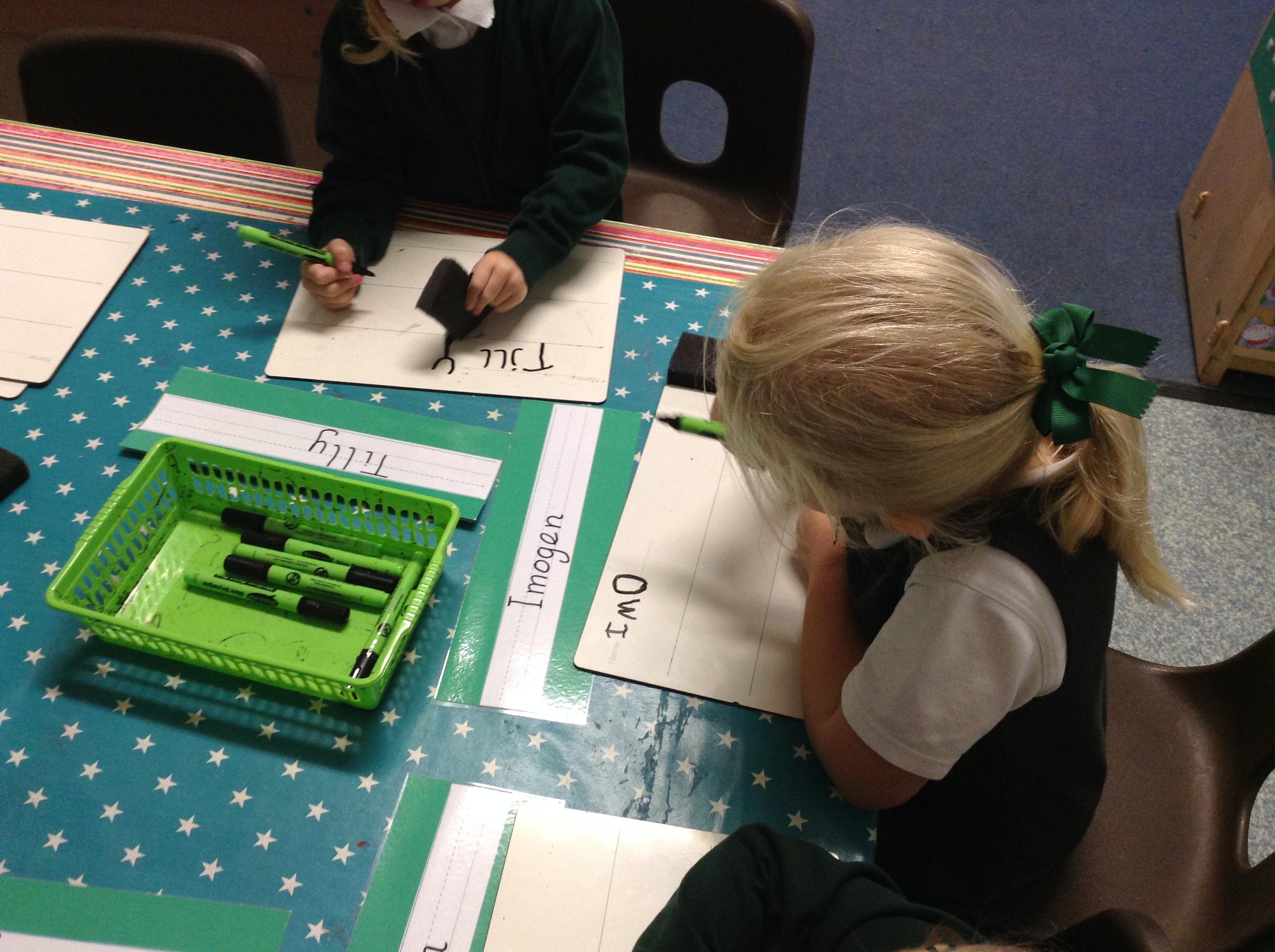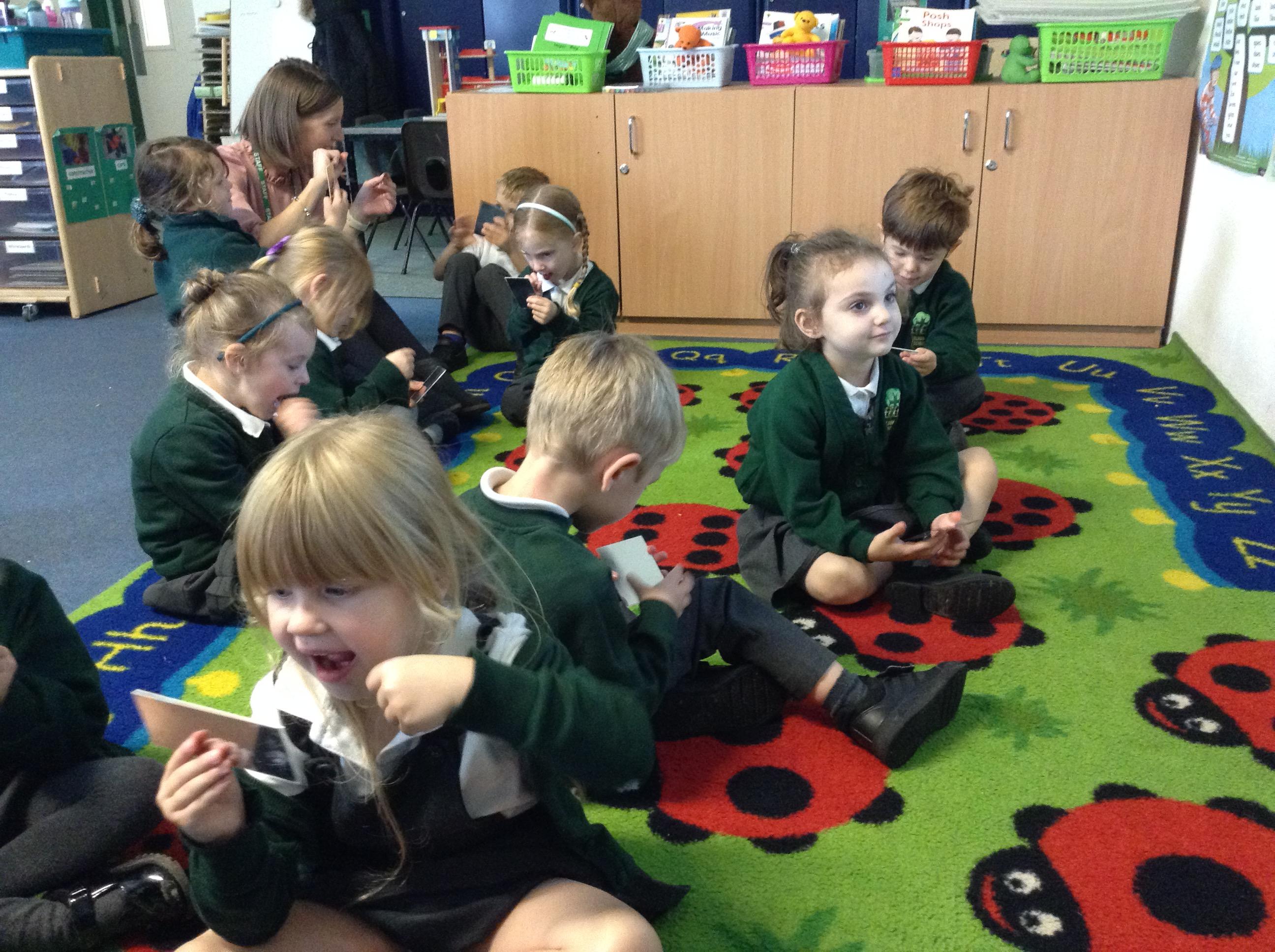 In phonics we have now learnt six sounds s a t p i n we have looked at how our mouths should form these sounds using mirrors and really thinking about which part of our mouth or tongue is used.