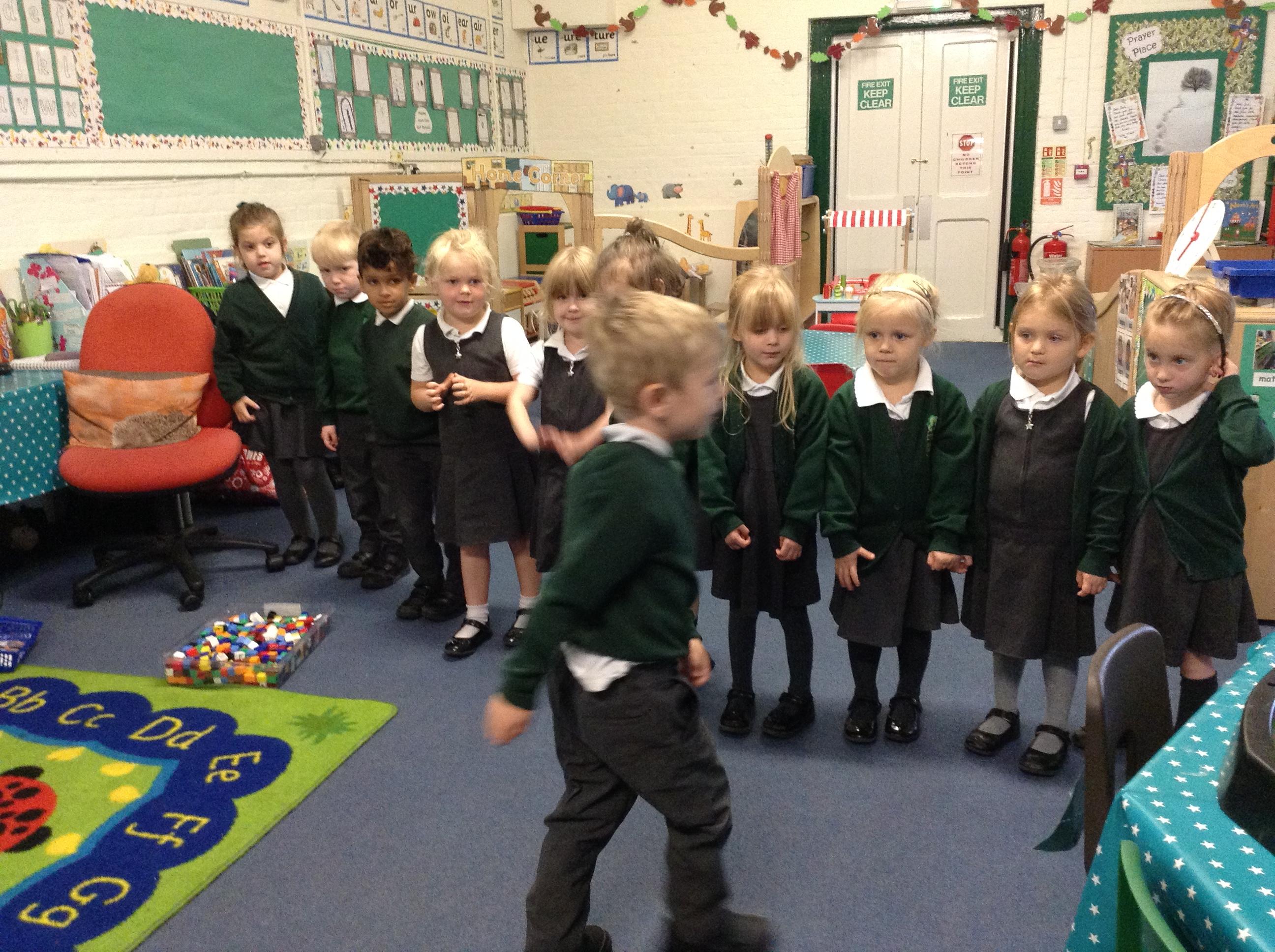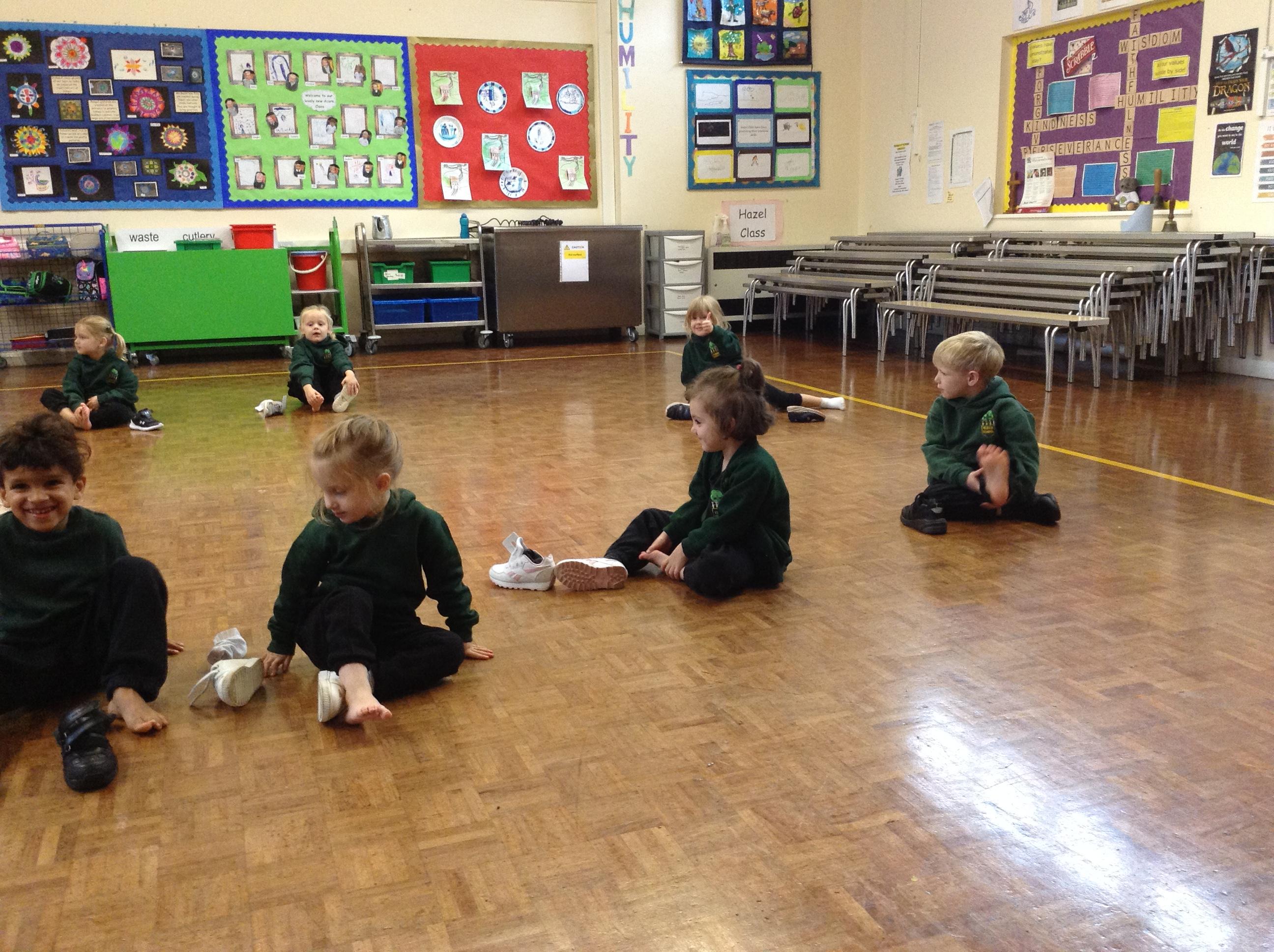 We had our first session of PE today and I'm pleased to say the children all listened really well instructions and had lots of fun as well.