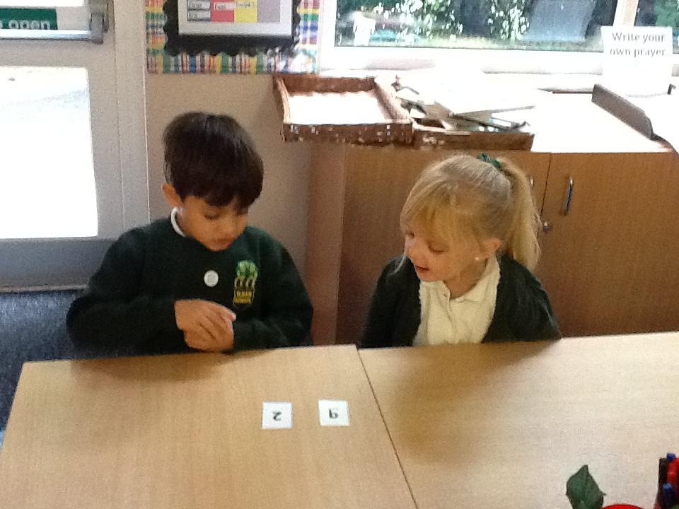 The children are working hard at the concepts of 'greater than', 'less than' and 'equal to' and also learning to use the mathematical symbols (get them to show you!). It's not easy and they are trying really hard.