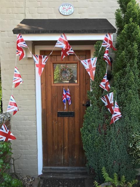 Here is an idea for some VE decorations for you to make to decorate your front door or front garden.