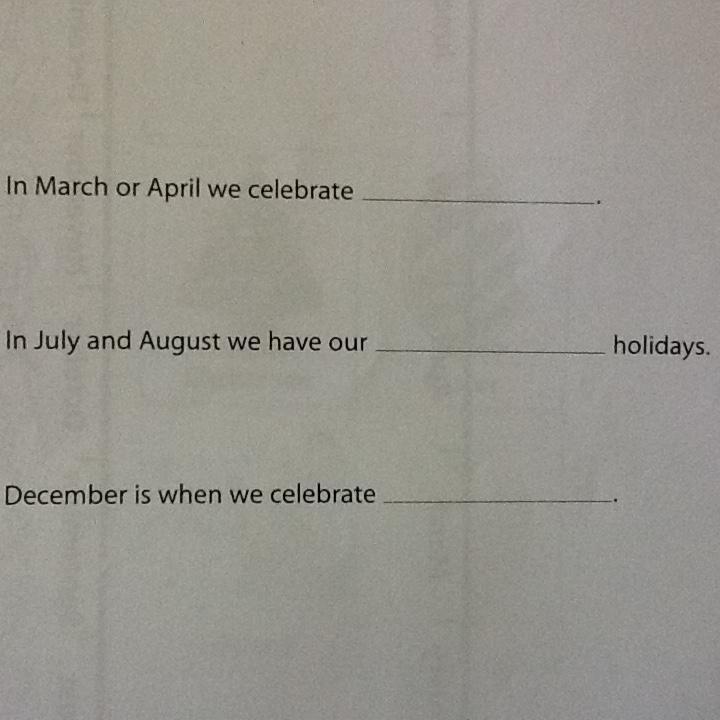Today you are going to think about the different types of holidays you have during the year.
