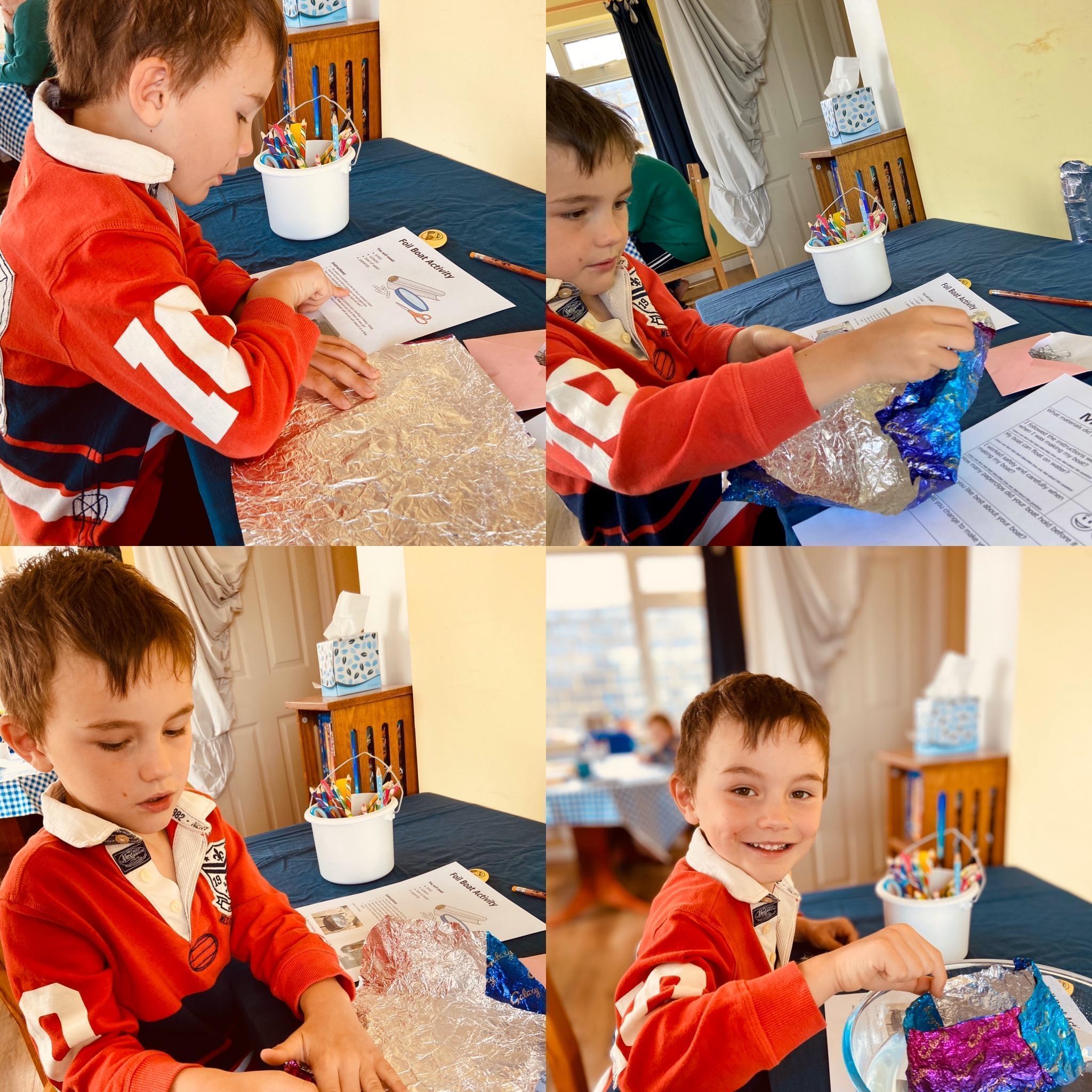 Here are some photos of the tinfoil boats made by Douglas and Flissie last week – well done children!