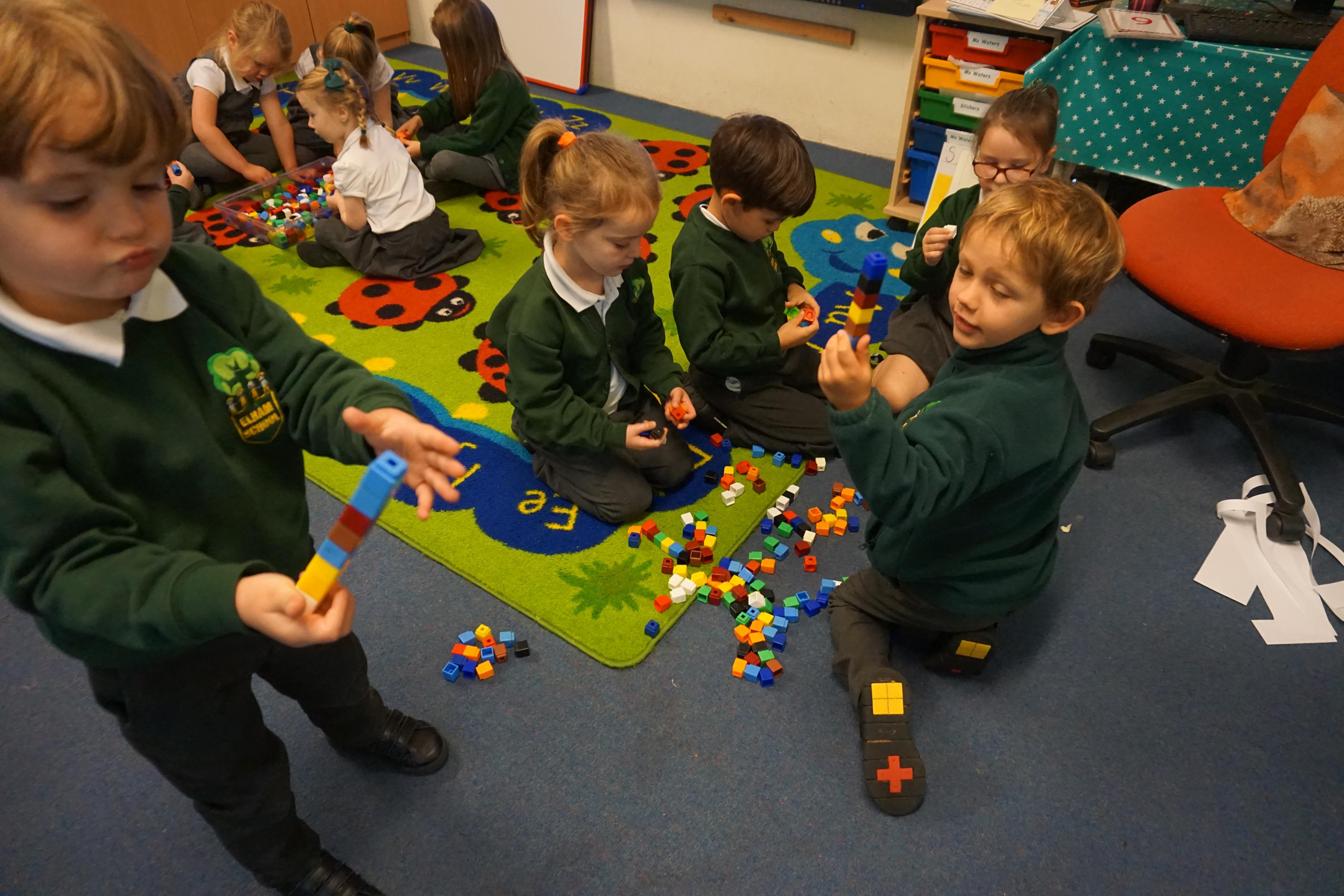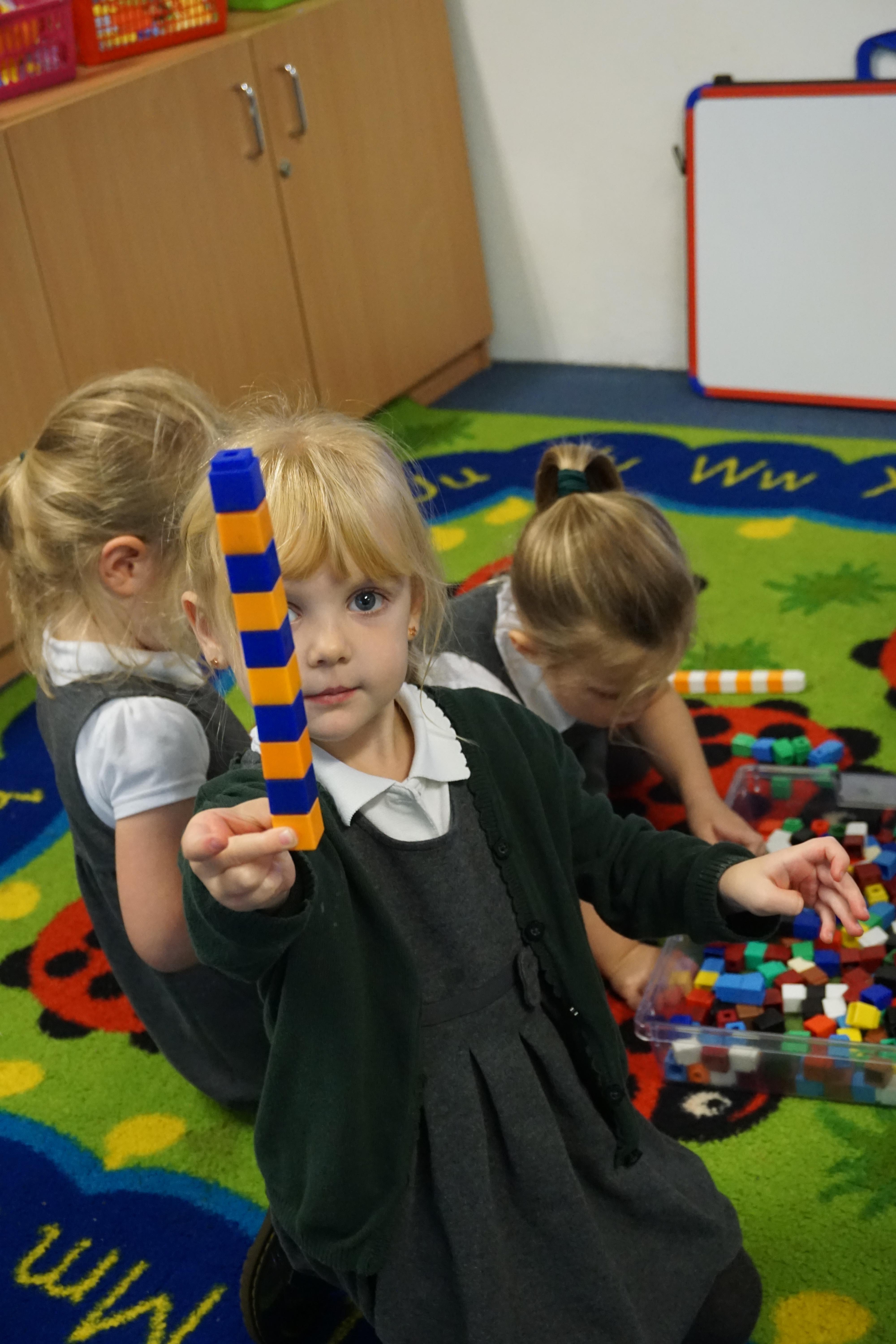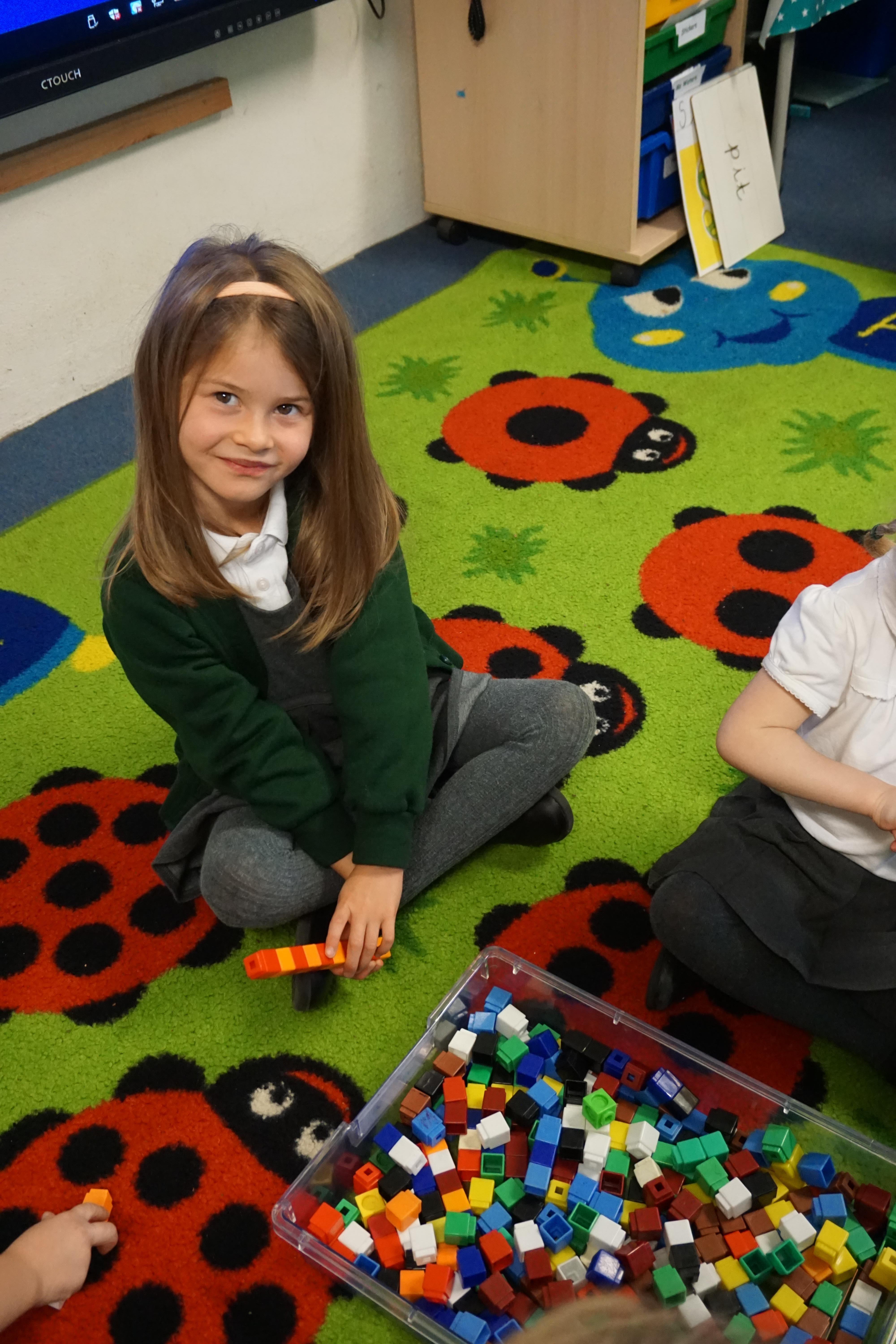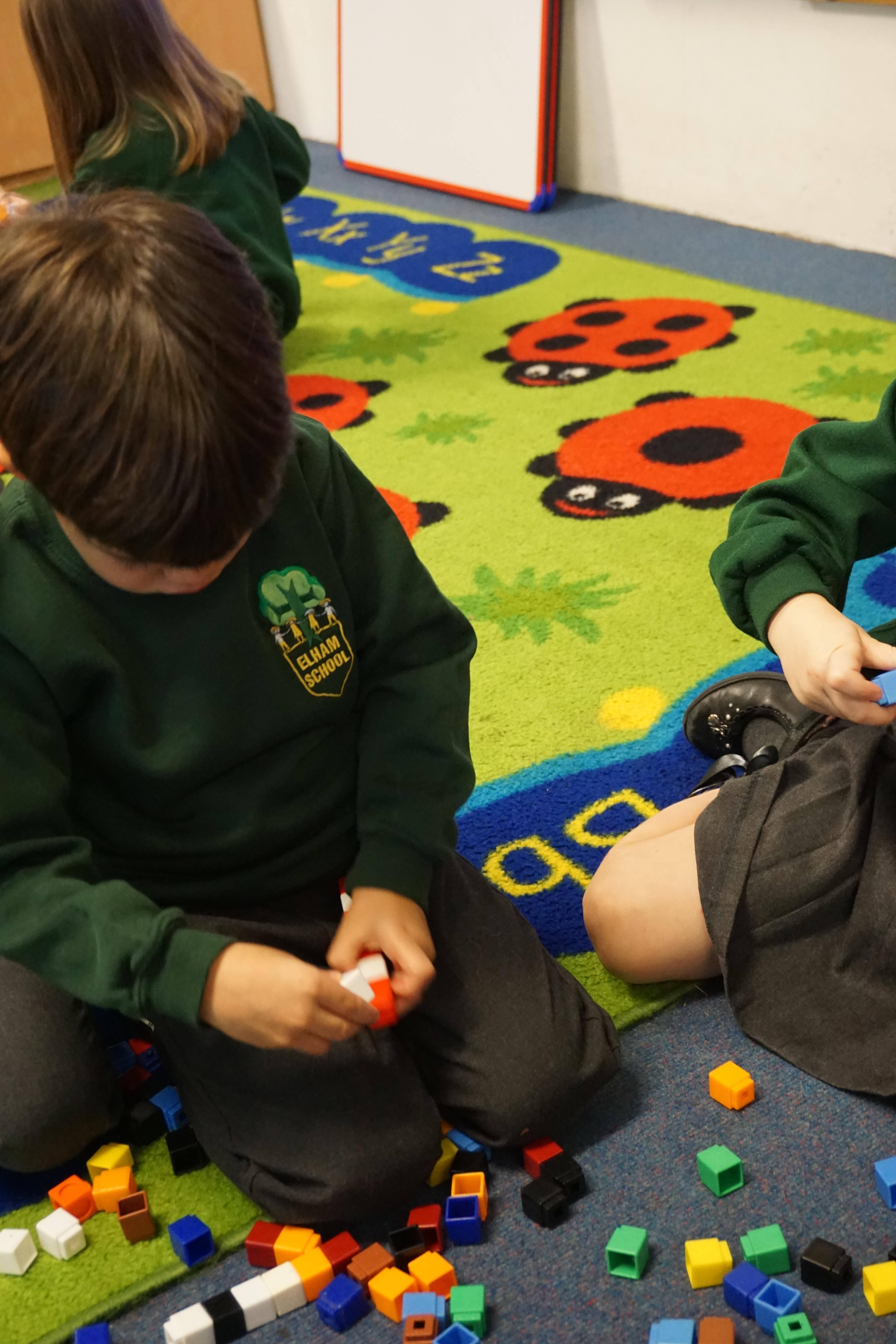 We have made repeating patterns in maths using the coloured cubes and have learnt three more sounds, p i n. The children also had great fun at forest school today.