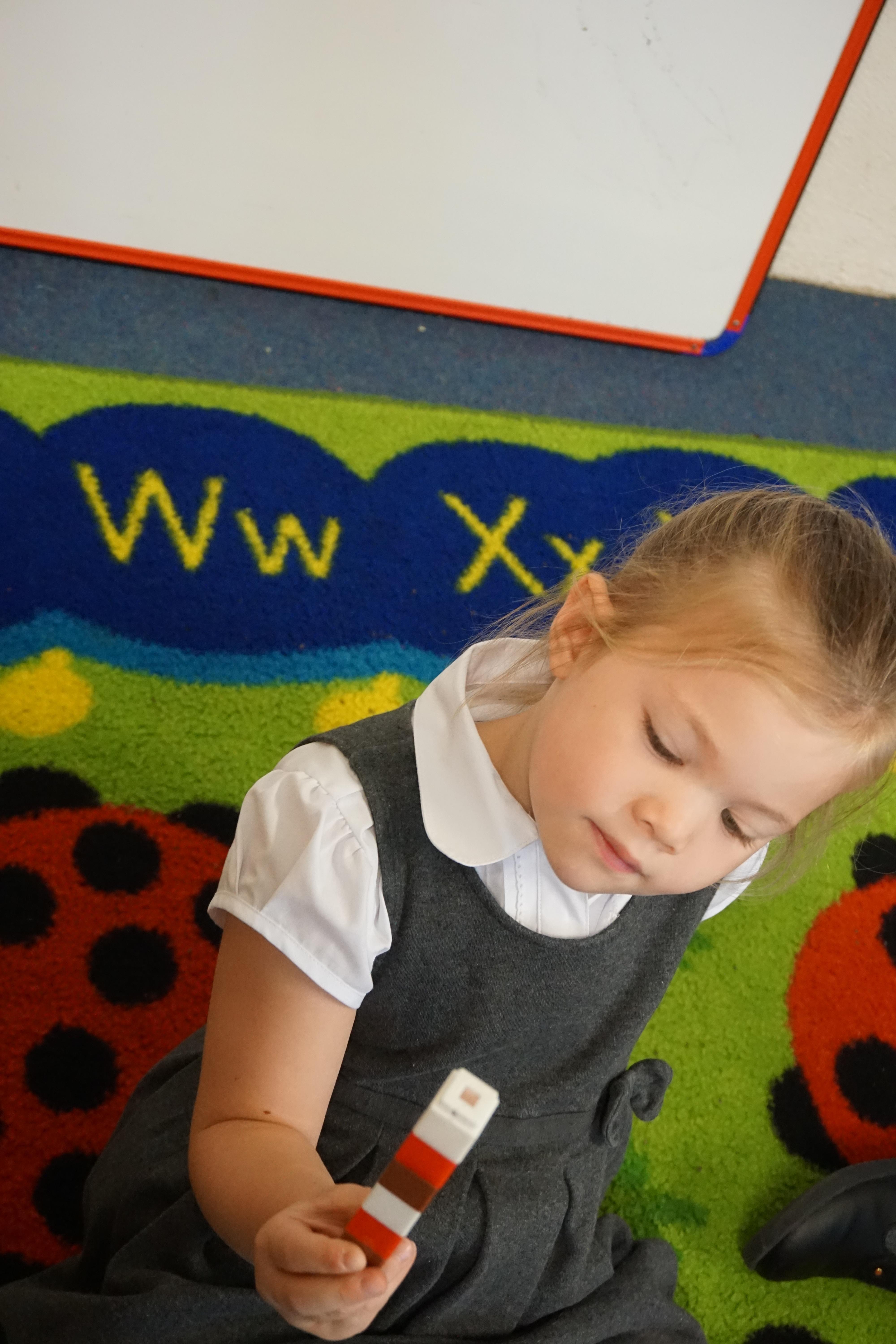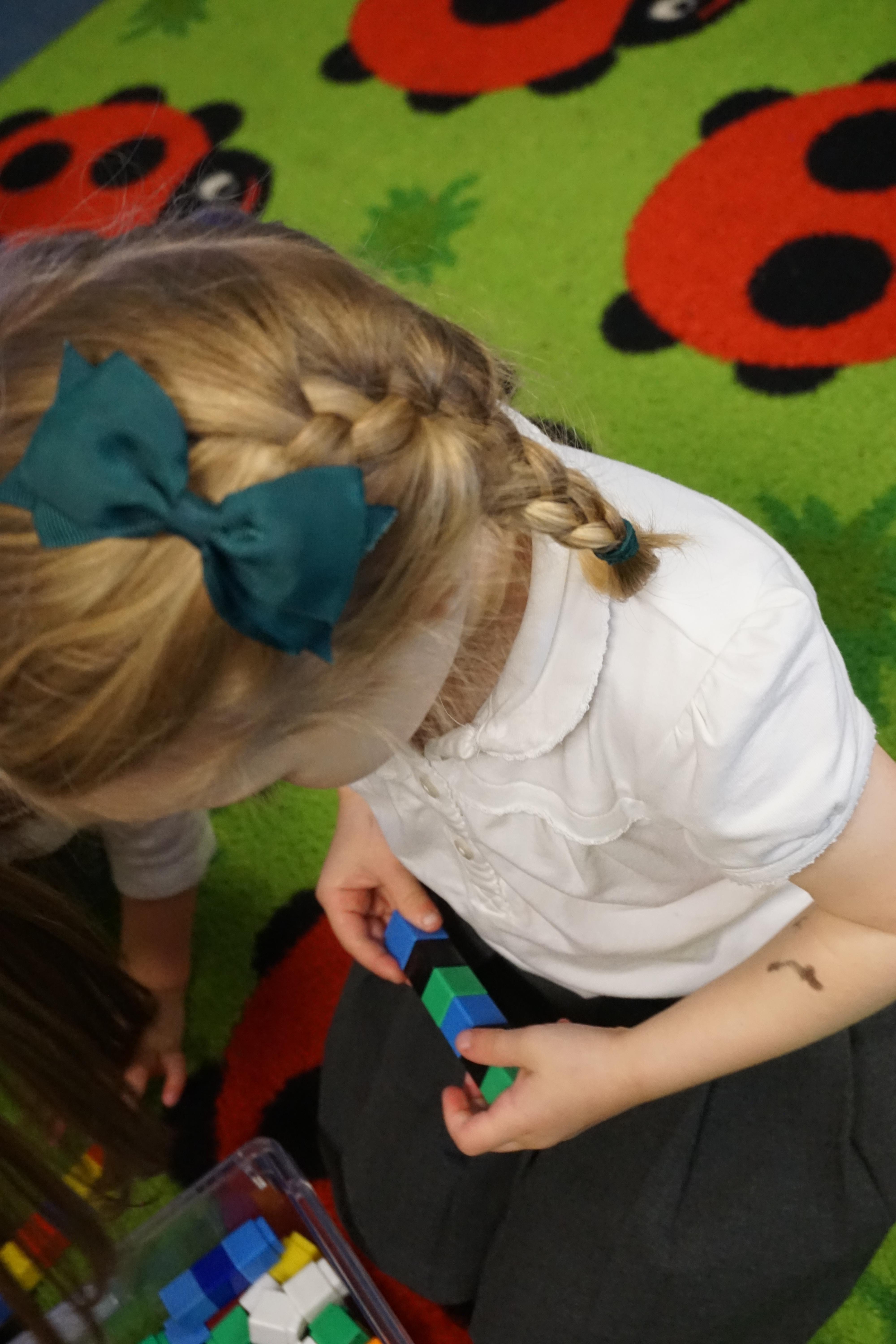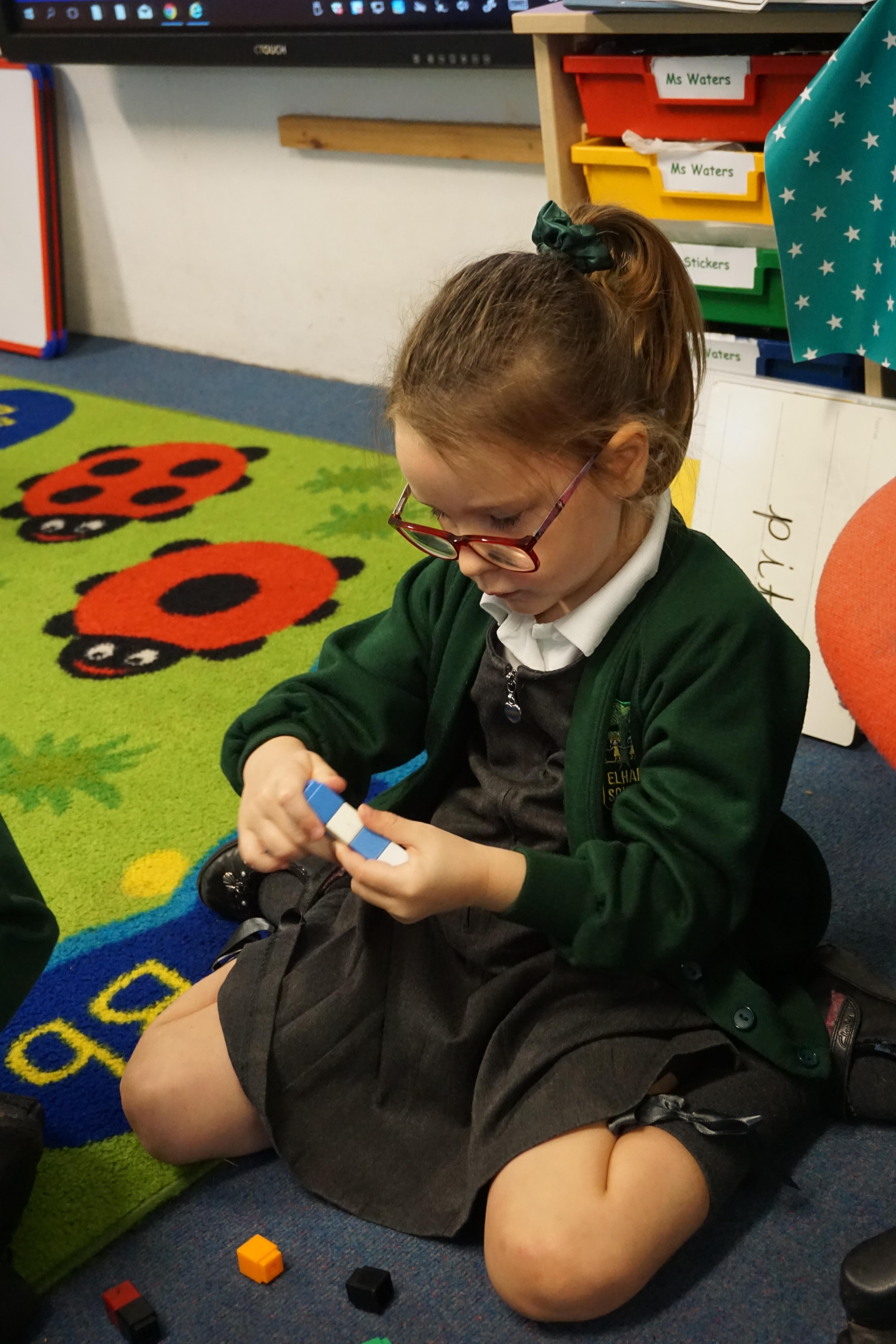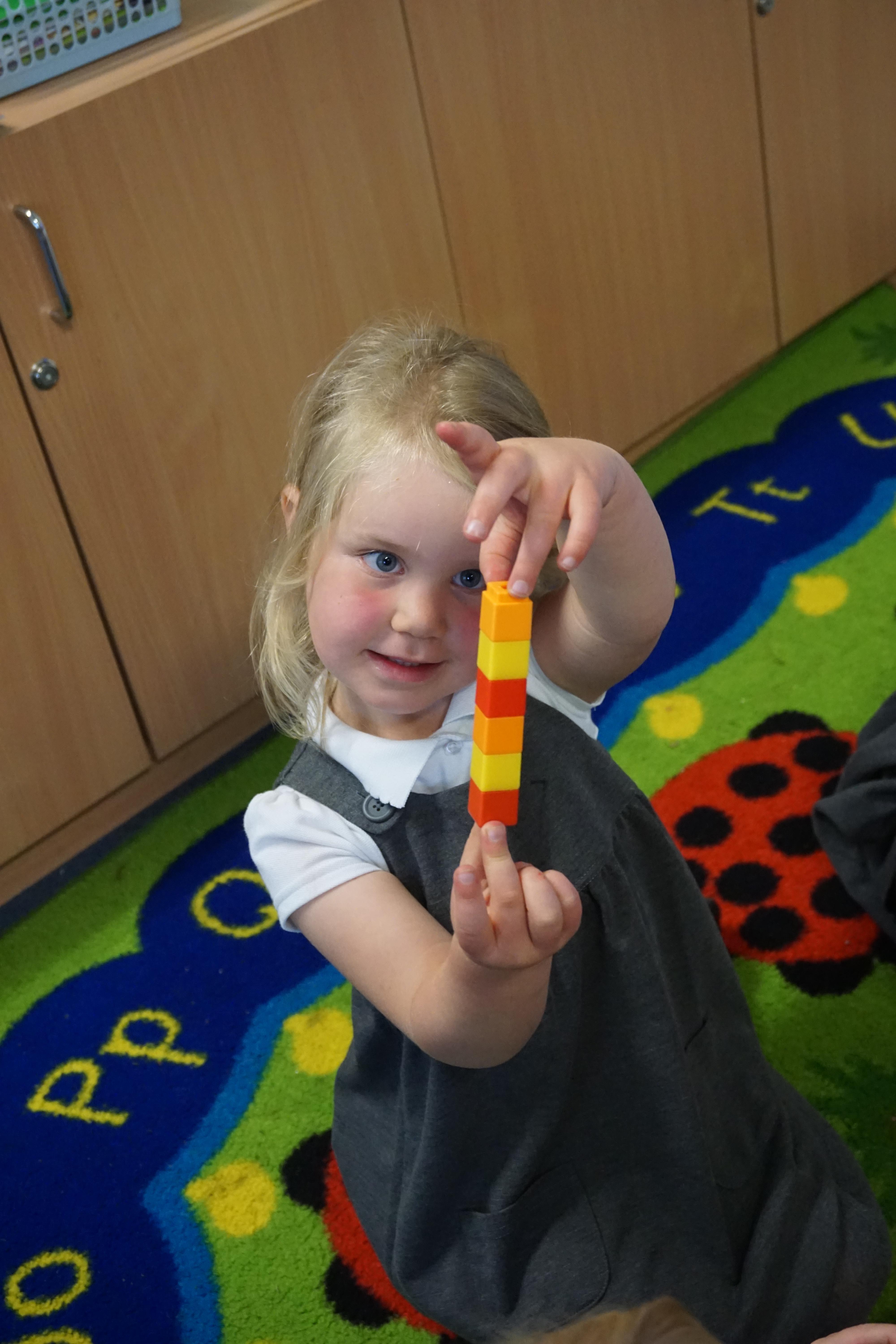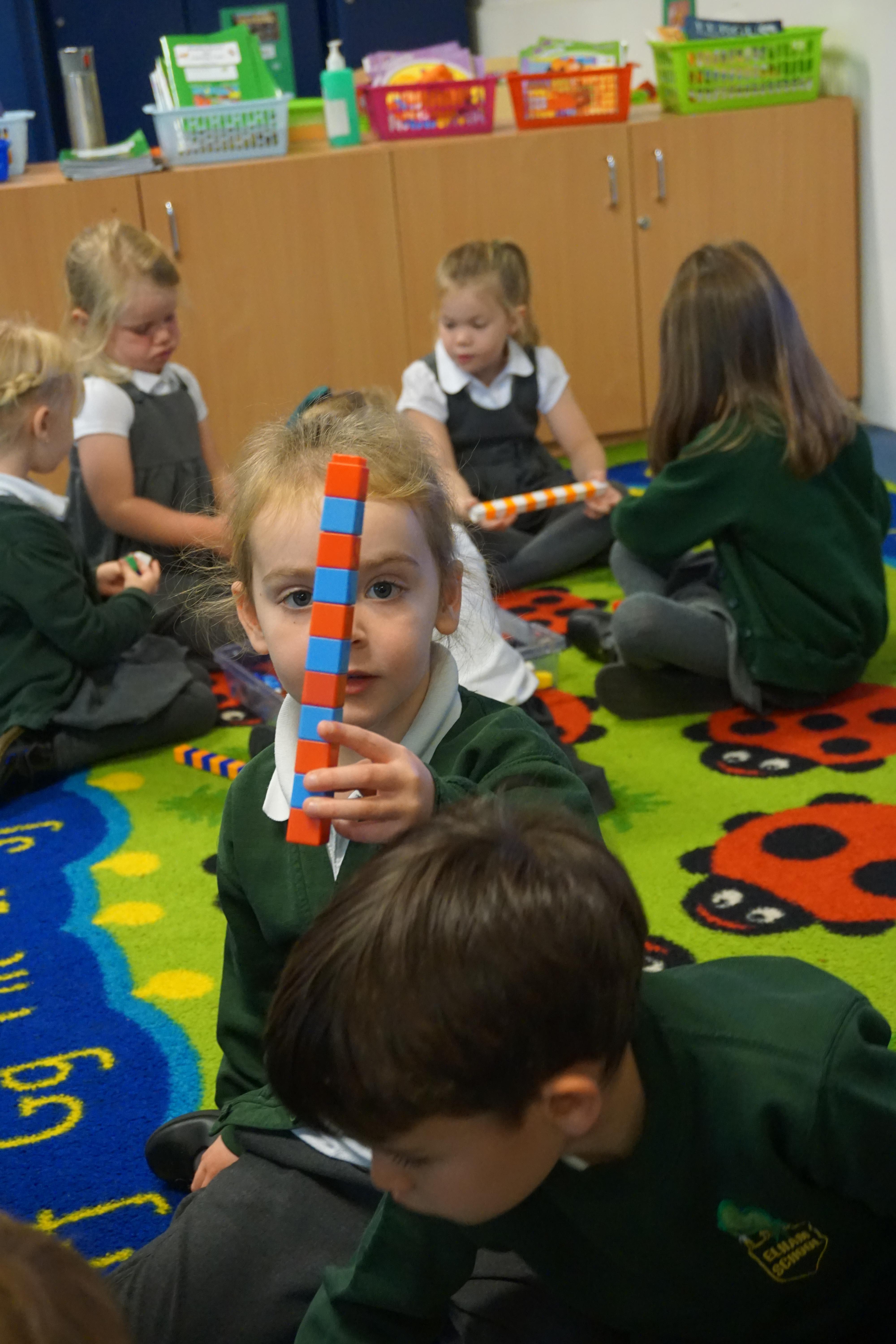 We have made repeating patterns in maths using the coloured cubes and have learnt three more sounds, p i n. The children also had great fun at forest school today.