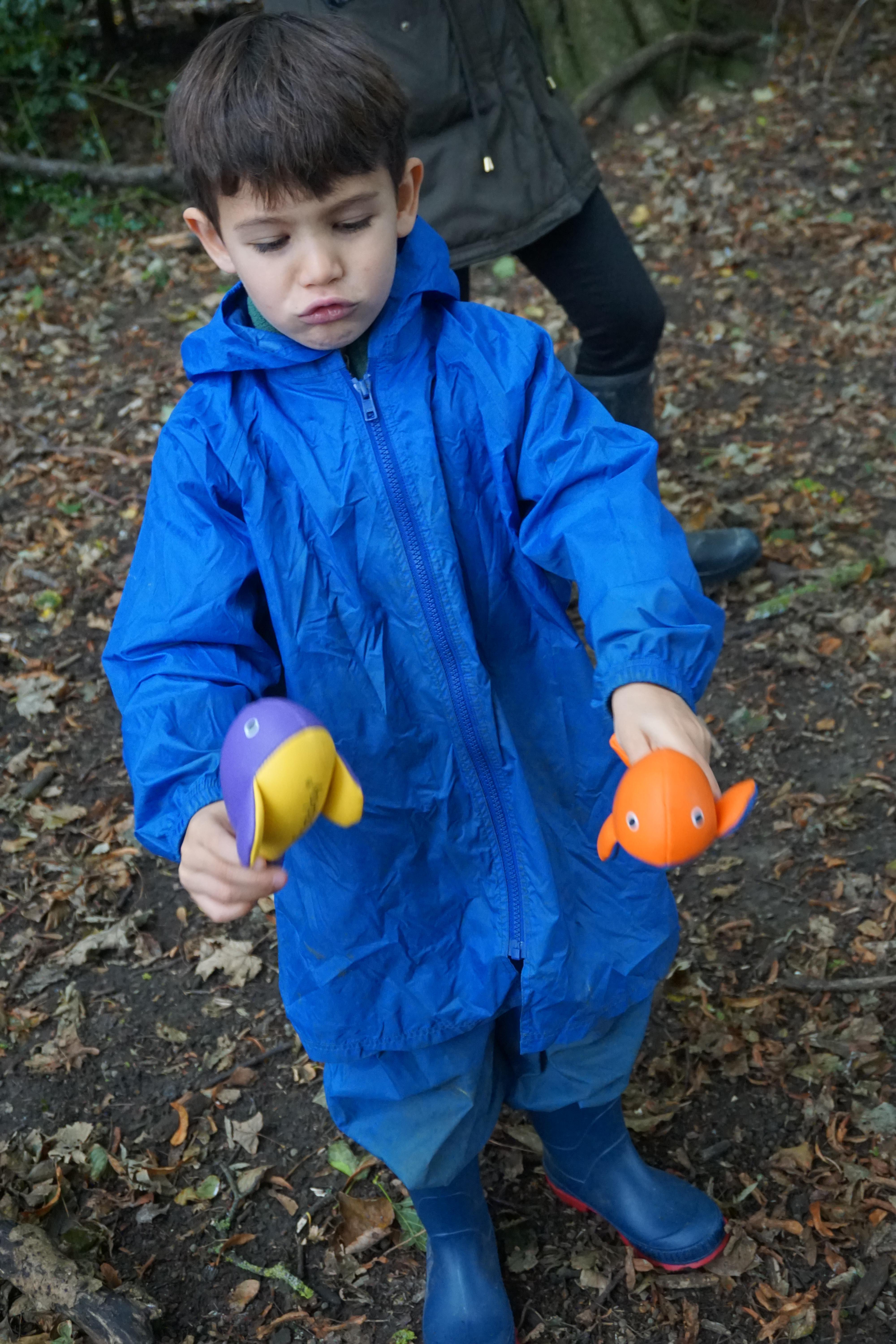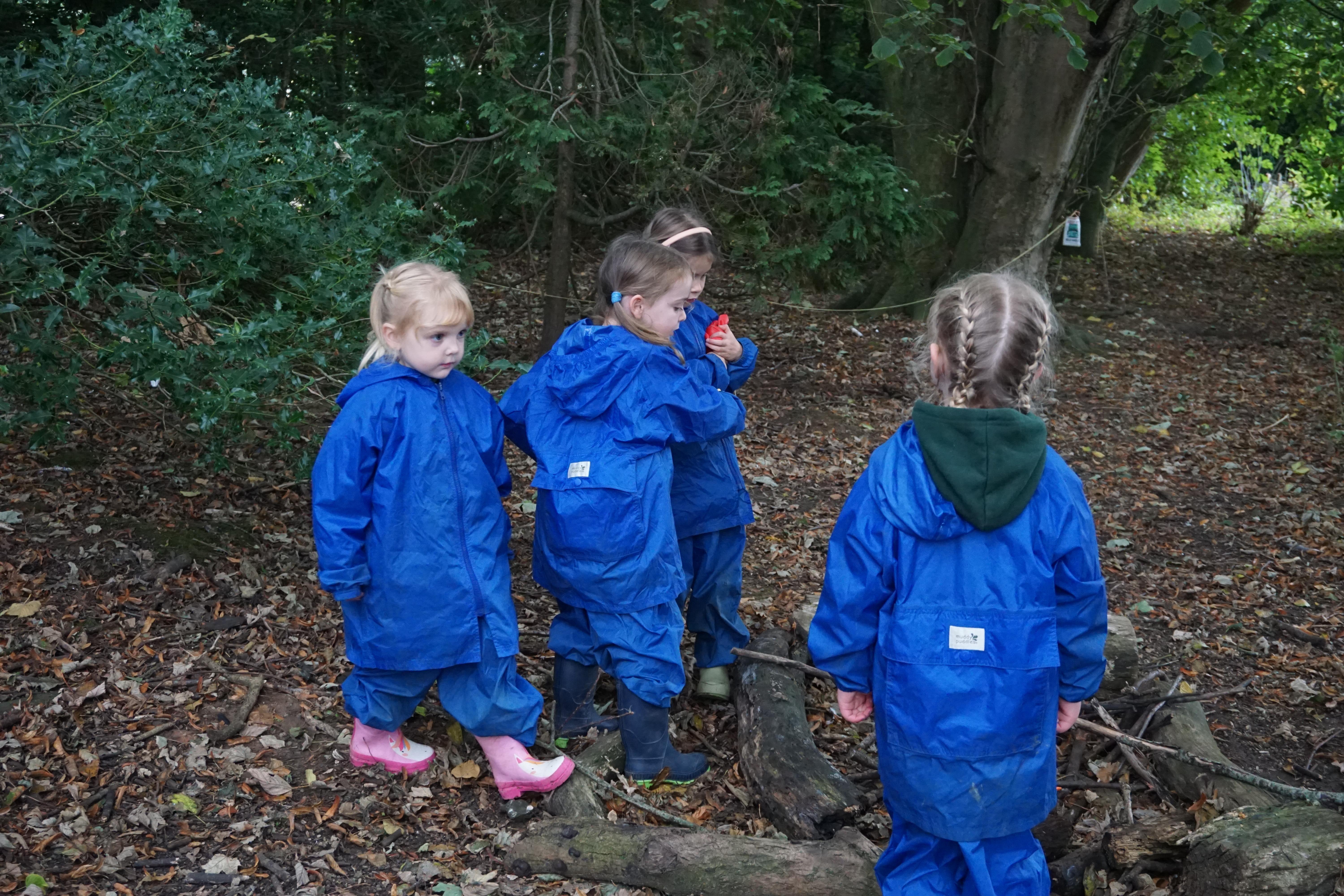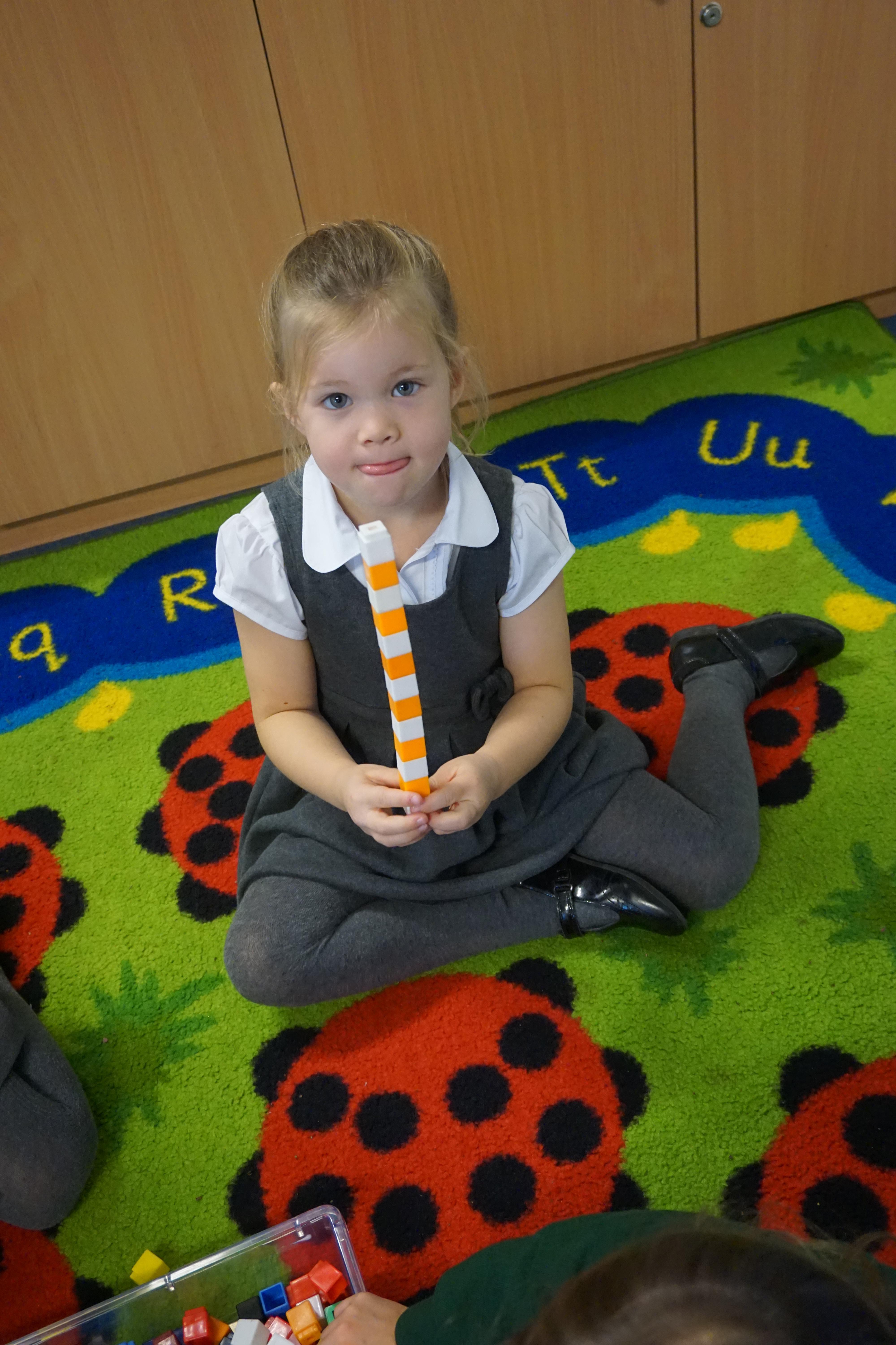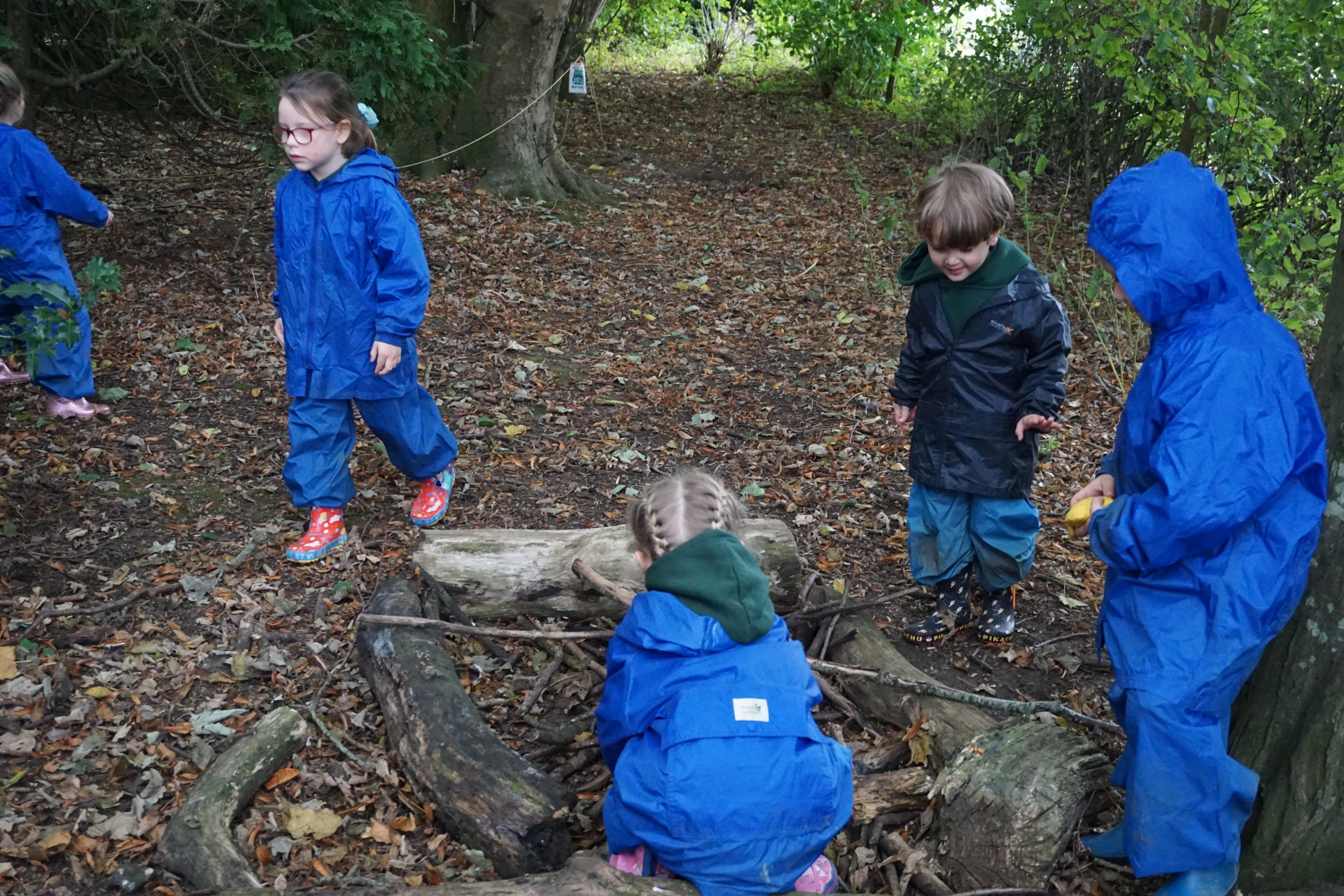 We have made repeating patterns in maths using the coloured cubes and have learnt three more sounds, p i n. The children also had great fun at forest school today.