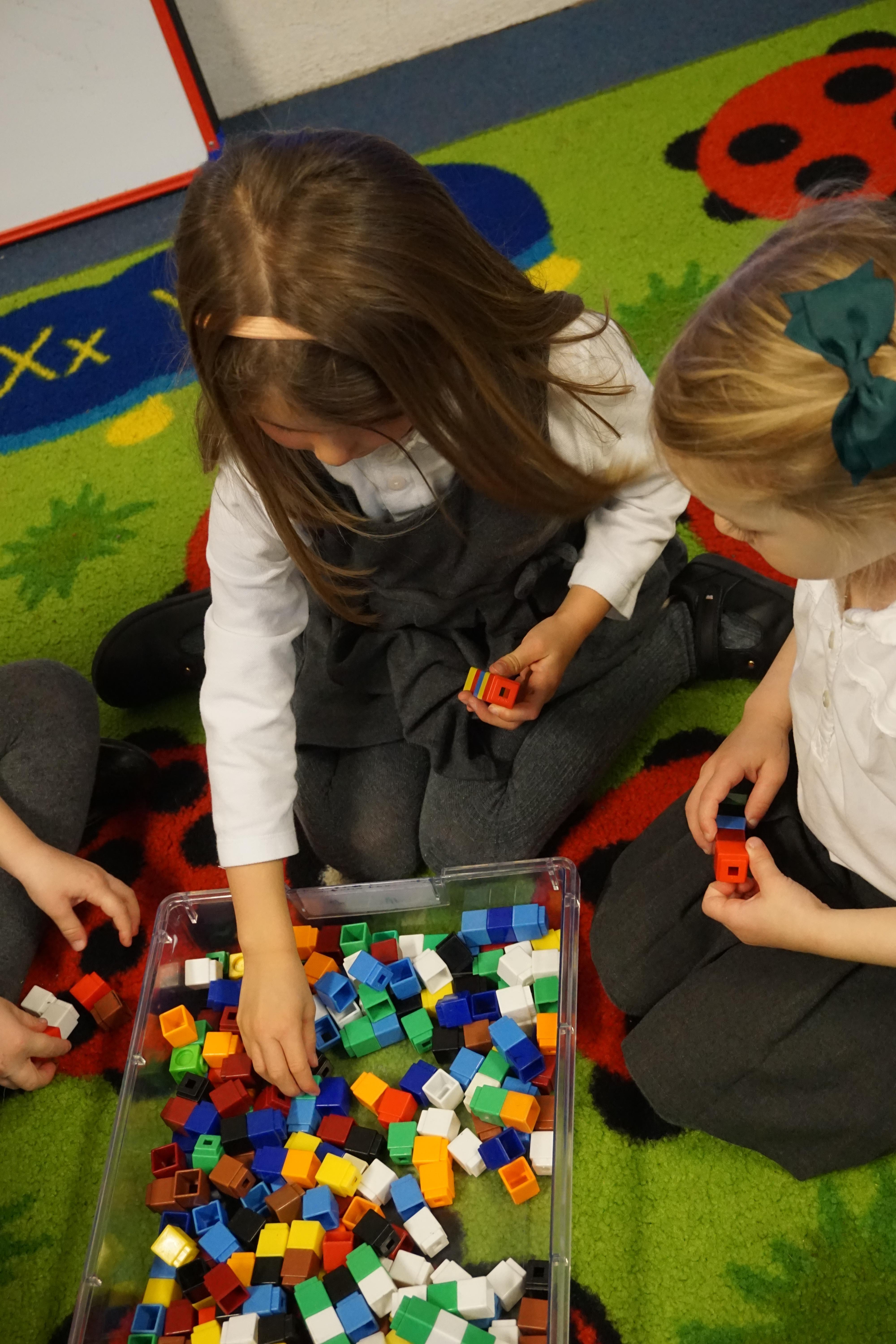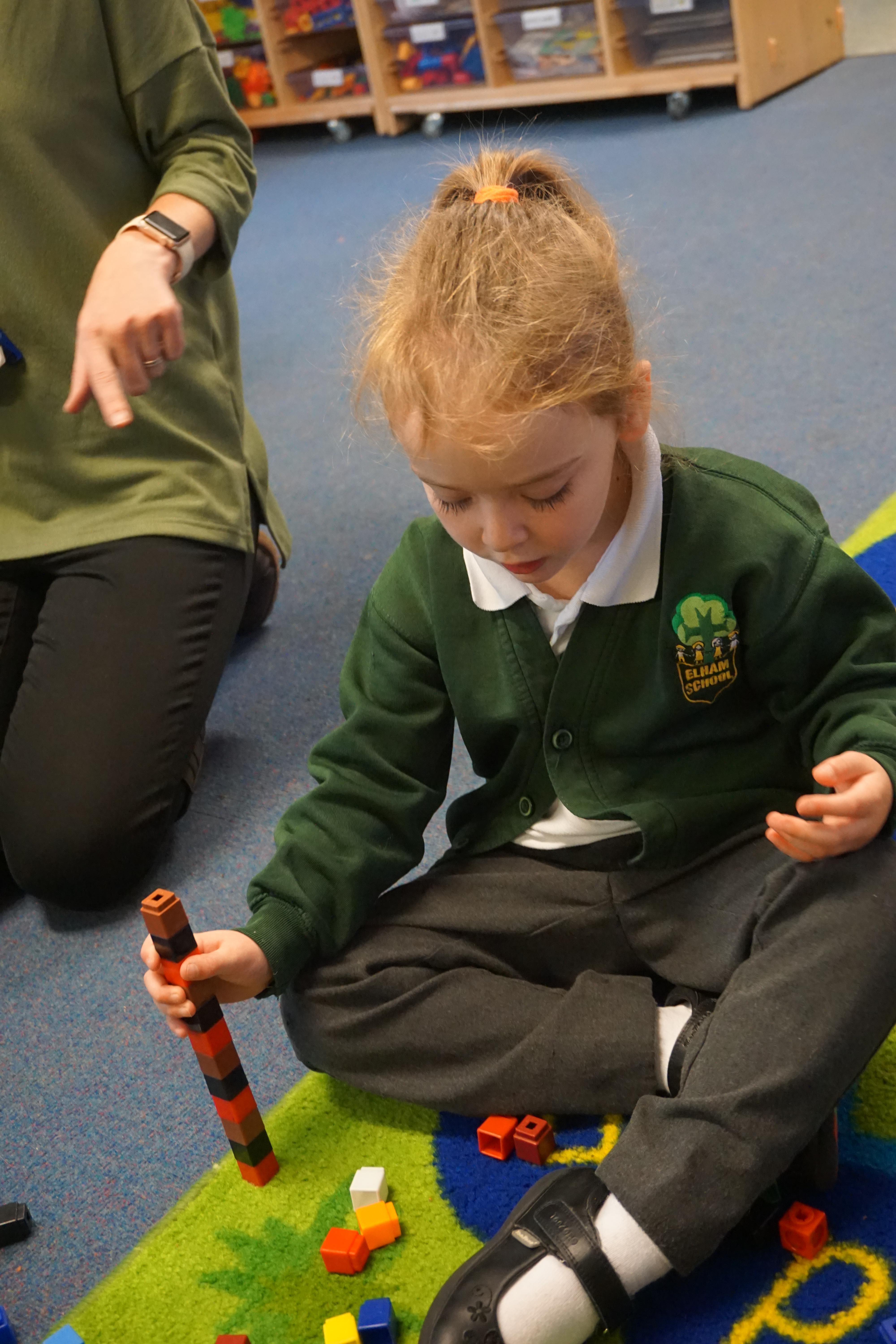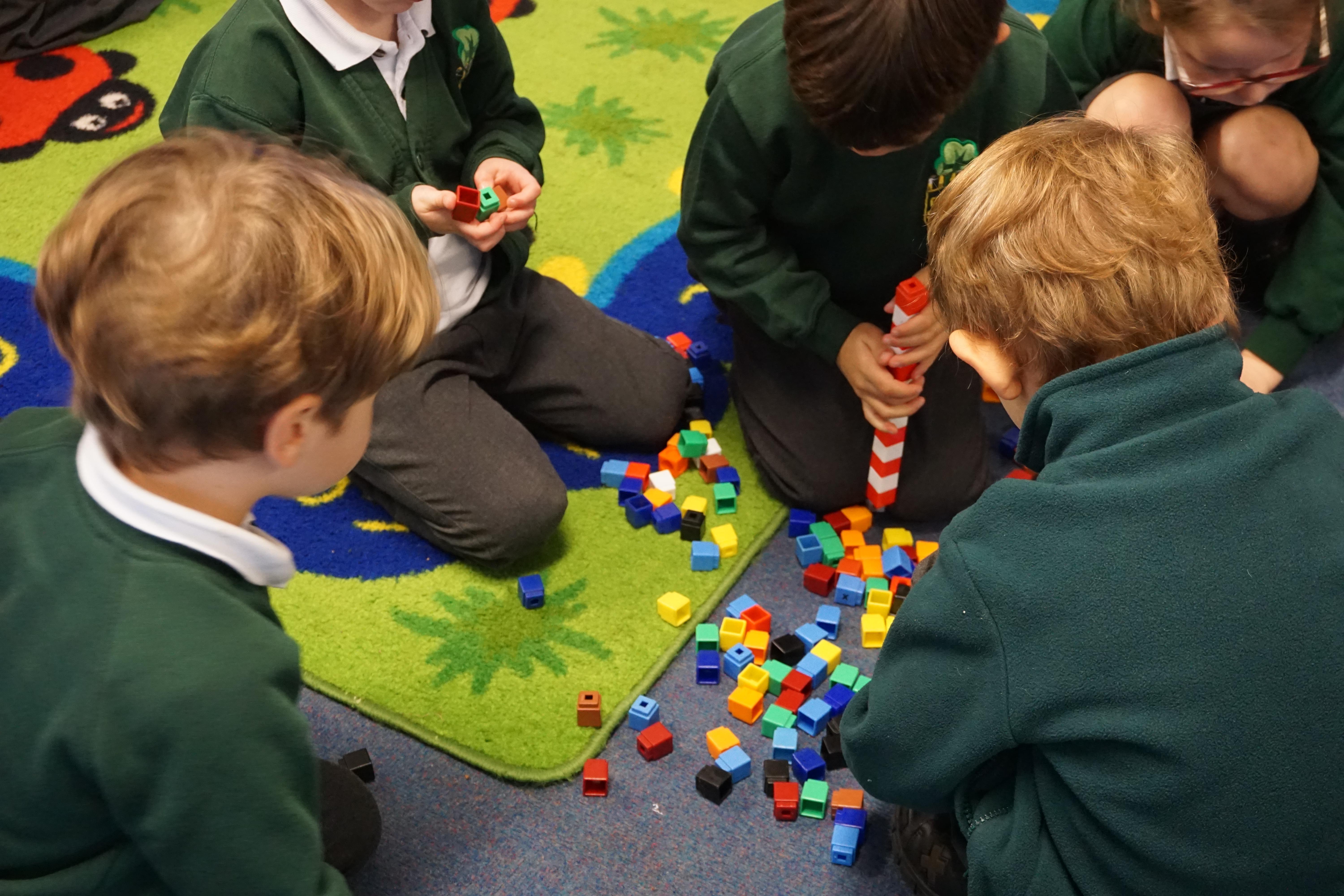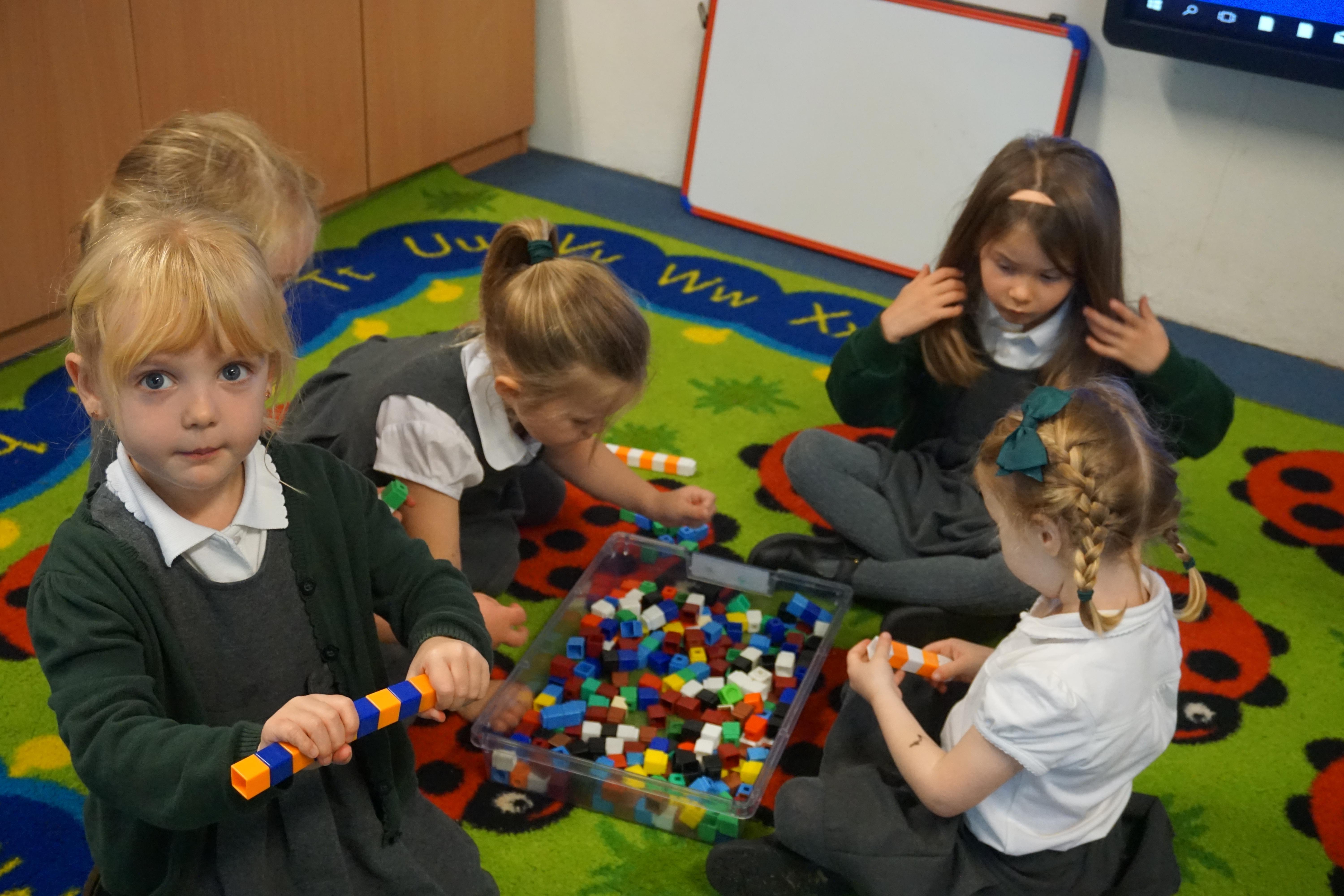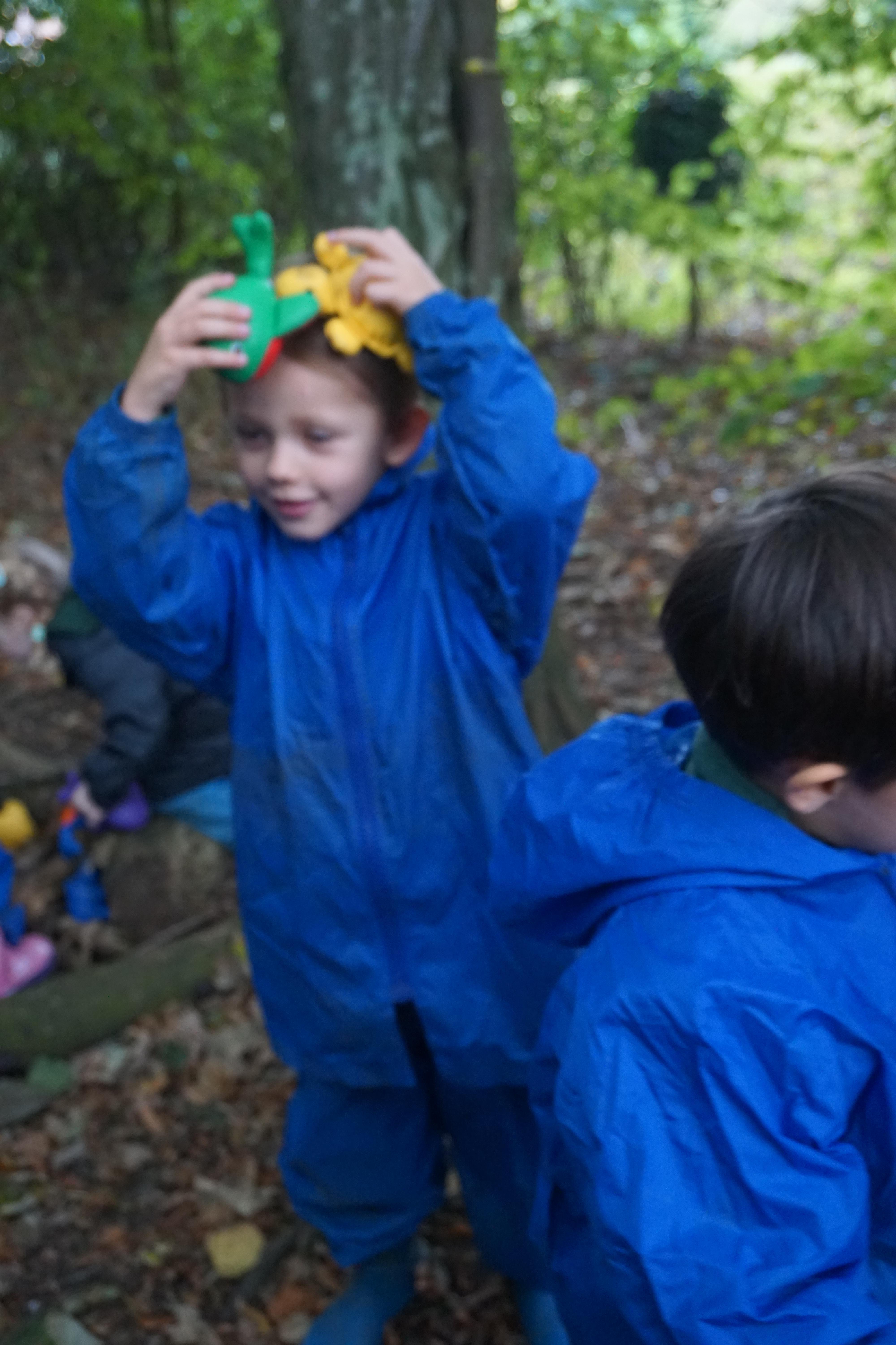 We have made repeating patterns in maths using the coloured cubes and have learnt three more sounds, p i n. The children also had great fun at forest school today.