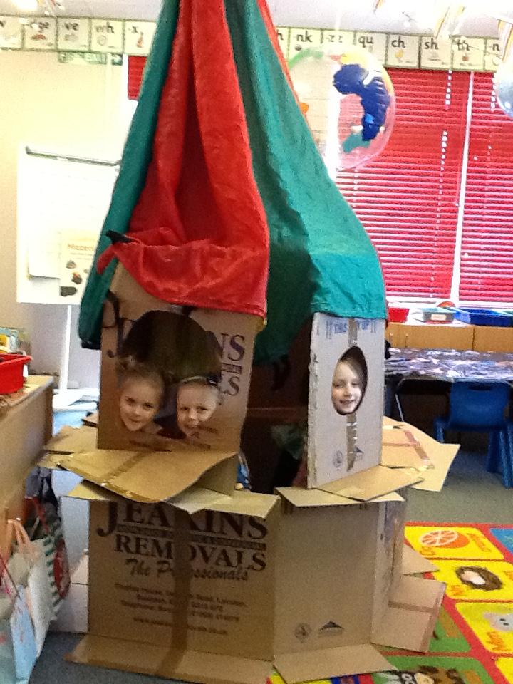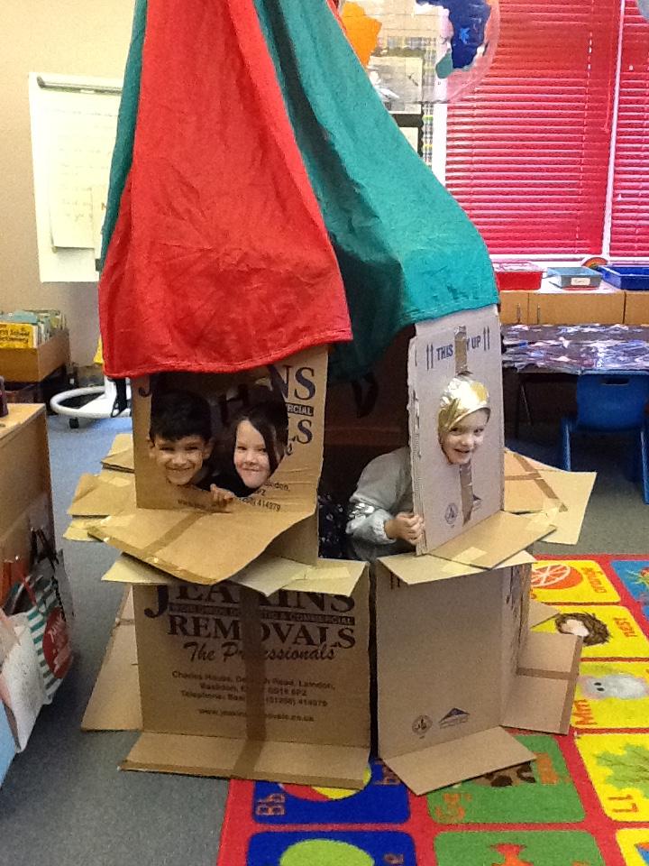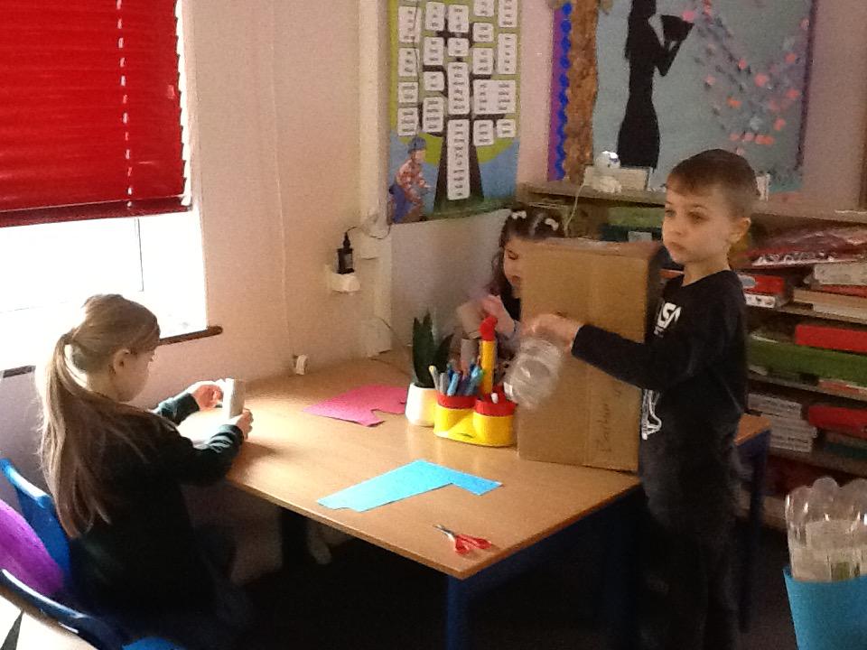 In Science the children investigated different materials to see which would make the best umbrella material.  Then they inspected the jars to see if the water had come through and made the toys wet.