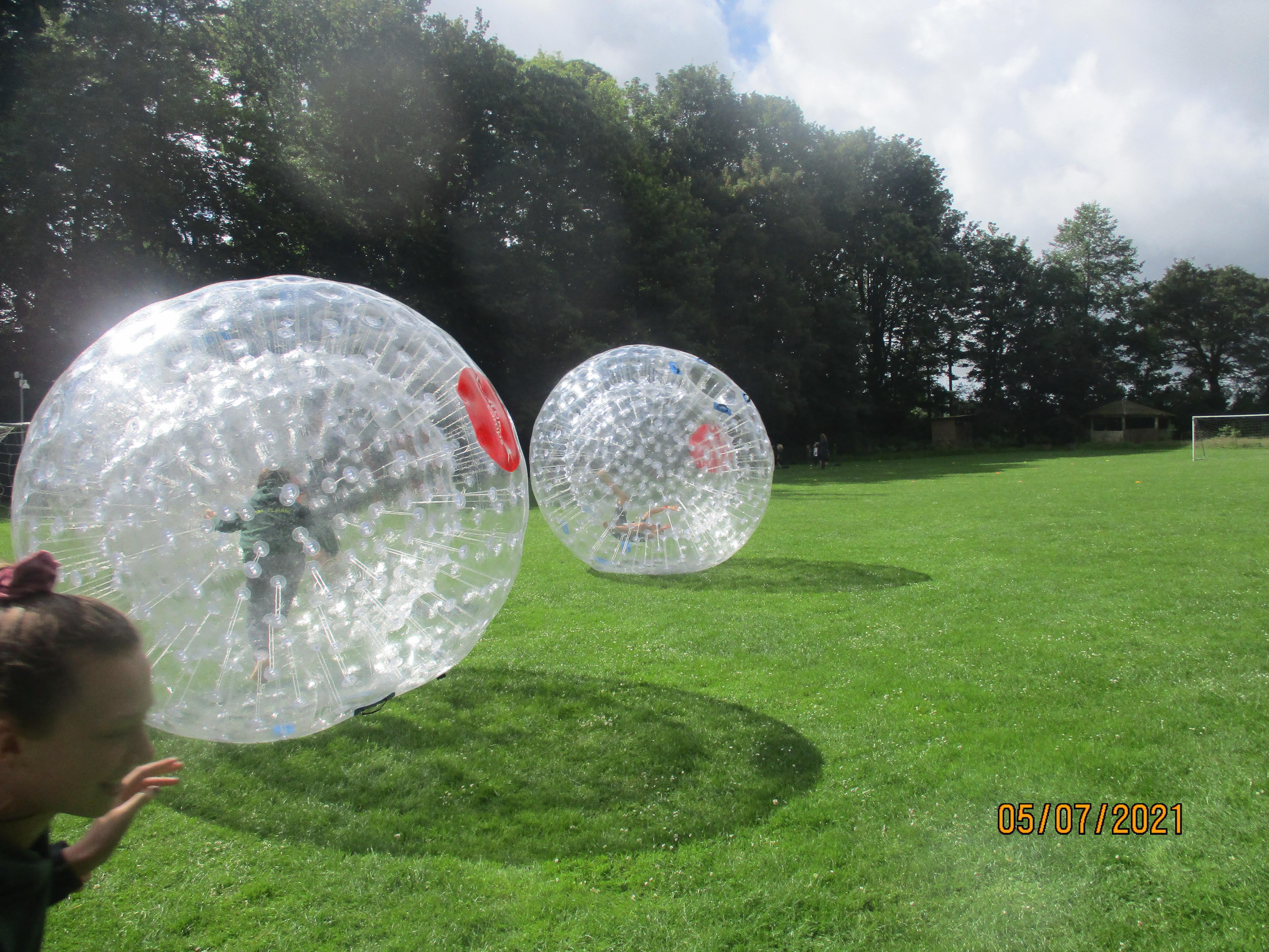 Either the zorbing, basketball or football because for zorbing I had never tried it before and it was really fun. For basketball I enjoyed it because I helped my team by passing it and dribbling it, but it was also really fun. I really enjoyed football though as it was really enjoyable, but it was hard aswell. I think overall my favourite was the zorbing. (Erin)