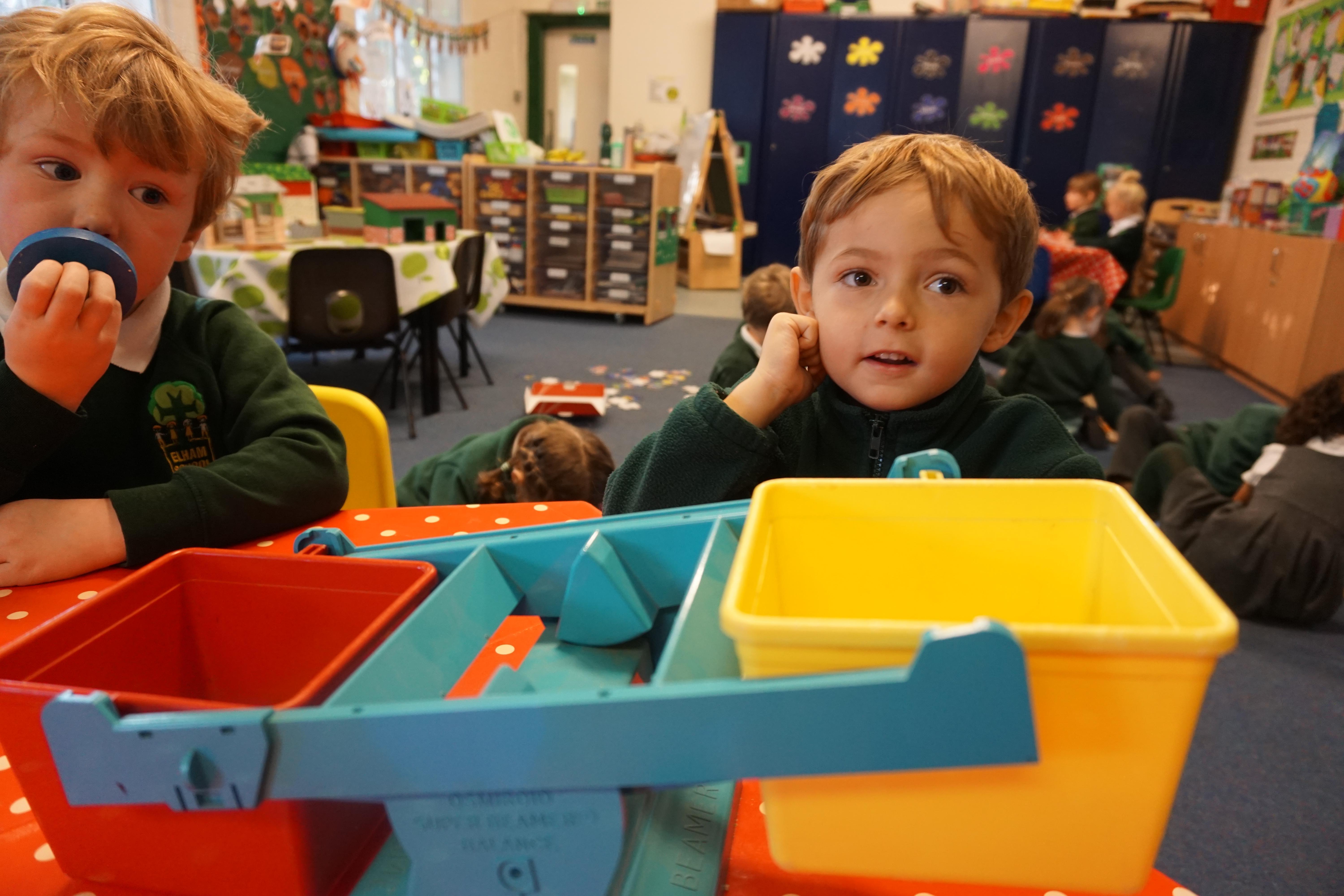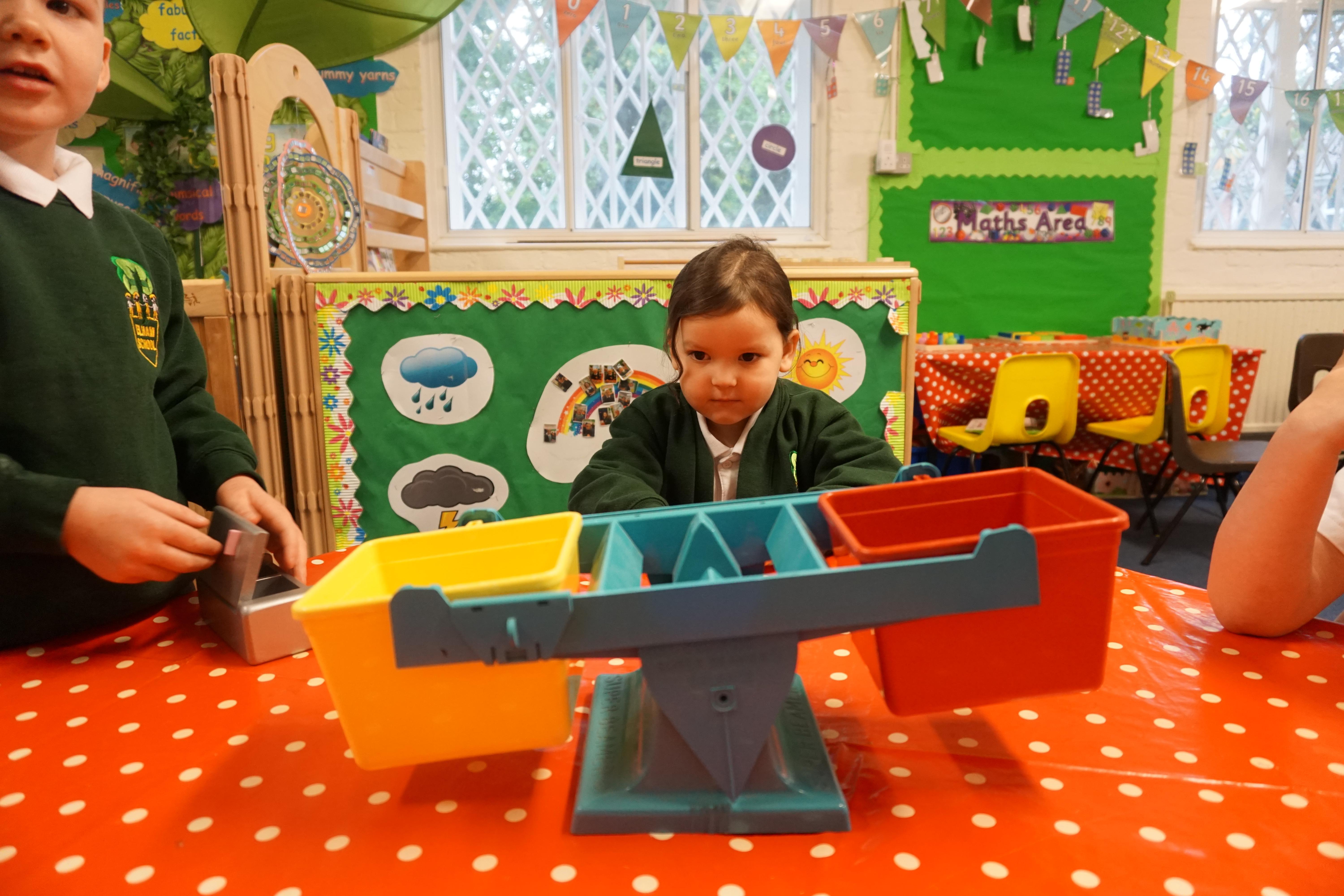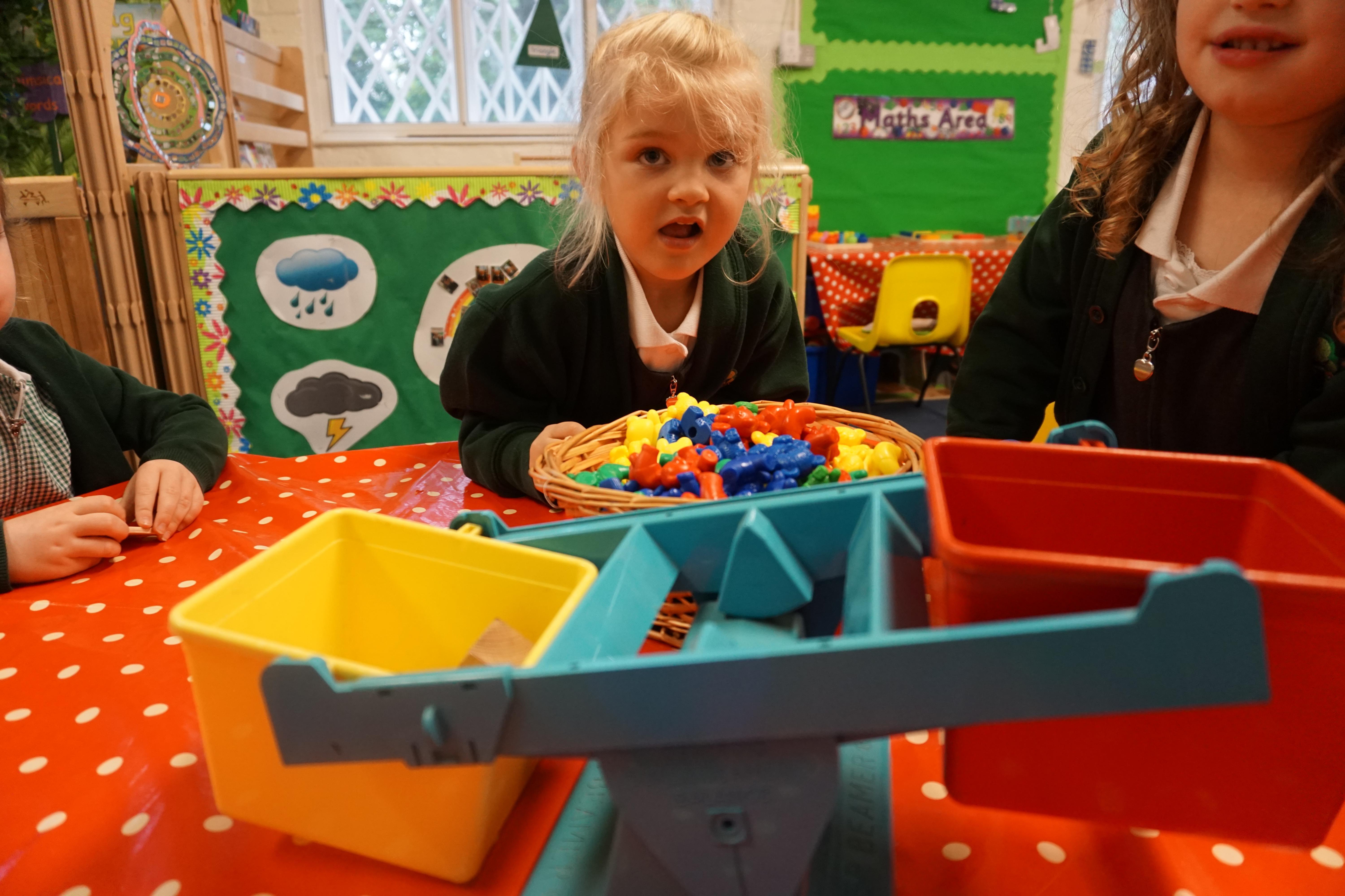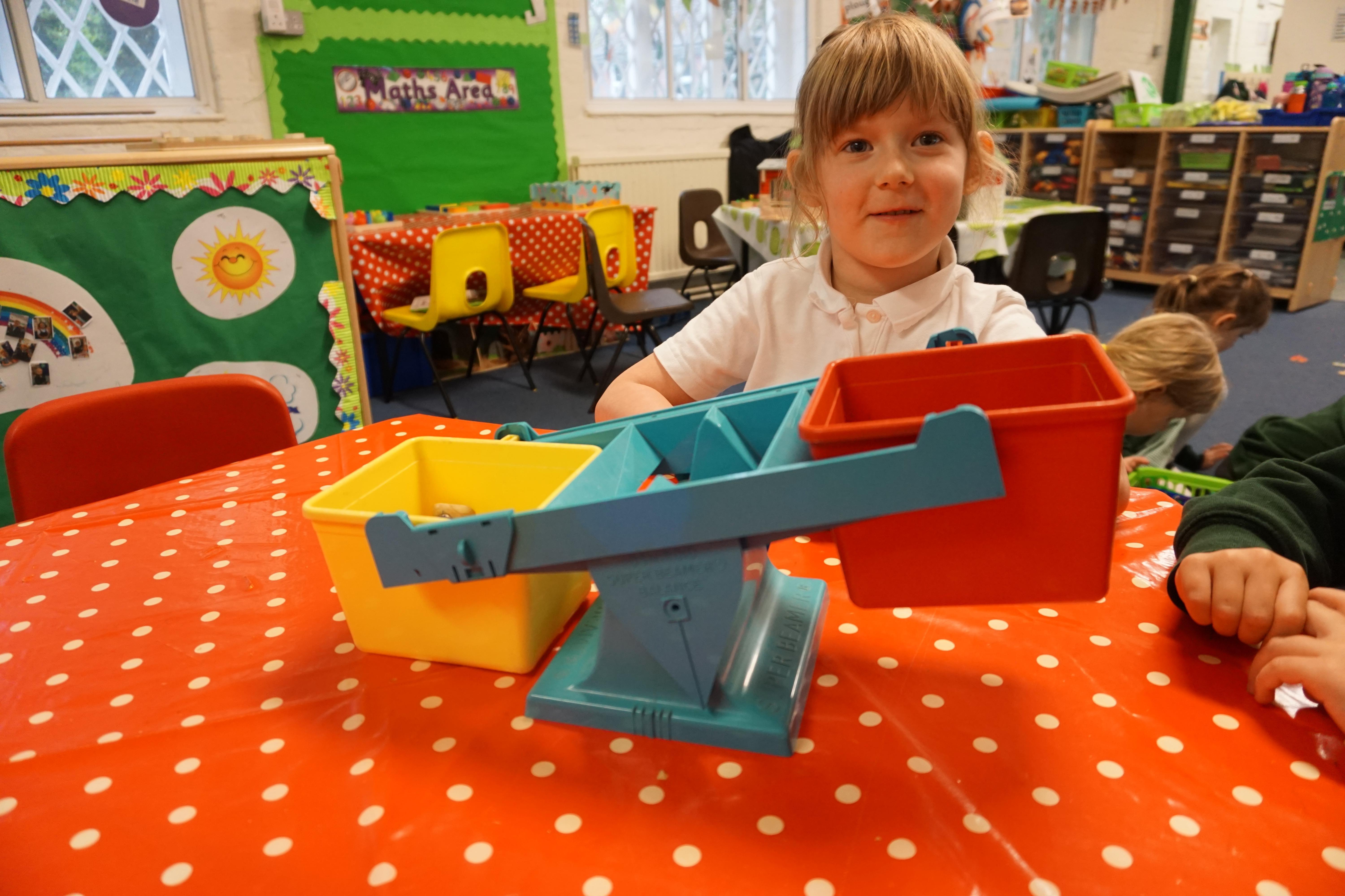 We have also been learning the language heavier and lighter and practically weighing items to test out our predictions.