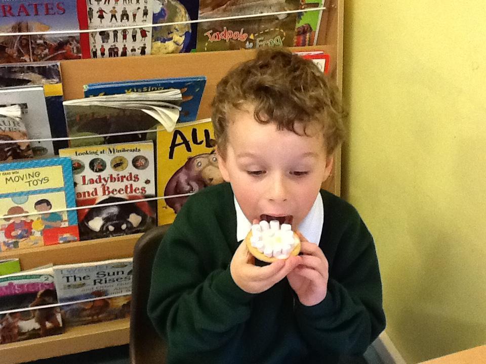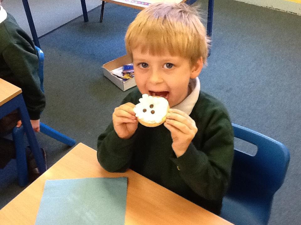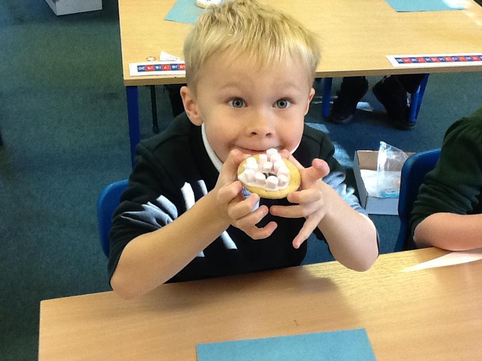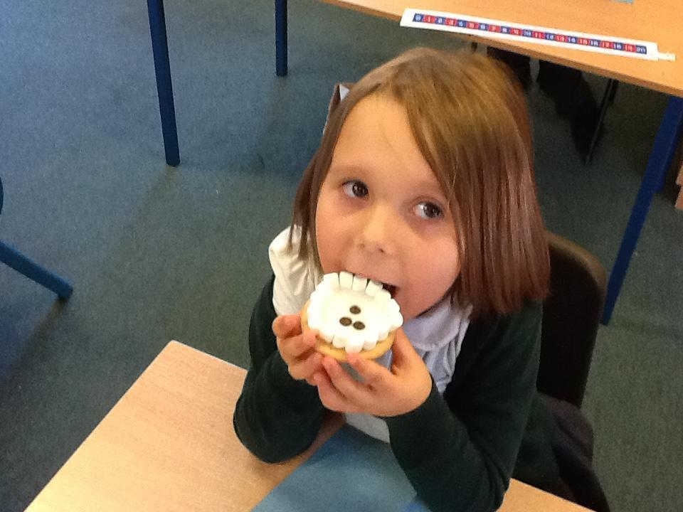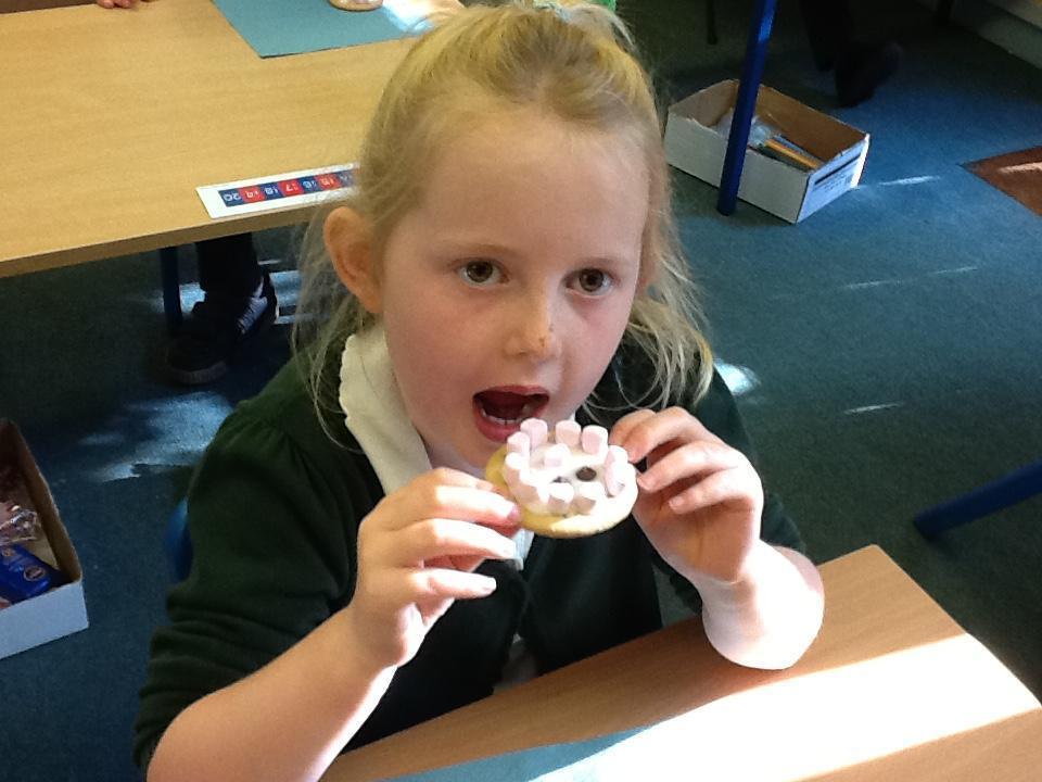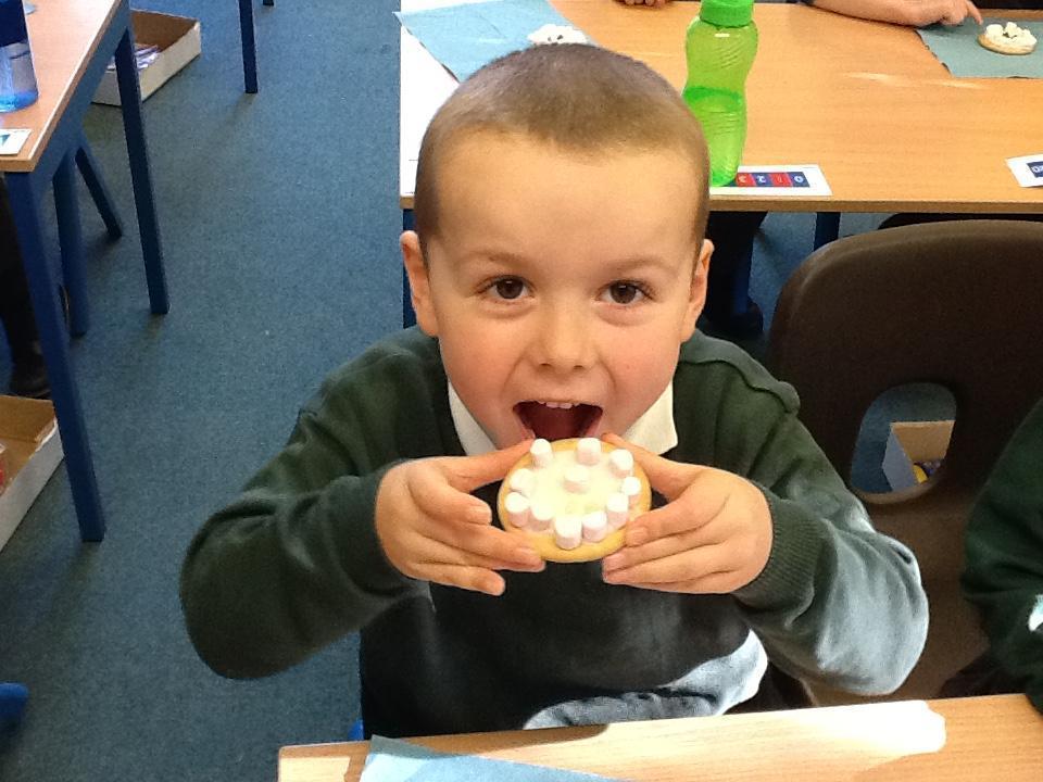 In Maths we have been sequencing events using before and after and today we used first, next, thenand finally to decorate a biscuit in the correct sequence. As you can see we finally ate the biscuit!