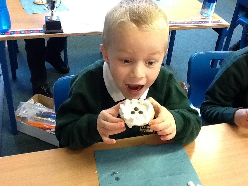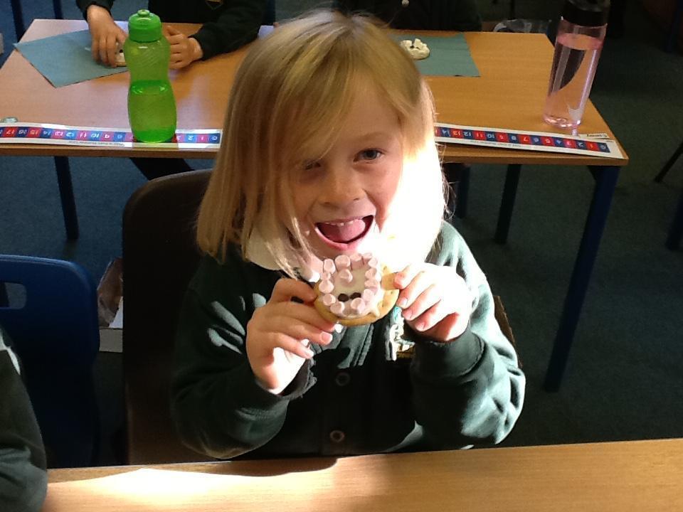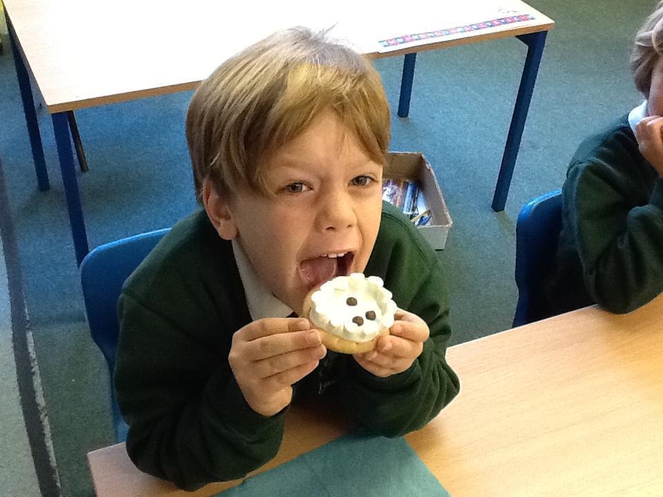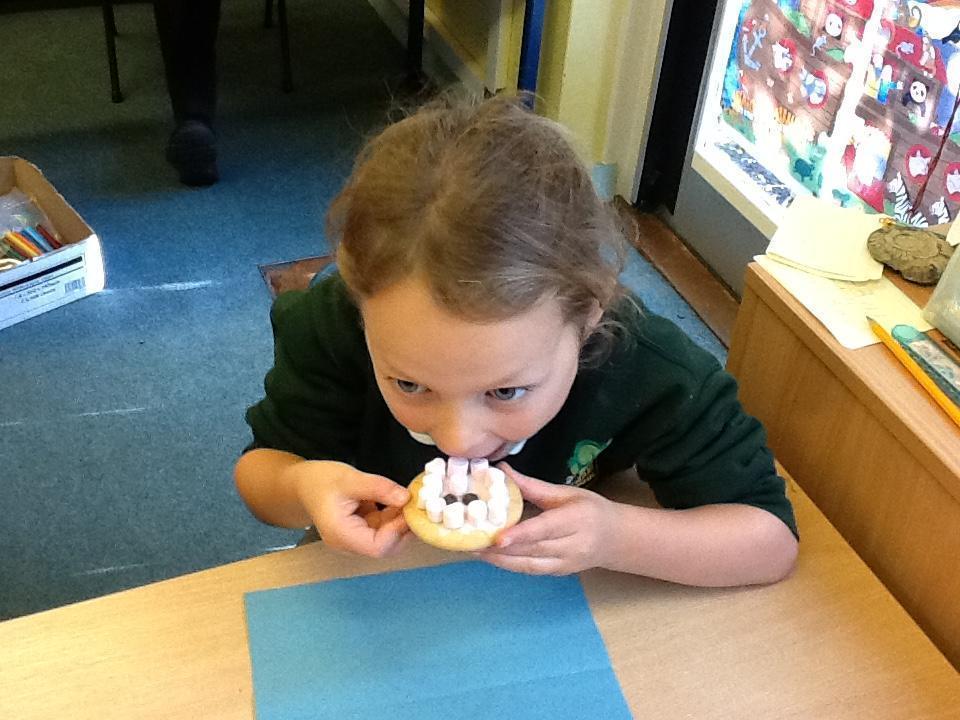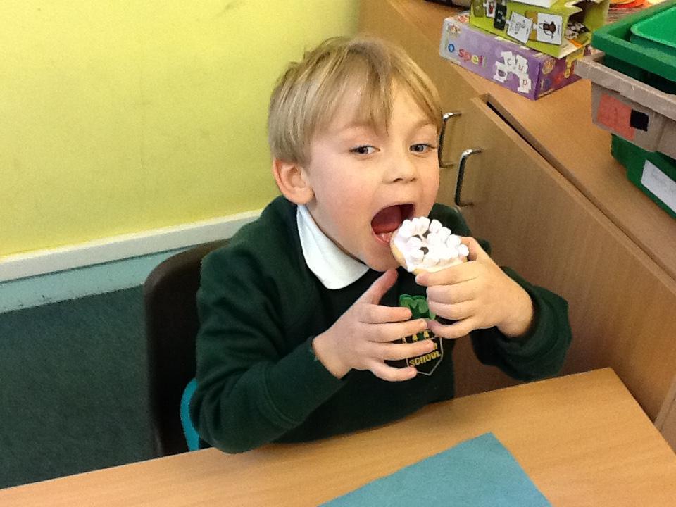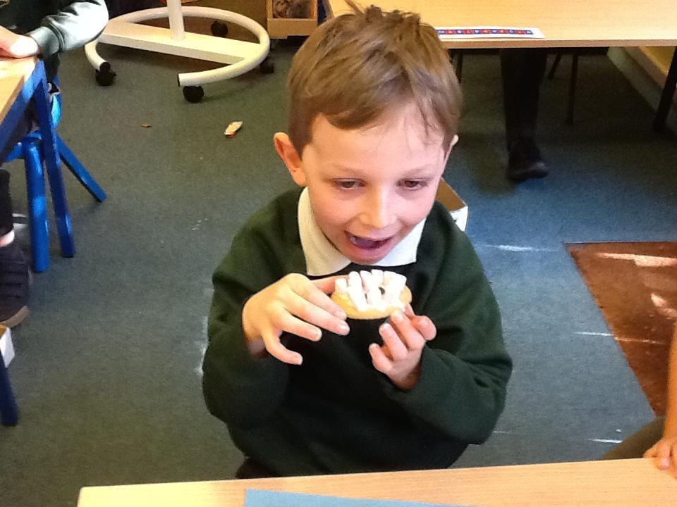 In Maths we have been sequencing events using before and after and today we used first, next, thenand finally to decorate a biscuit in the correct sequence. As you can see we finally ate the biscuit!