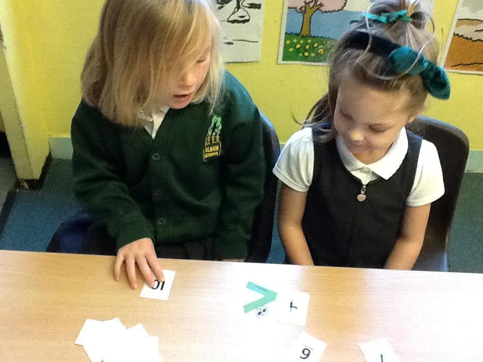 This week in Maths the children have been learning to use the 'greater than', 'less than' and 'equals' symbols. First they compared groups of objects using the symbols, then they compared numbers.