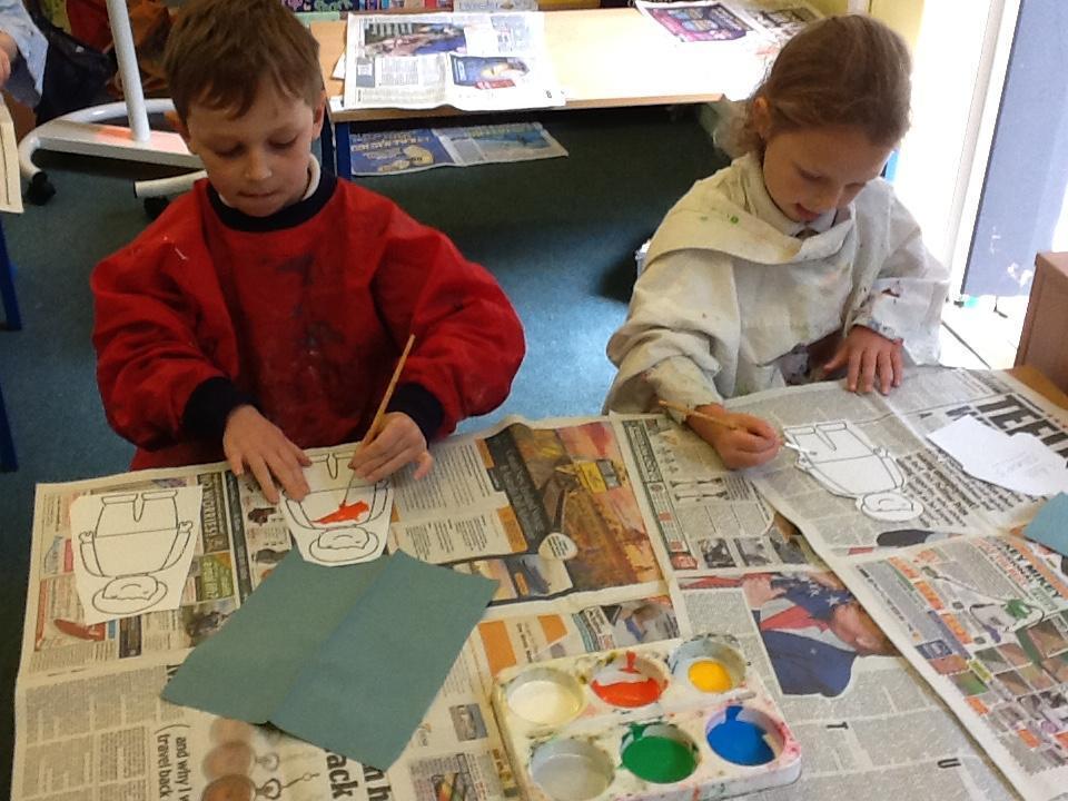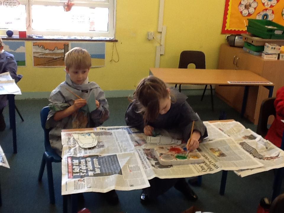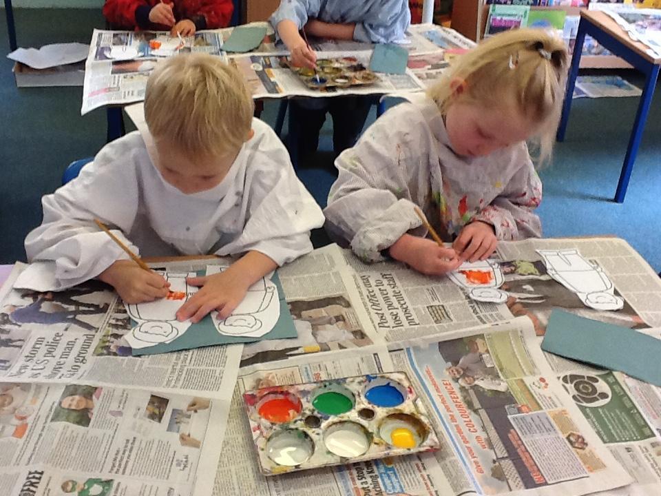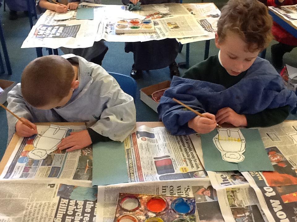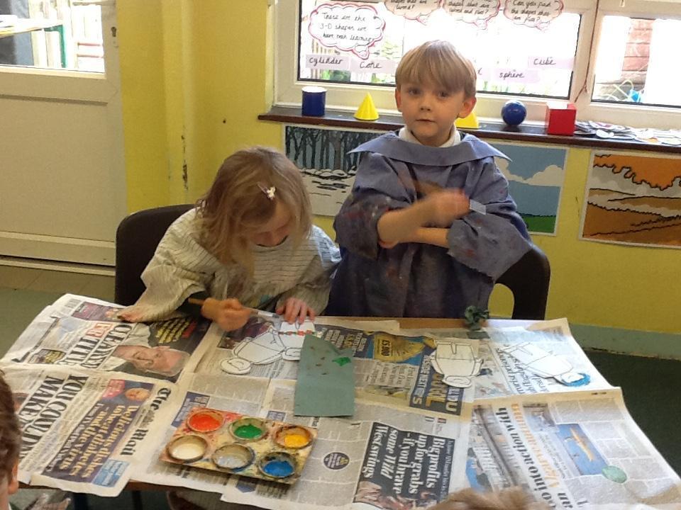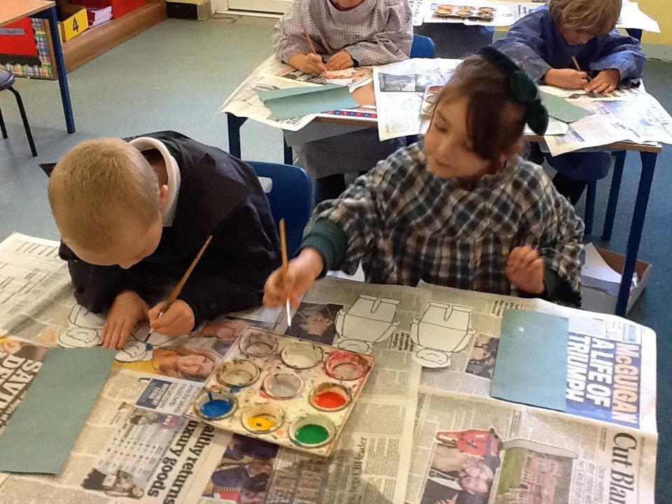 At the same time the children have been learning how to use the correct brush stroke and now to keep the pallets clean when changing from one colour to another.