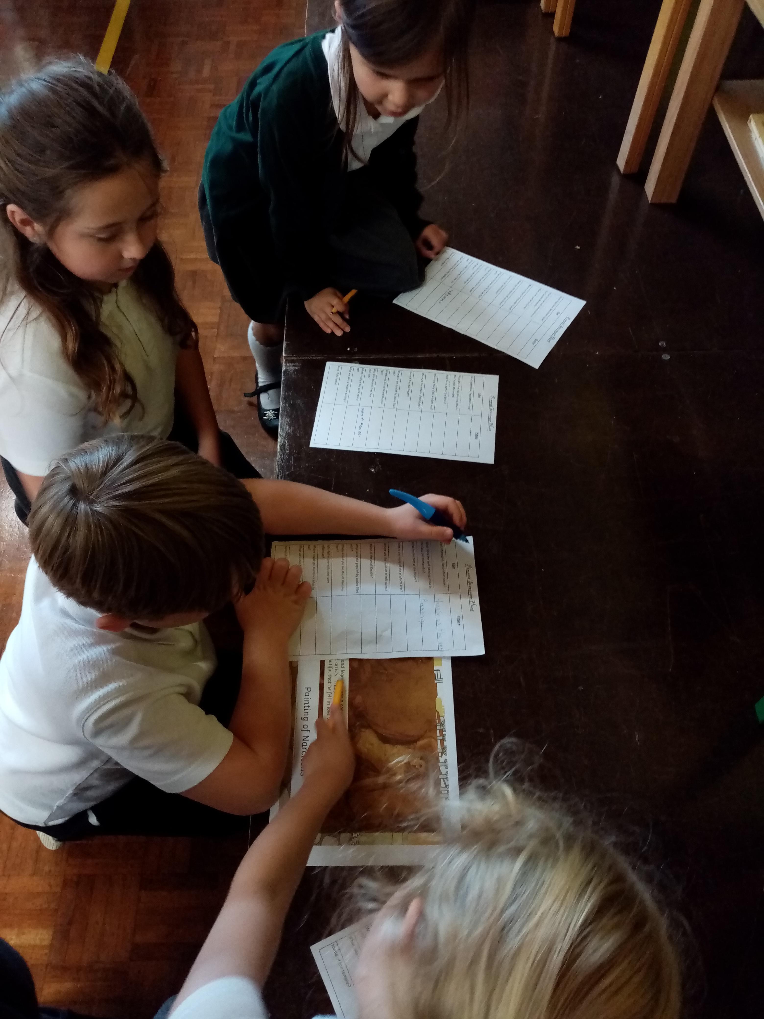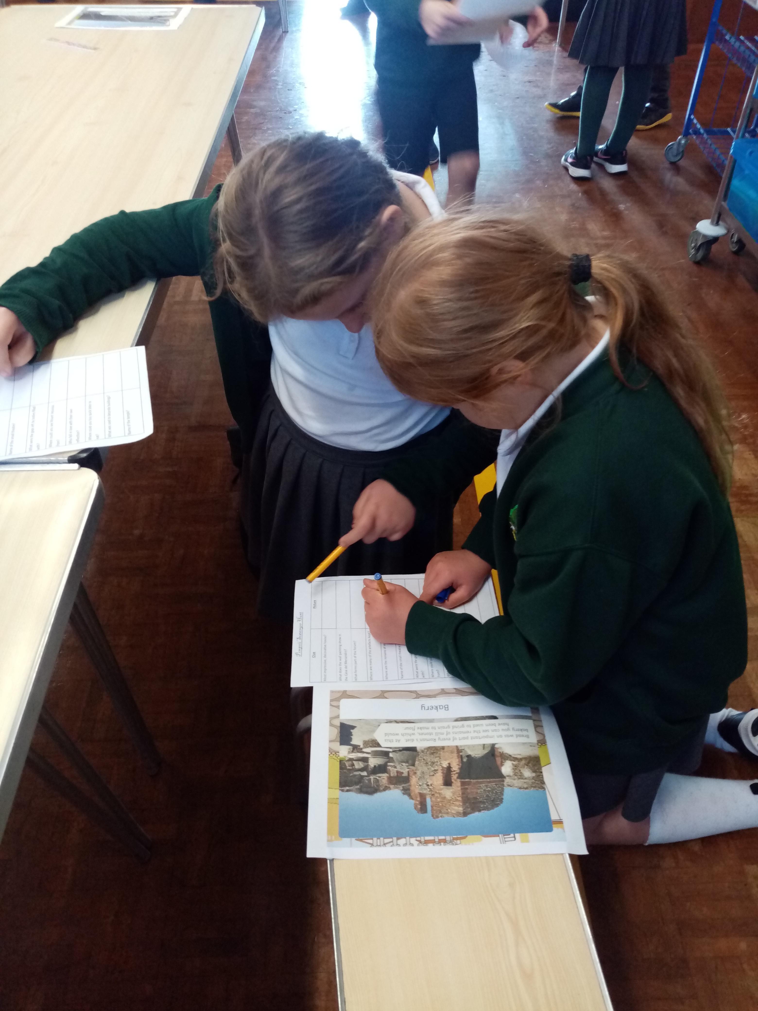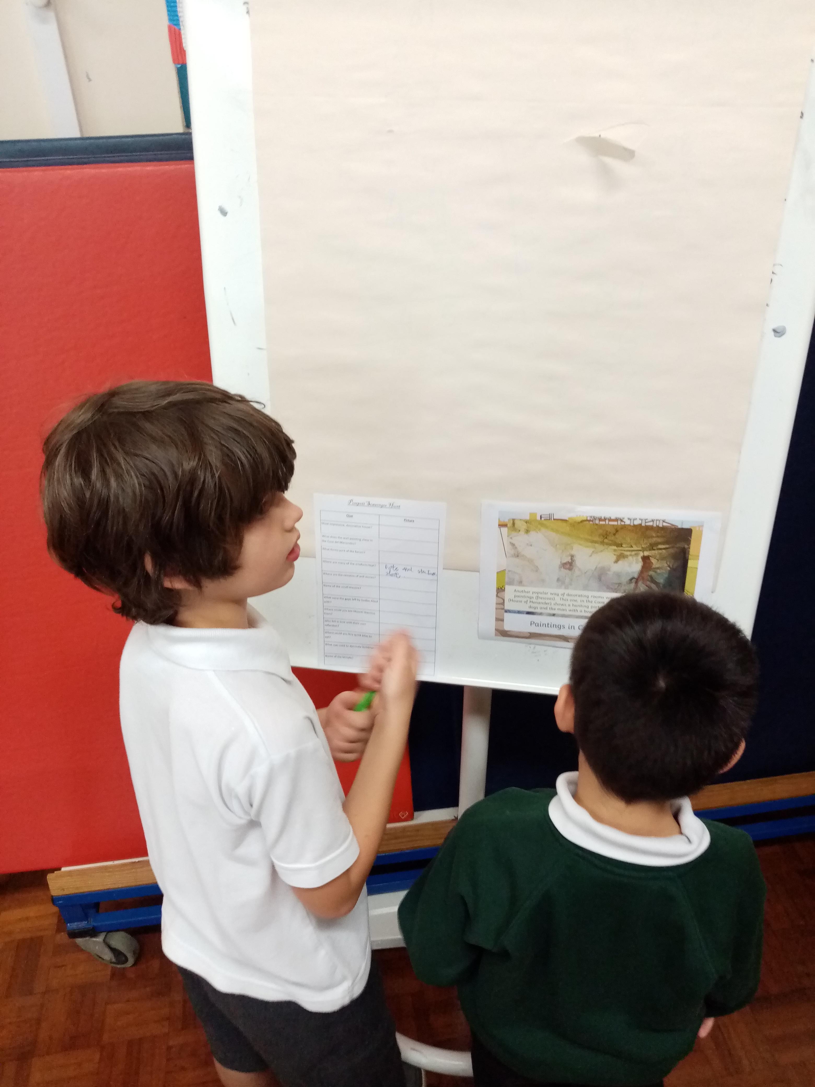 Pompeii Scavenger Hunt. The children had clues, and used pictures from after Pompeii was discovered to explore the lost city of Pompeii.