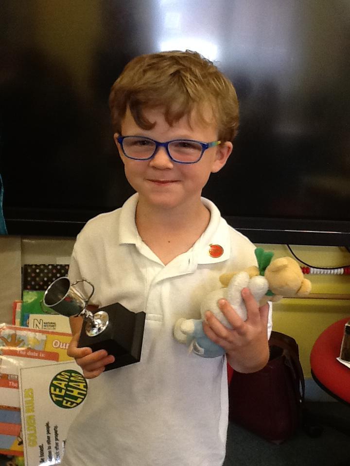 This weeks 'Star of the Week' is Zach. You have made a fabulous start in Hazel class Zach. You are always ready to learn and you have worked so hard this week identifying and representing numbers in Maths. You are such a kind member of Hazel class and are always happy to help others. You look super smart in your new glasses too!
