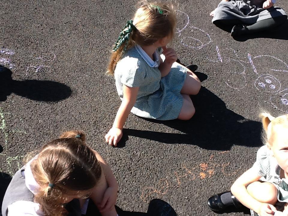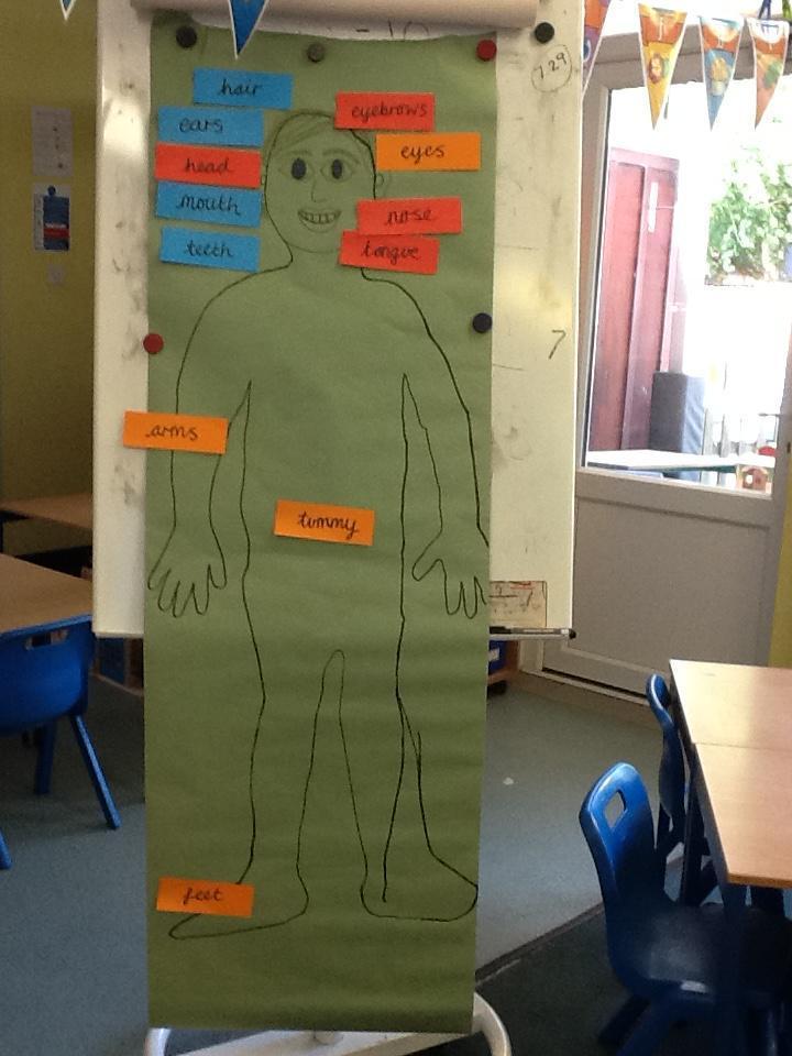 In Science this term we are learning about the human body and our senses. We drew an outline of a body (around Levi!) and labelled some body parts that we can see. We then focused on our eyes, ears, nose, hands and tongue and found out why these are called our five senses. We also played a really fun (and tiring) game called crazy body parts!