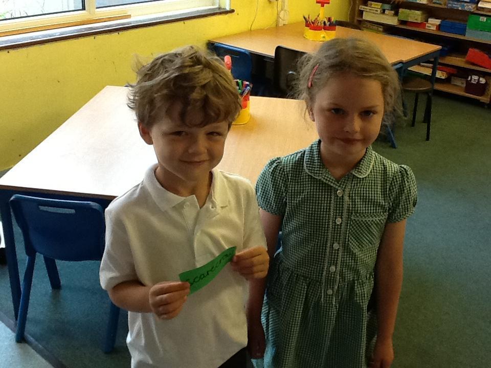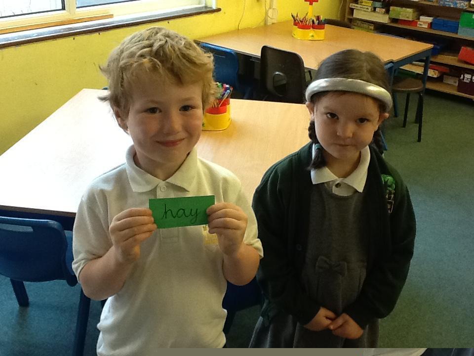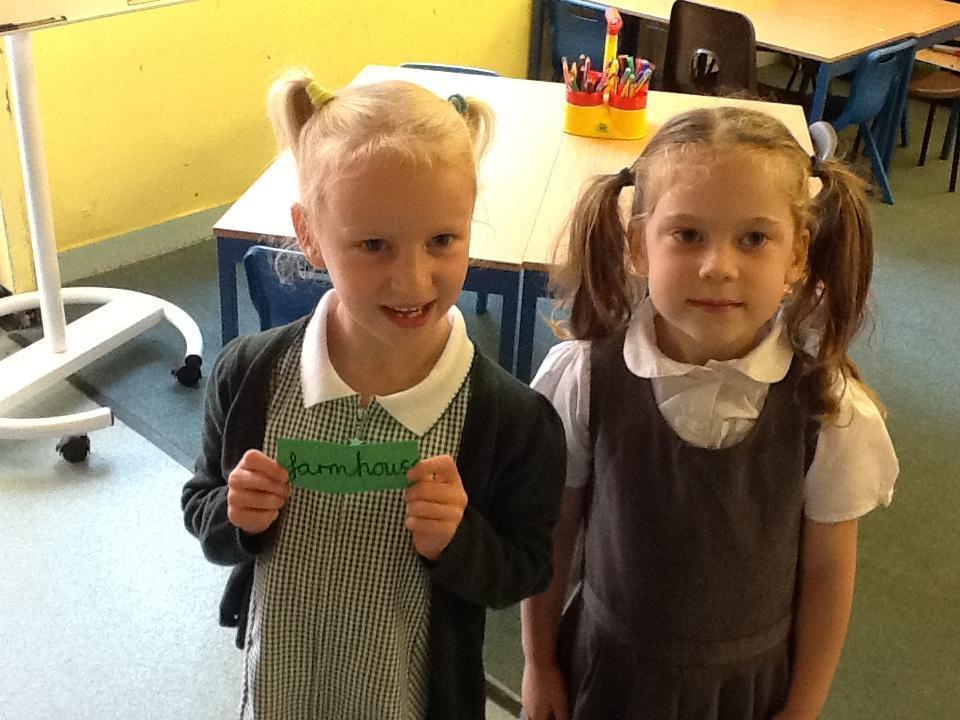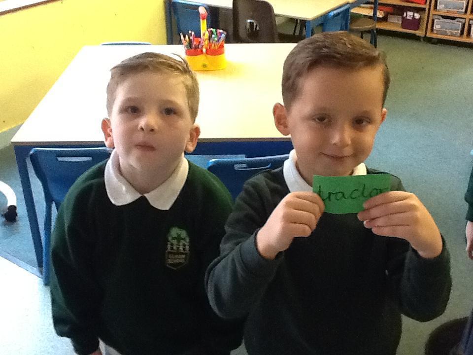 In English the children are focusing on labels, lists and captions. We have been reading What the Ladybird Heard by Julia Donaldson and today the children found different words hidden around the classroom to label a picture of the farmyard from the book.