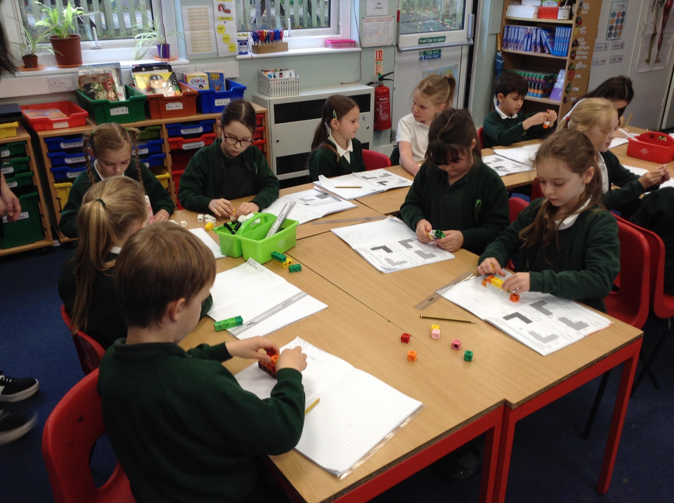 In Maths, we have been learning about area and the Year 3 children enjoyed making shapes with the cubes and finding the area of a 2D surface.