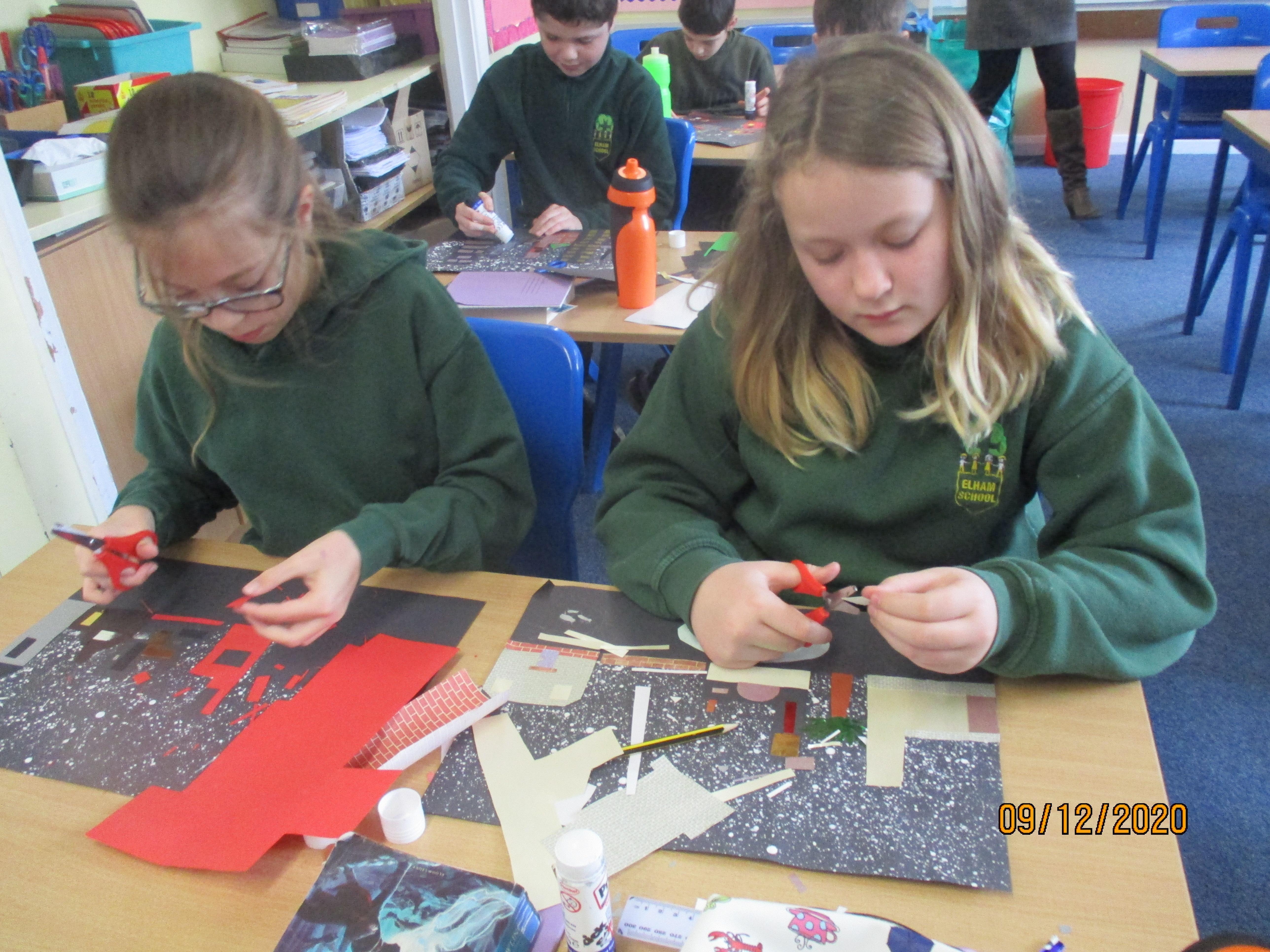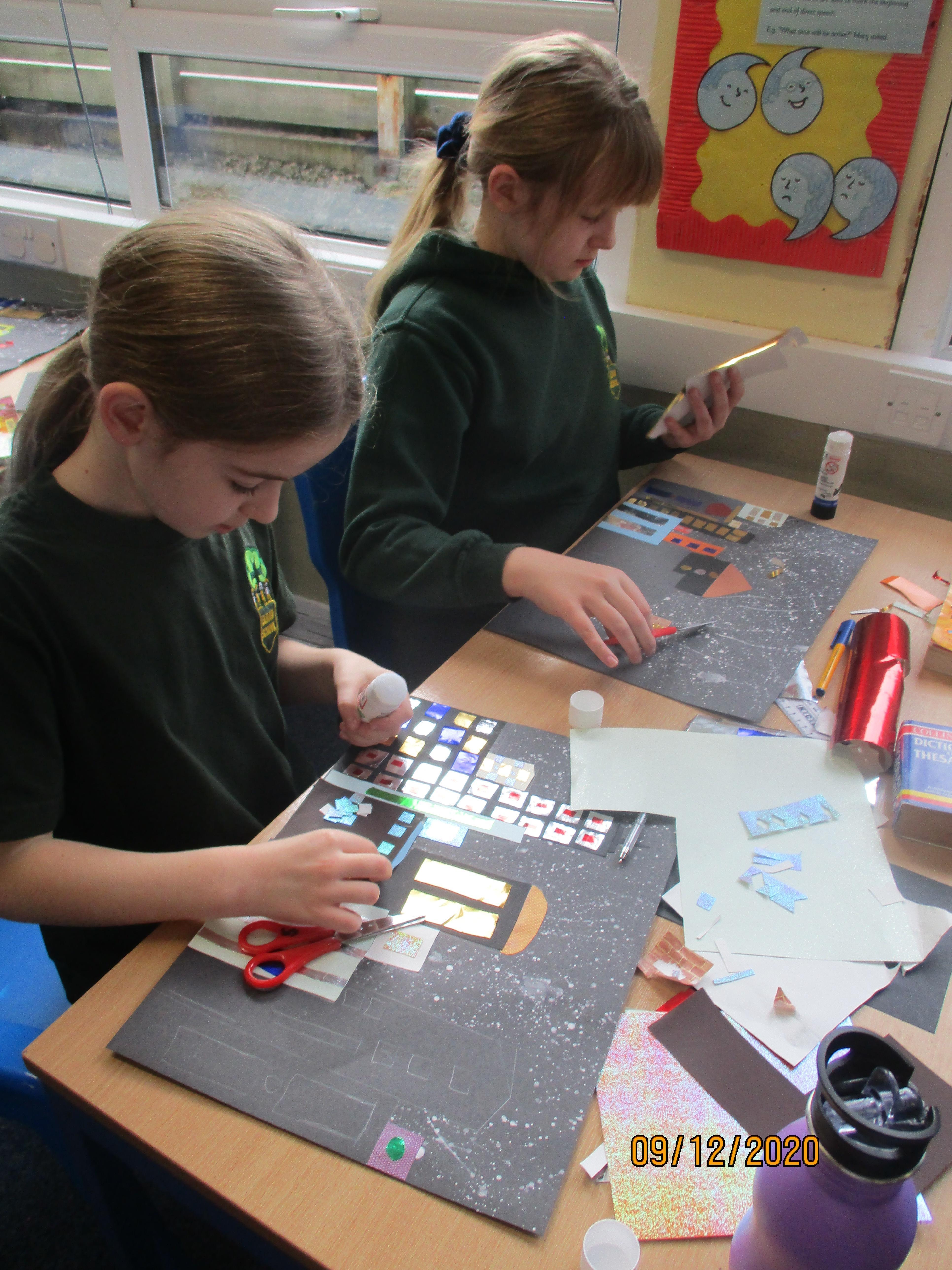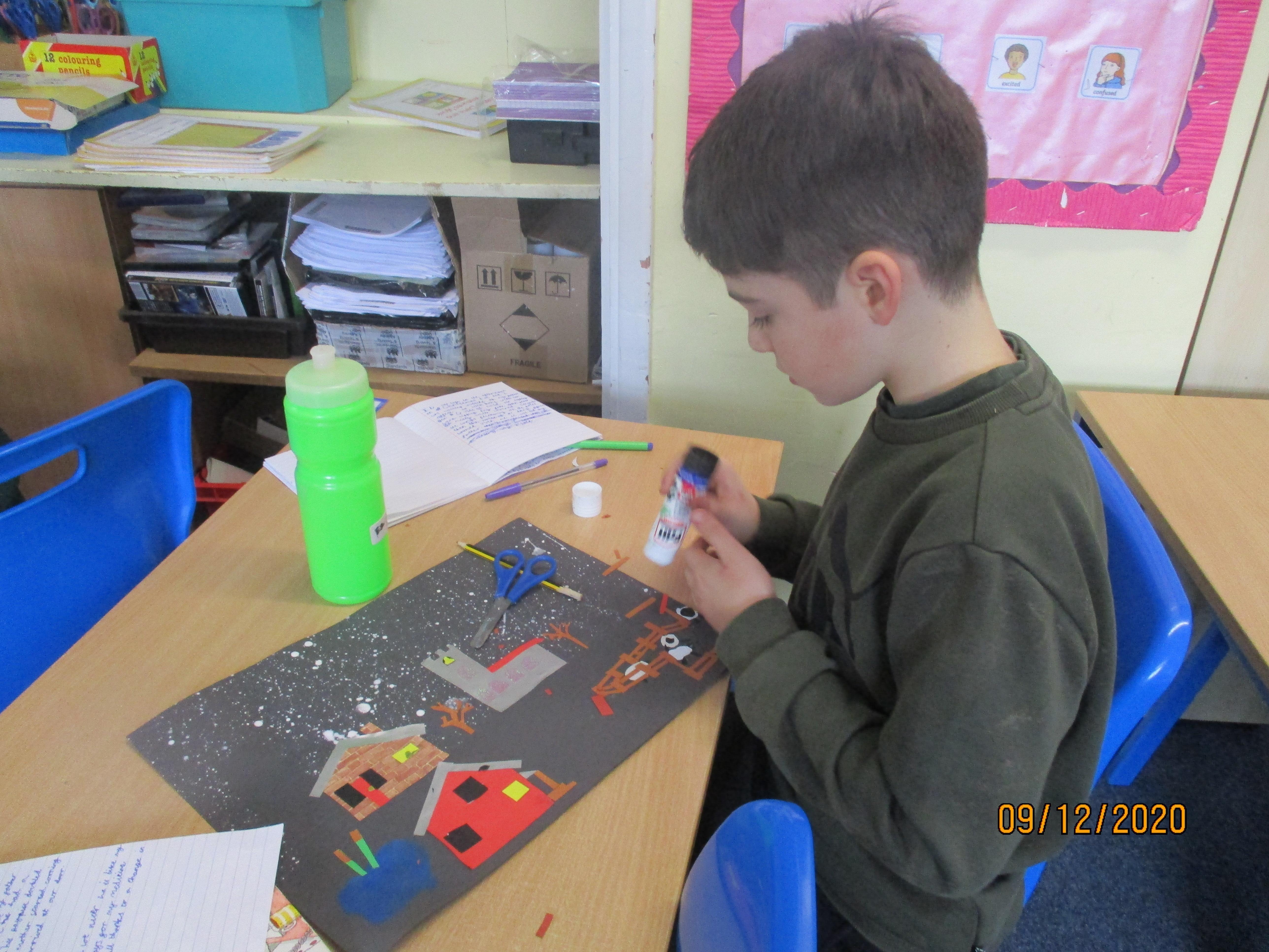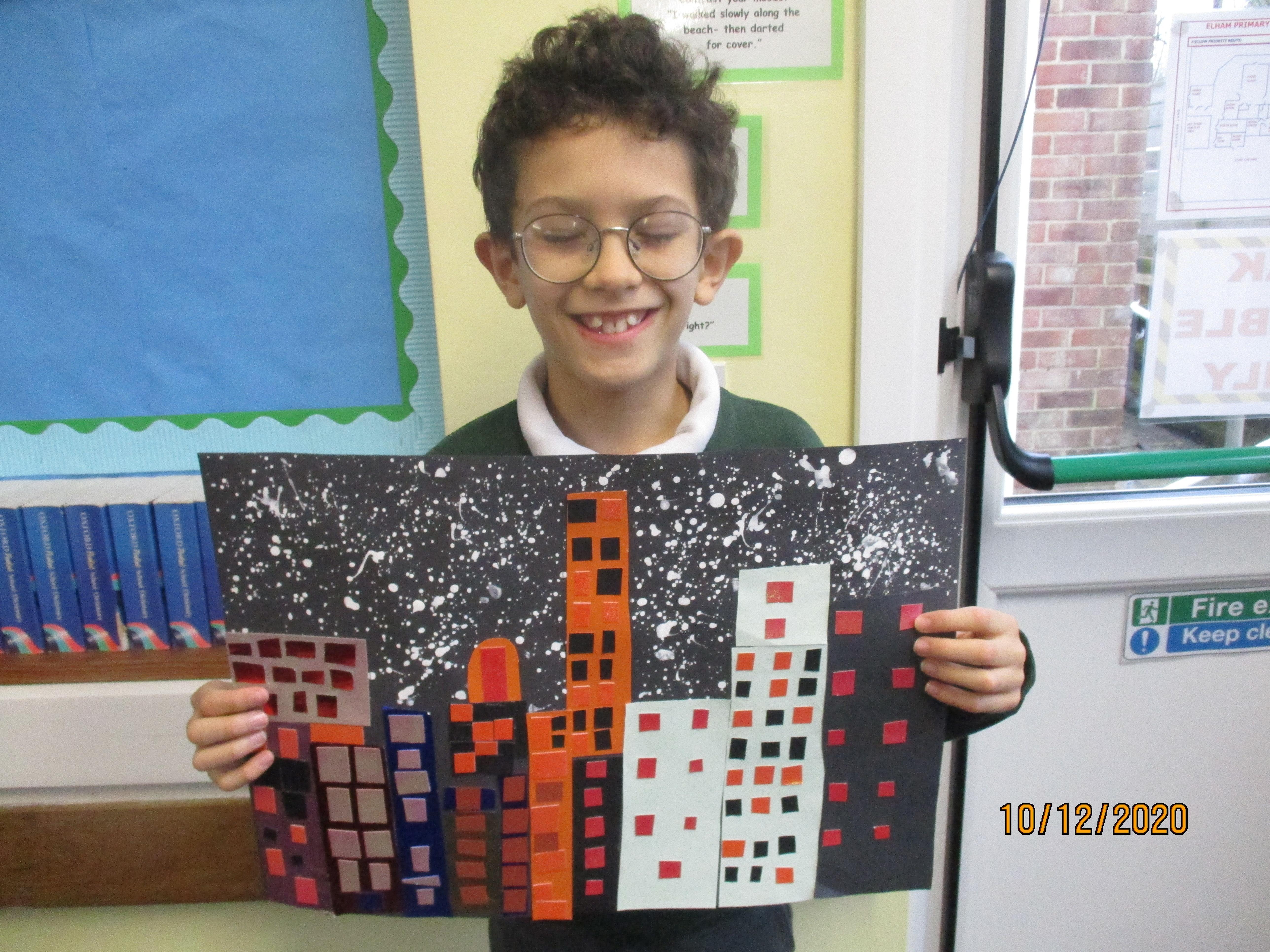 We have created some amazing artwork for Mrs Short. Our pictures are of winter cityscapes with snowy backgrounds. It's the first time we have tried these and they have turned out really well. Below you will see some photos of us at work, as well as our completed artworks which are now up on display in class.