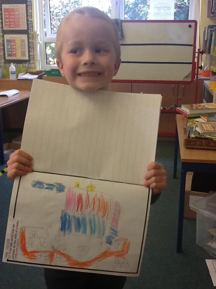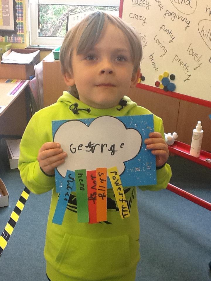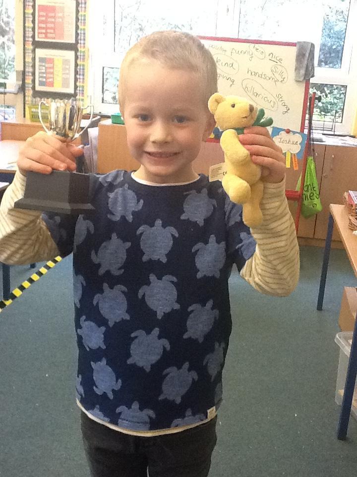 This week's 'star of the week' is George. You have had a fantastic week George. You really impressed us with your independent writing of the title and opening of your story in English. In maths, you persevered with 10's and 1's and remembered to count on from 10. Well done George - what a great week!