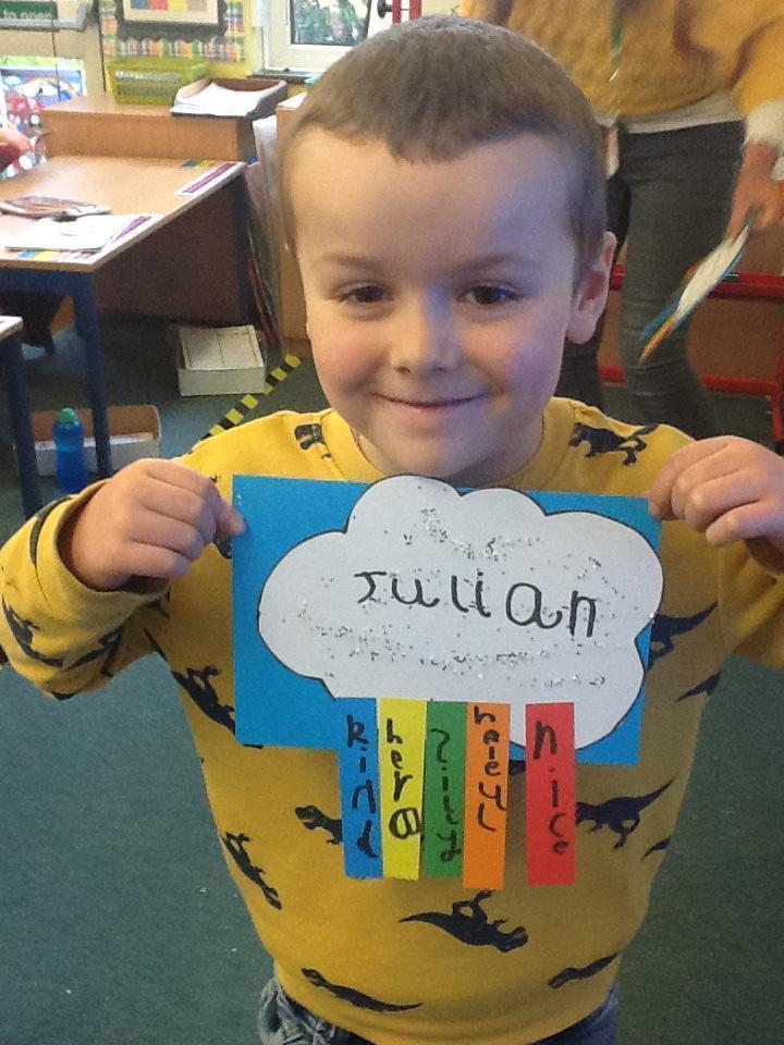 The children then made kindness rainbows about other children in the class and teachers. We also made one for Mr File!