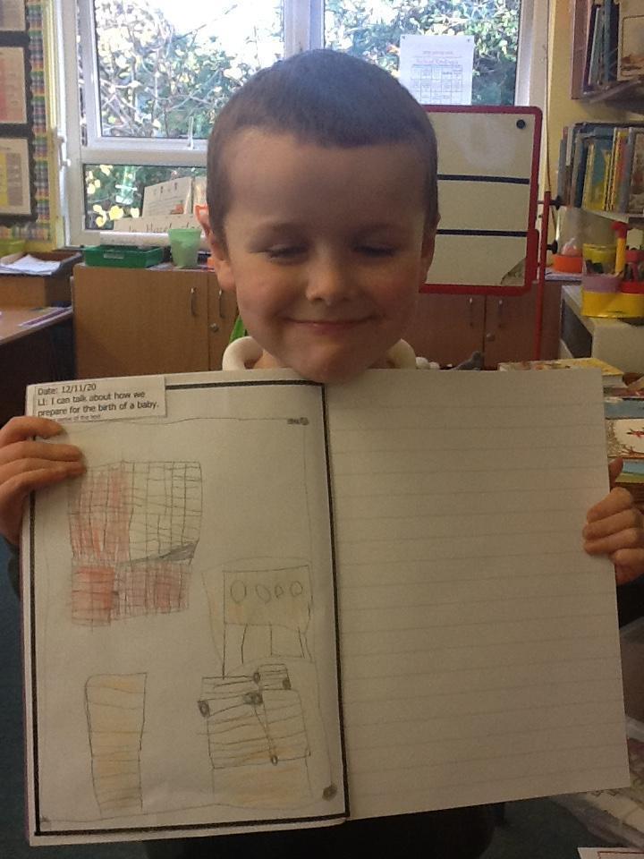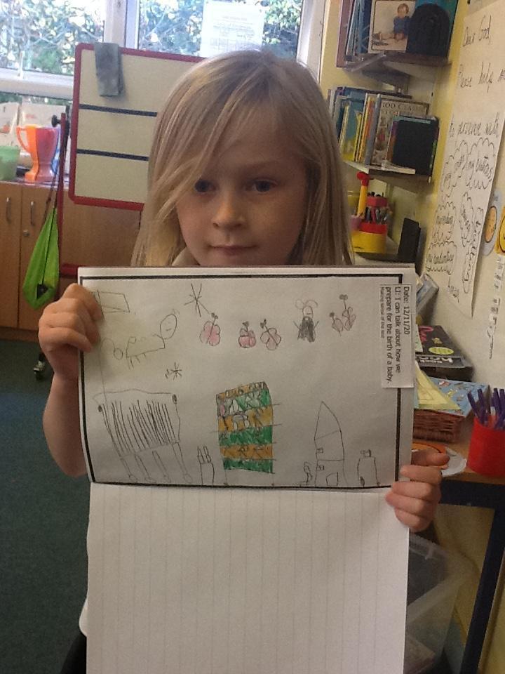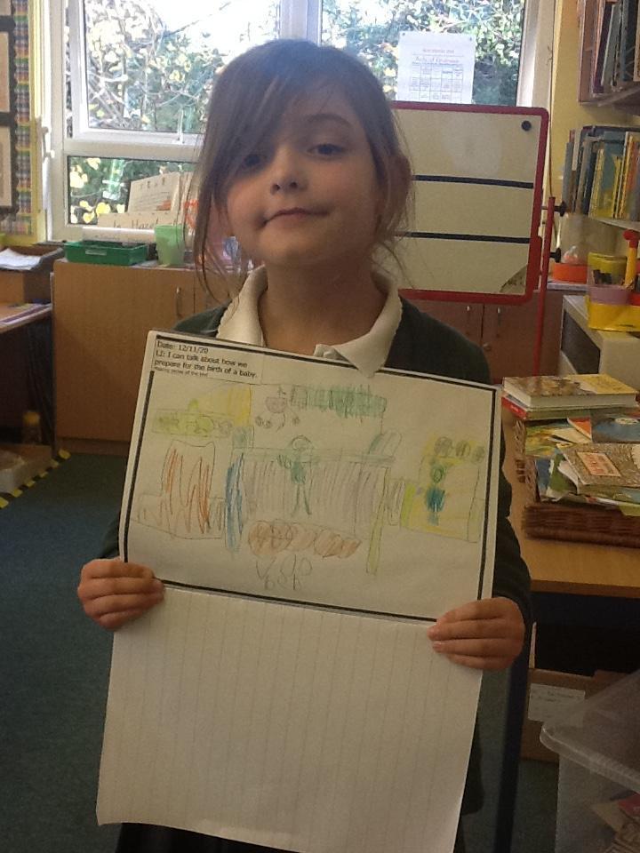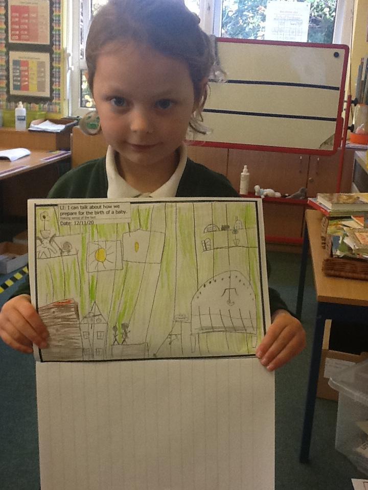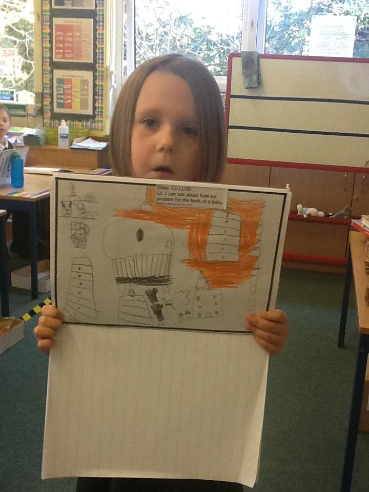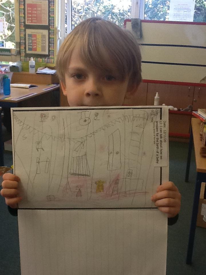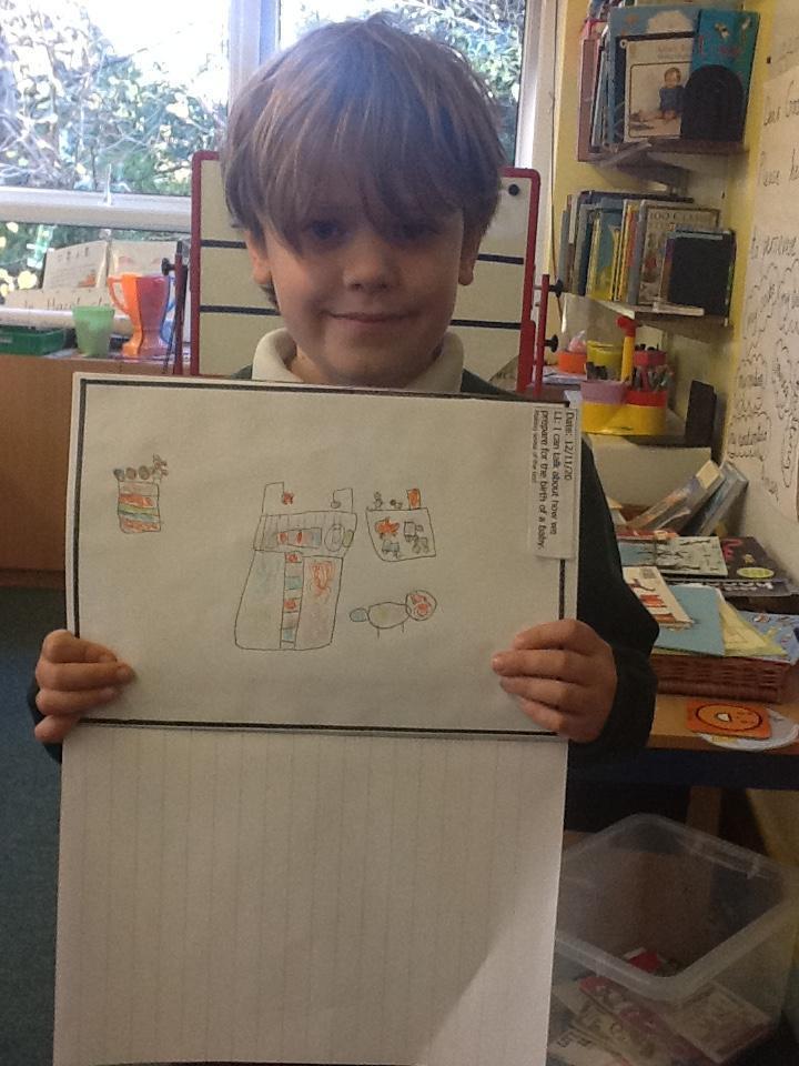 We found out in our class who has younger brothers and sisters and then talked about the things we would need to put in a bedroom for a new baby. The children's pictures were amazing!