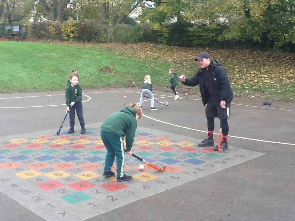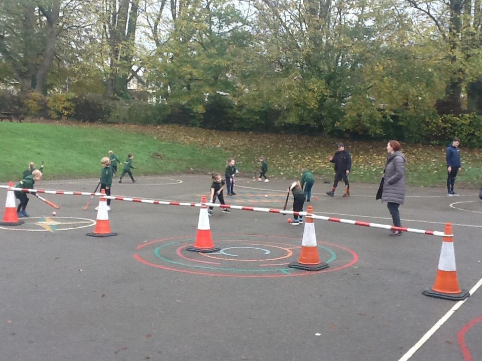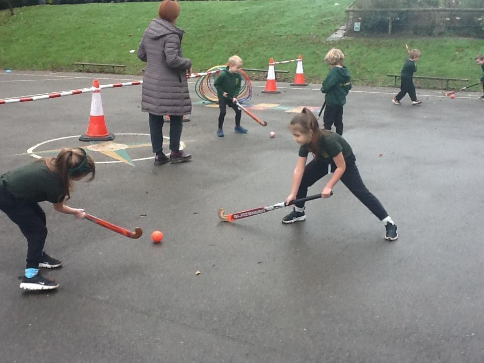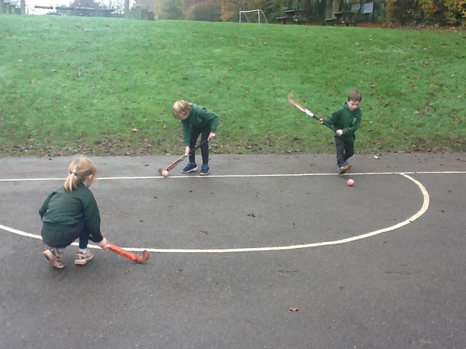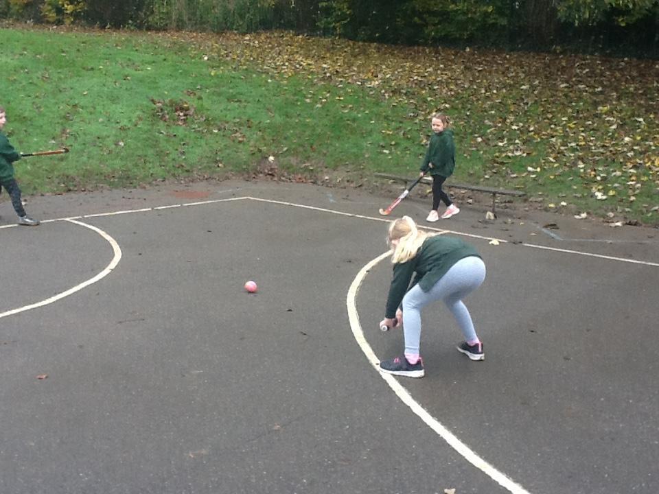 This term we are learning to play hockey. Today we learned to pass and stop the ball holding our hockey sticks correctly.