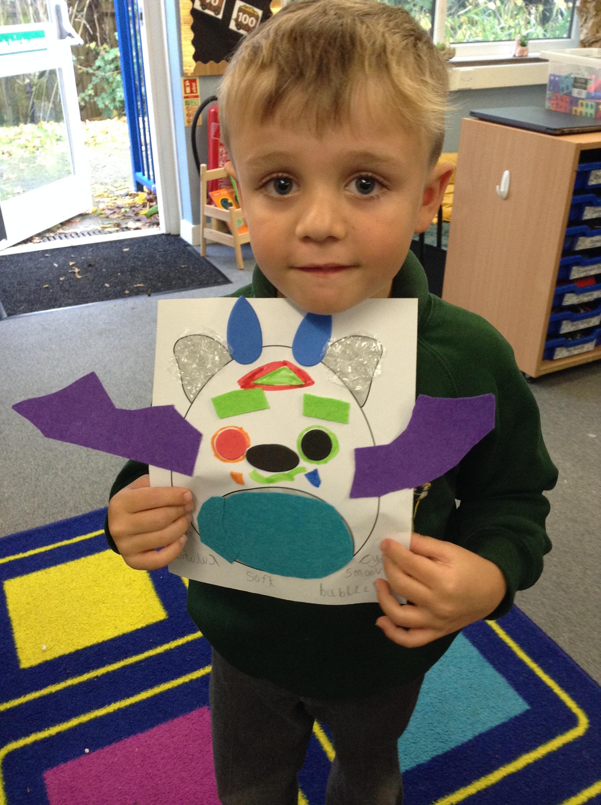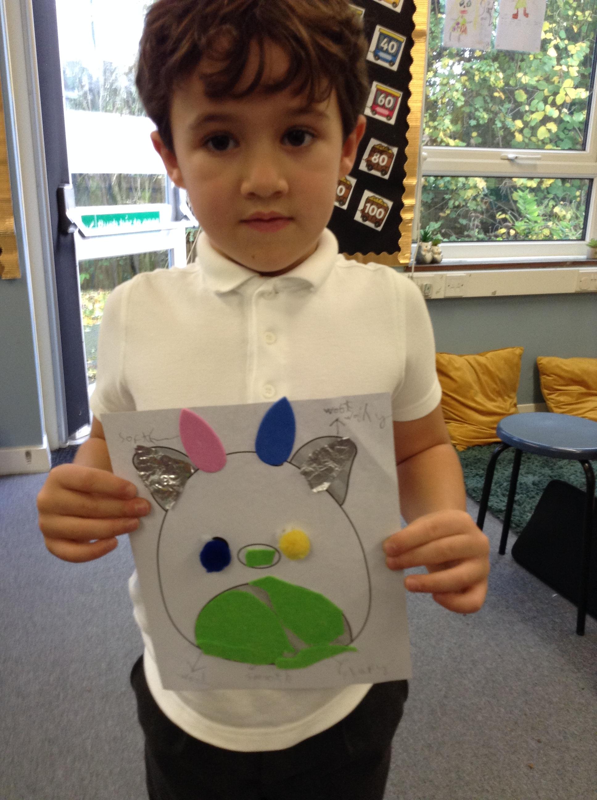 Today we have been looking at properties of materials. The children were asked to design a feely toy with different textures that a baby could touch. It was great to hear the reasoning why certain materials had been used, all children were able to describe the properties of their chosen materials.