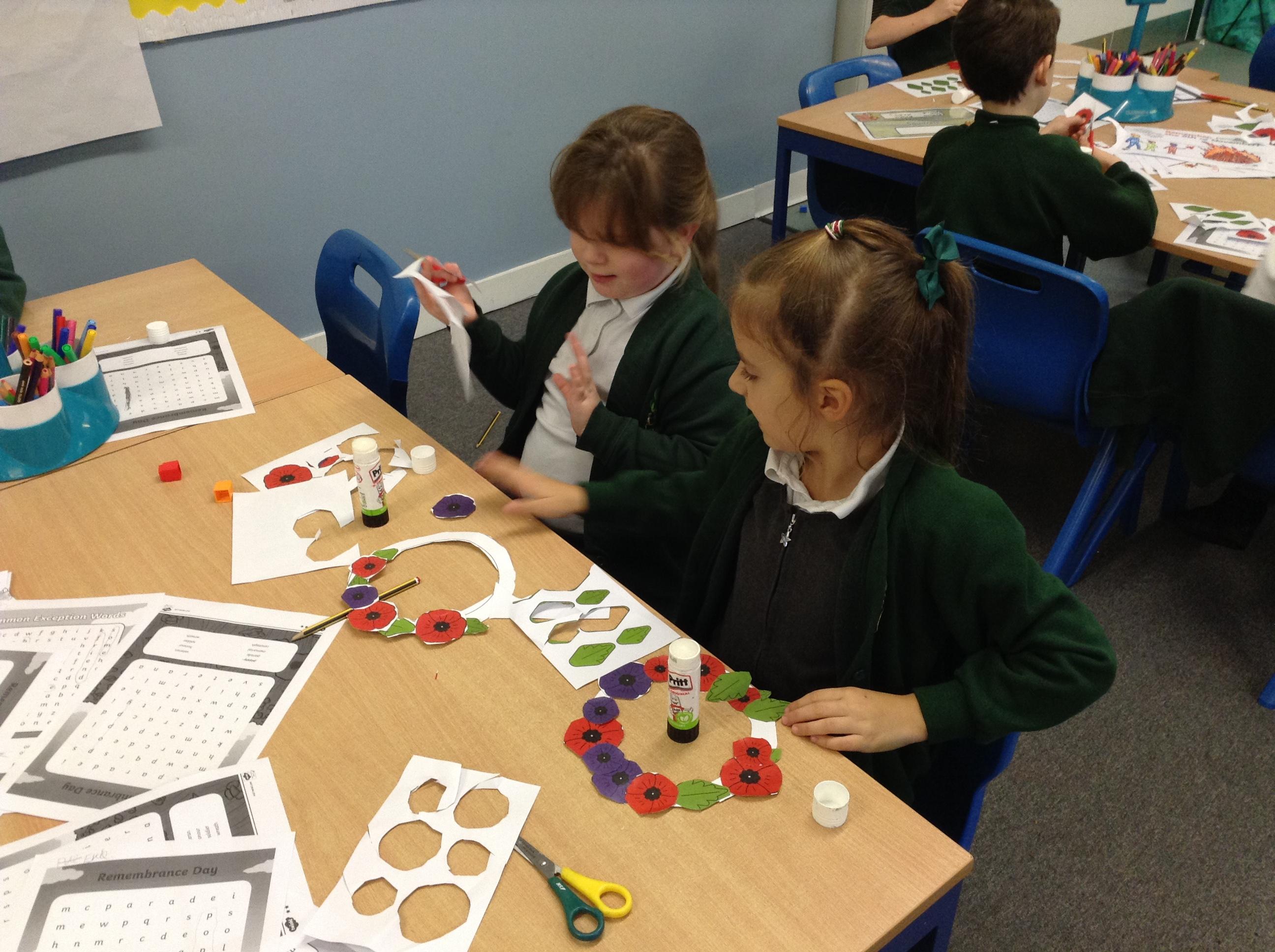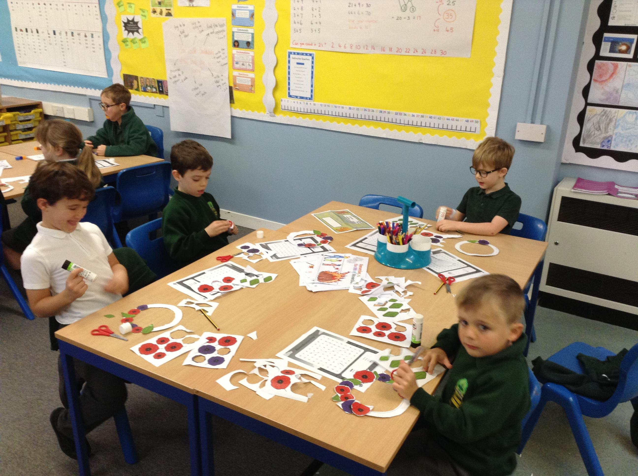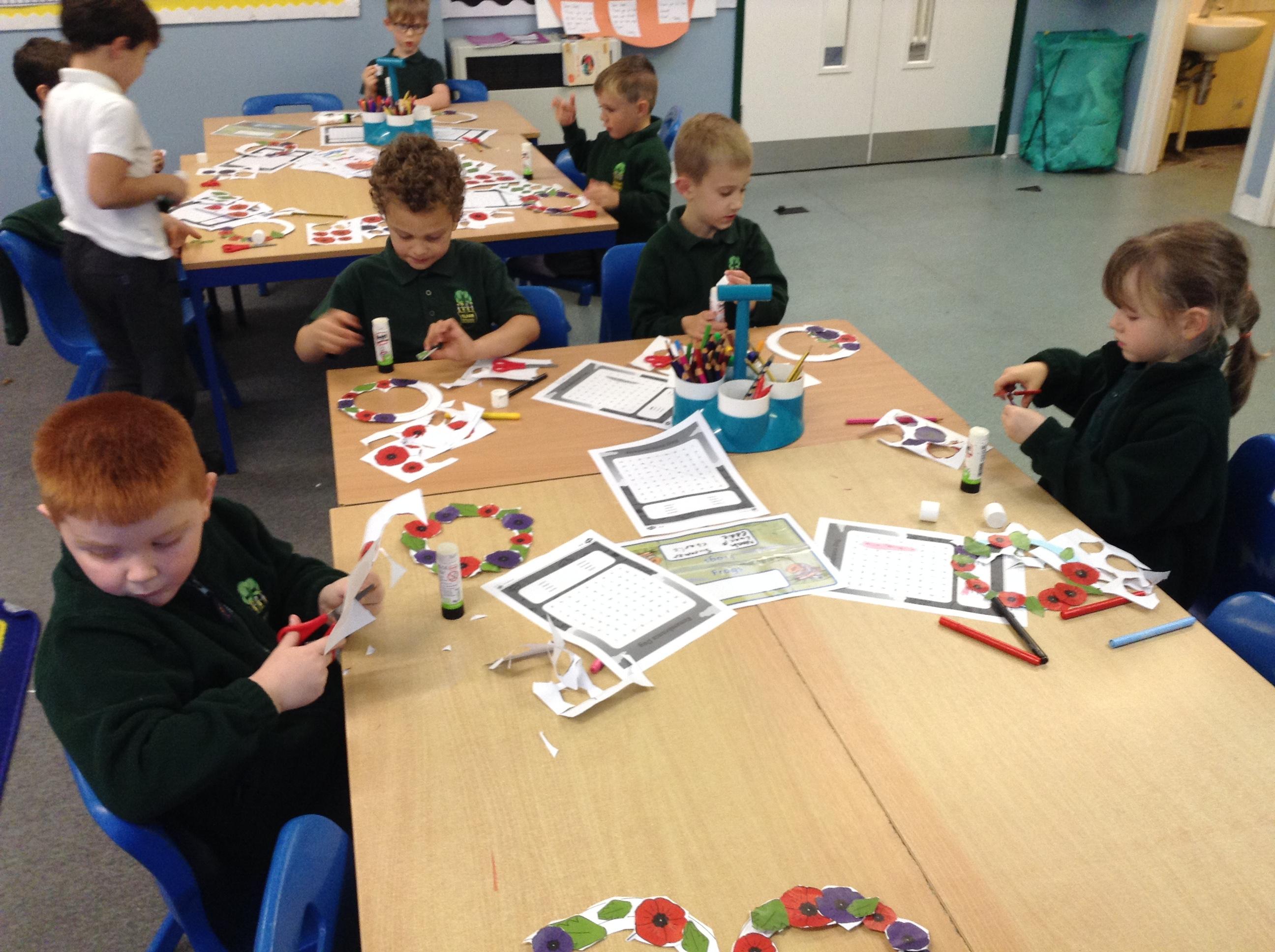 Remembrance Day: On Tuesday we spent a lesson considering the meaning of Remembrance Day. We held a whole school 2 minute silence on the playground at 11am and in Potter Class the children enjoyed making poppy wreaths.