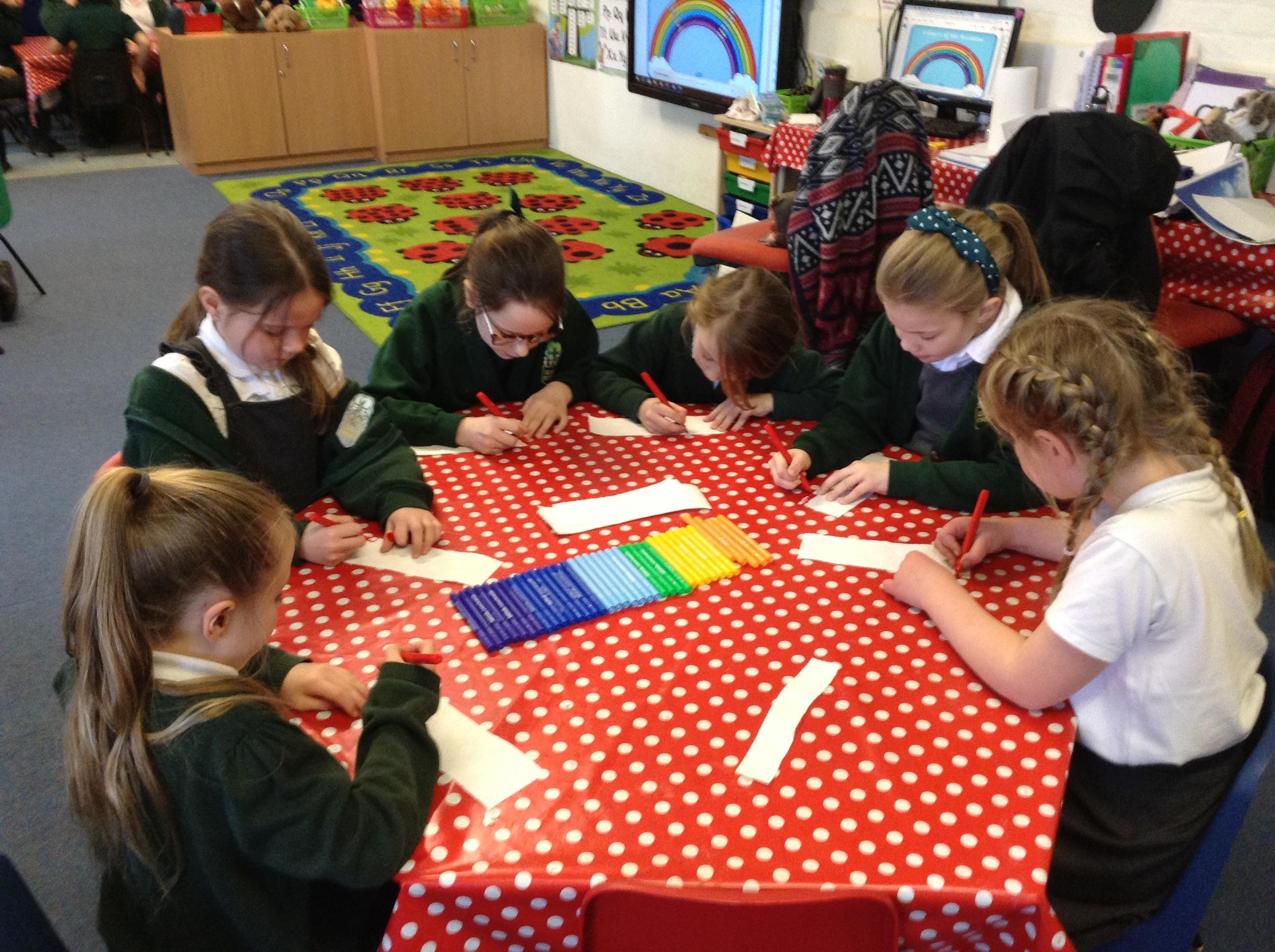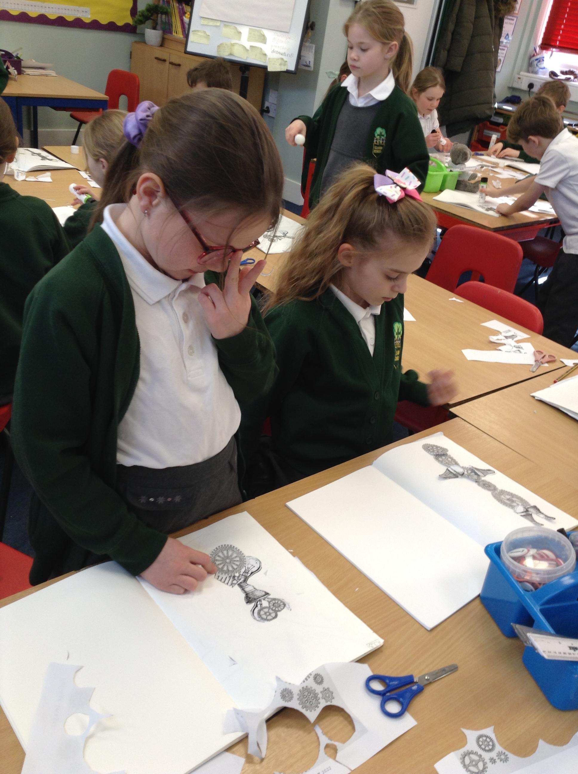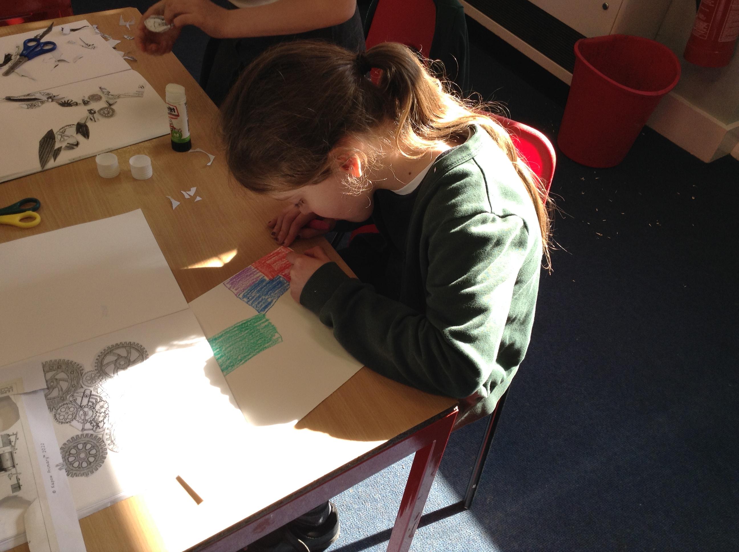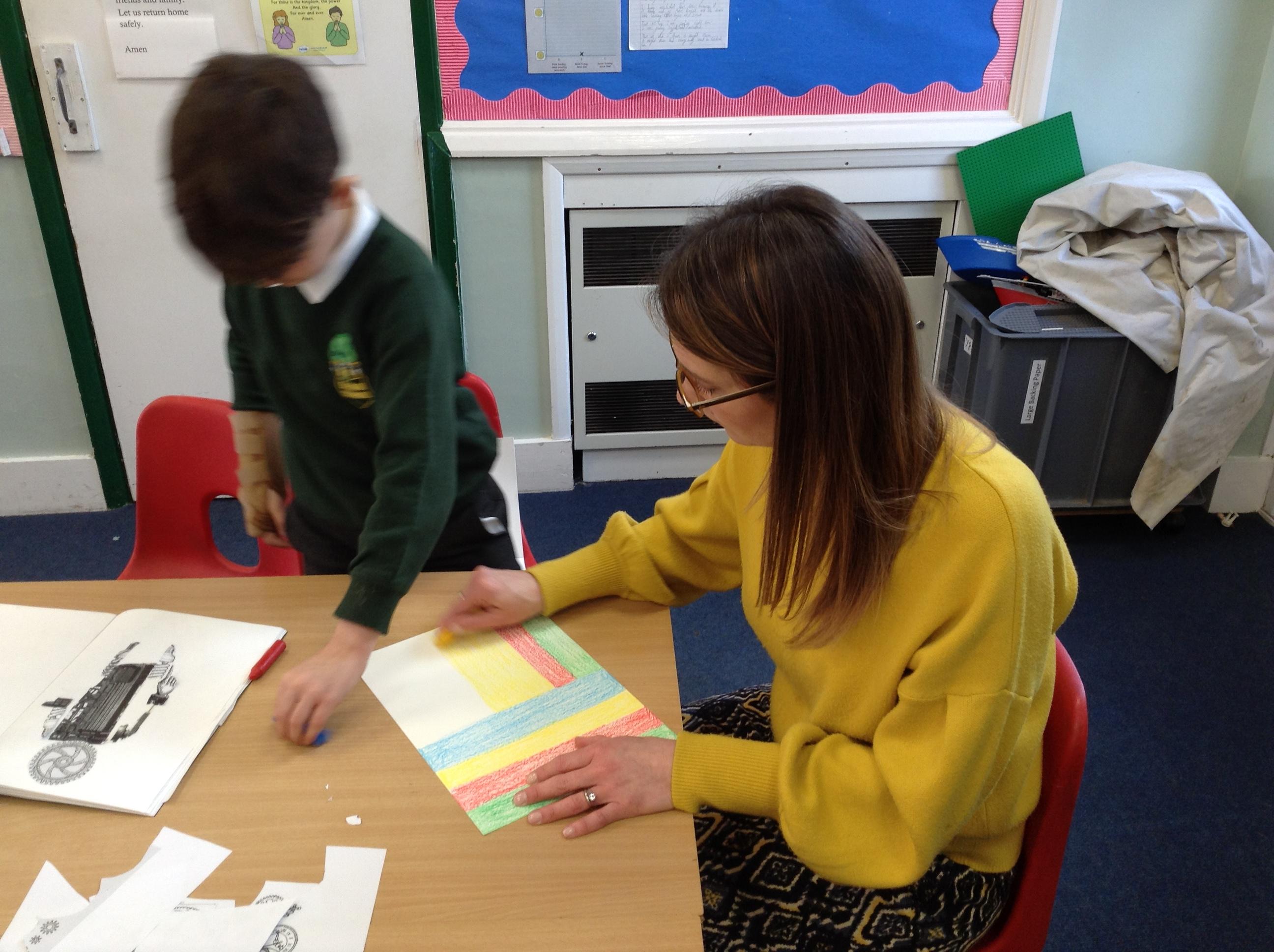 They then prepared a piece of card covered in wax crayon – to be continued next week!