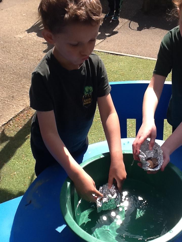 Tin foil seems to be a good material for a boat because it is waterproof. However, it is also very delicate and not that strong if you fill your boat with 2p coins!
