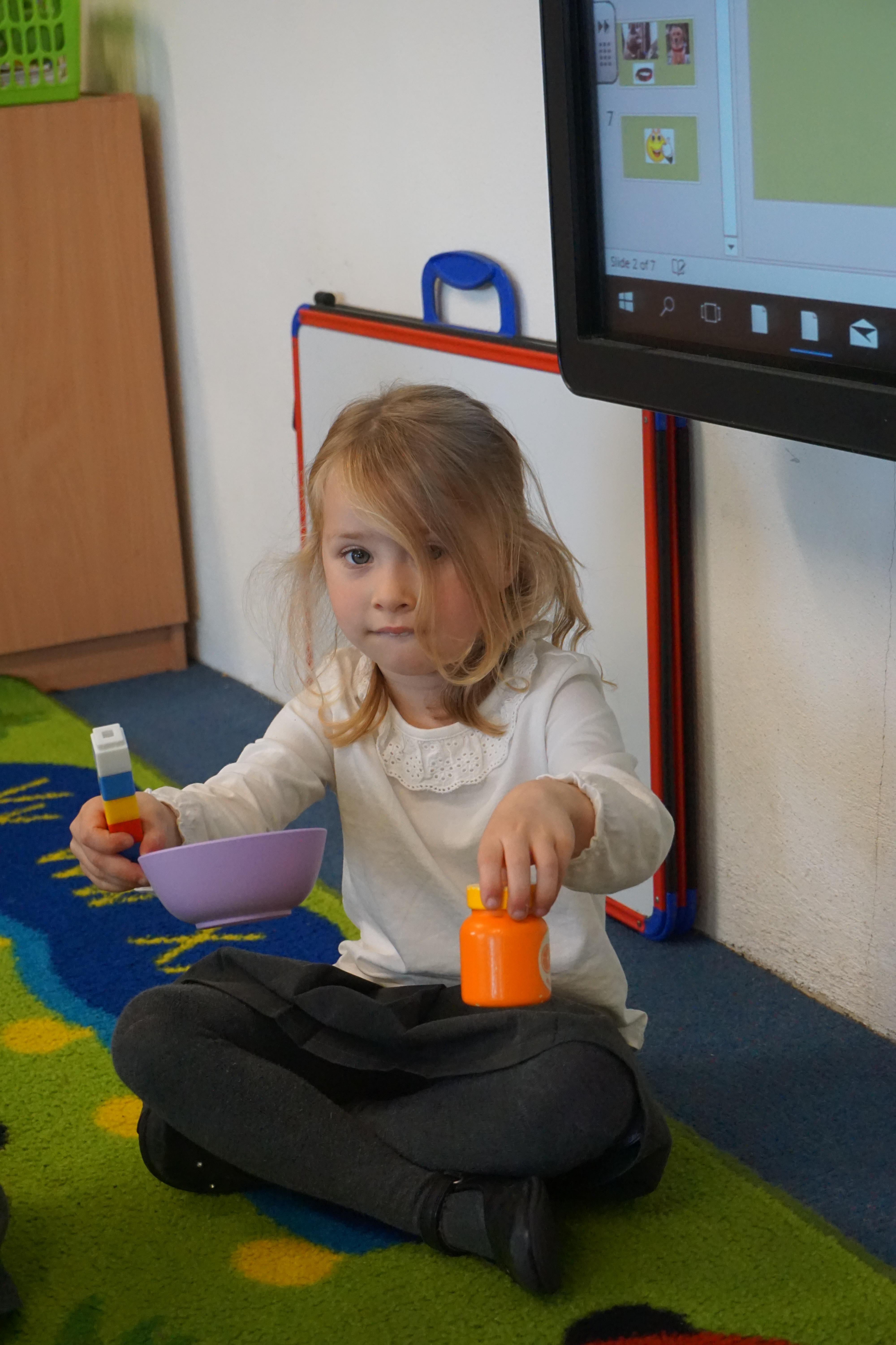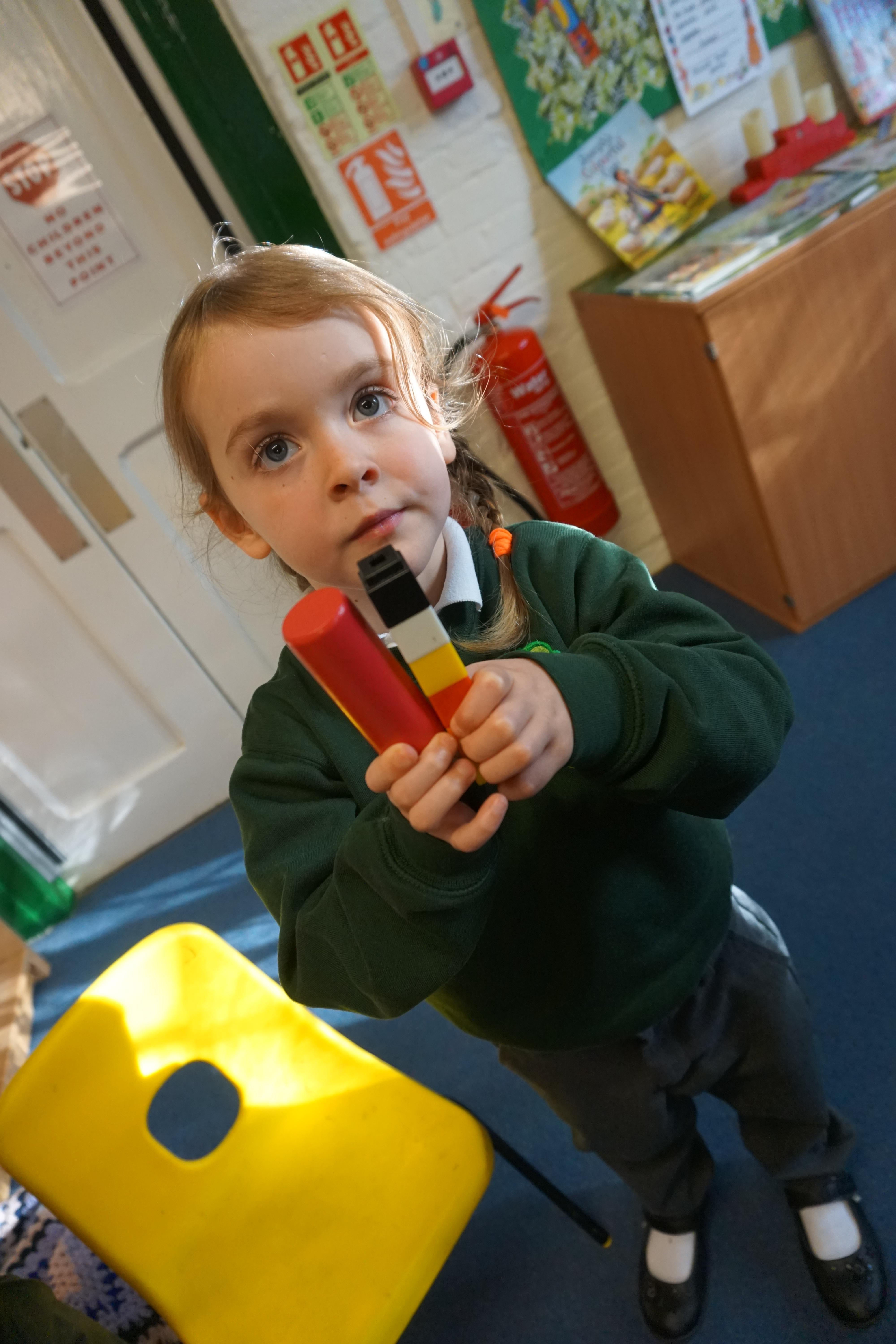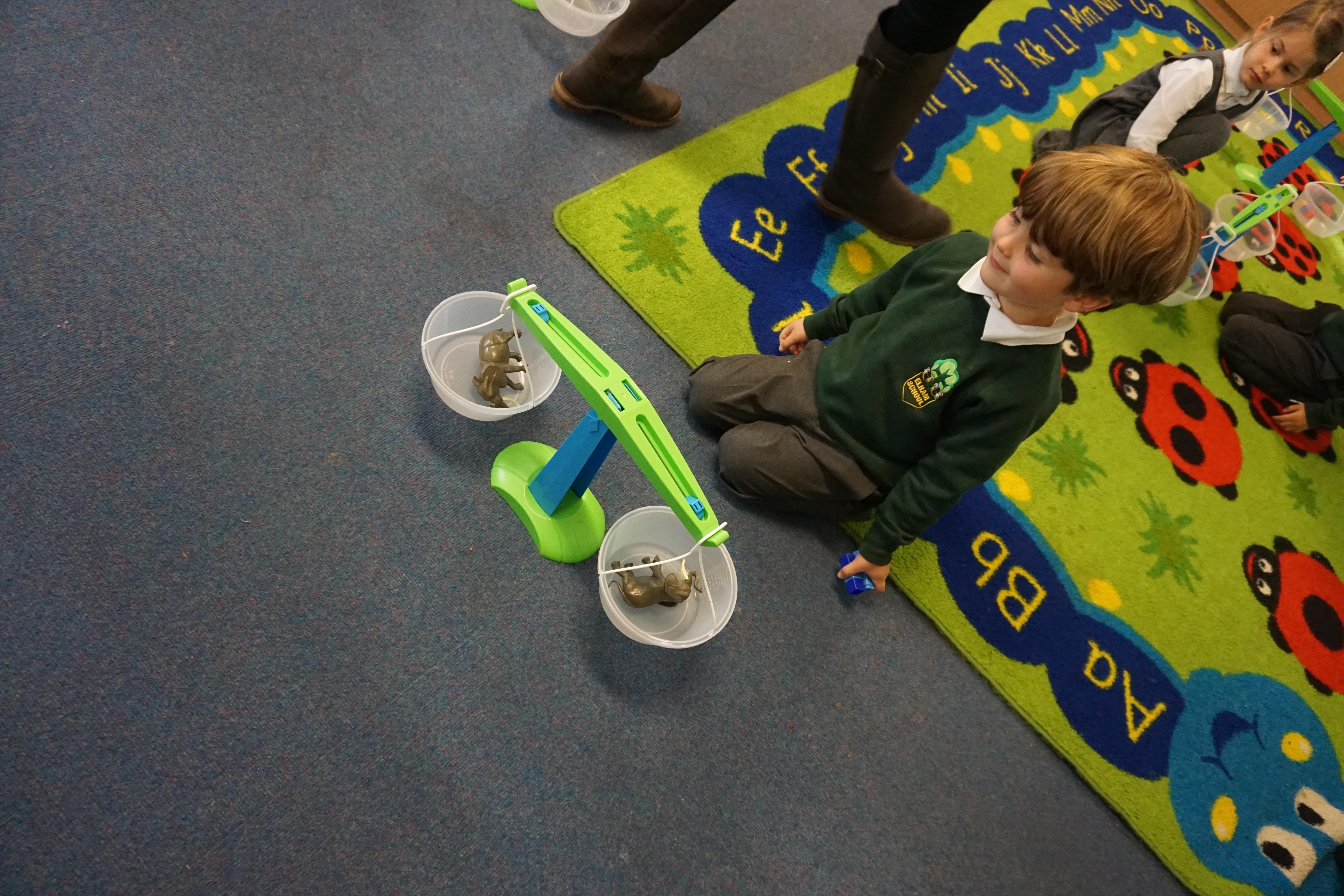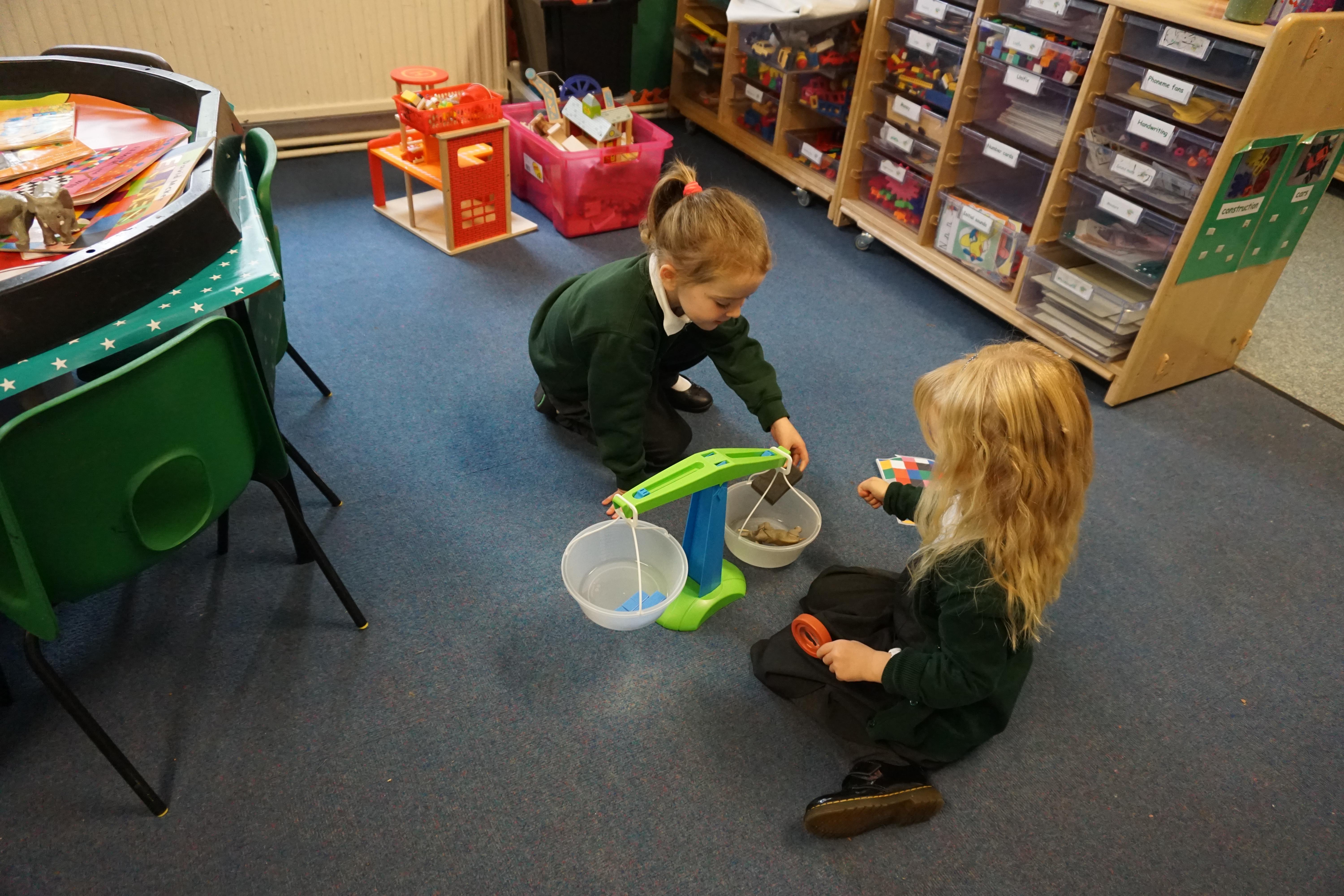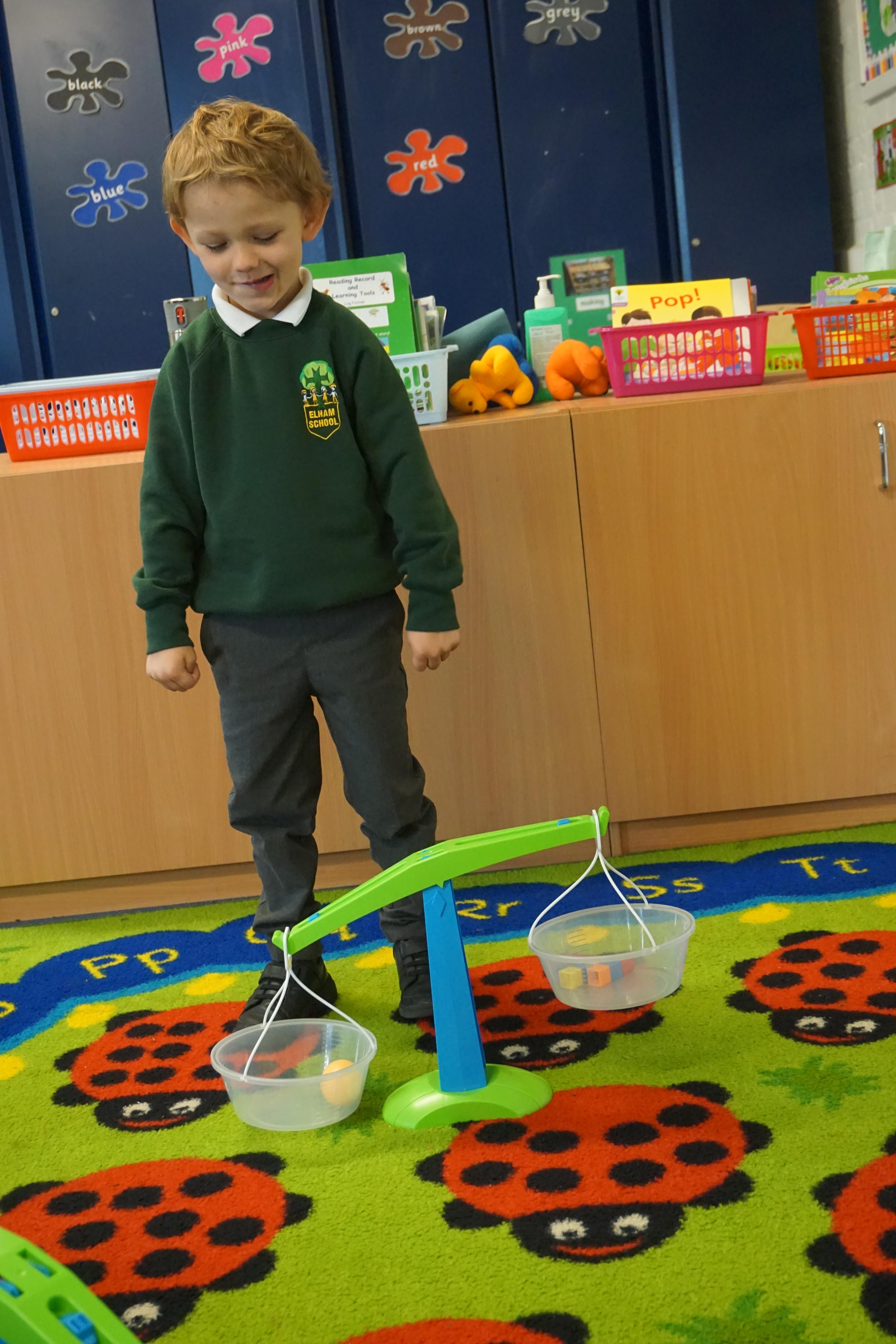 In our maths we looked for objects longer and shorter and got the scales out and did some weighing thinking about the language we should use.
