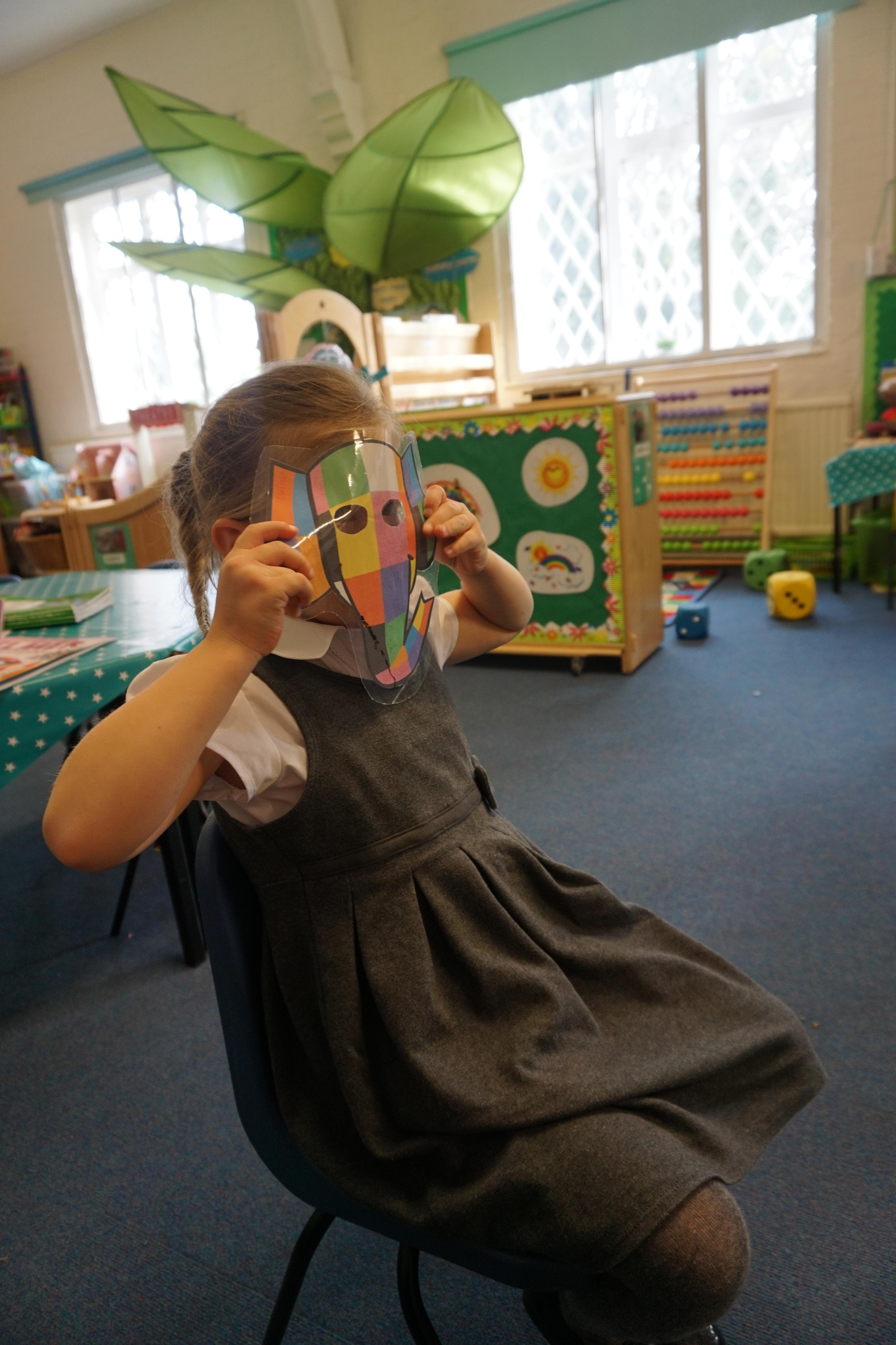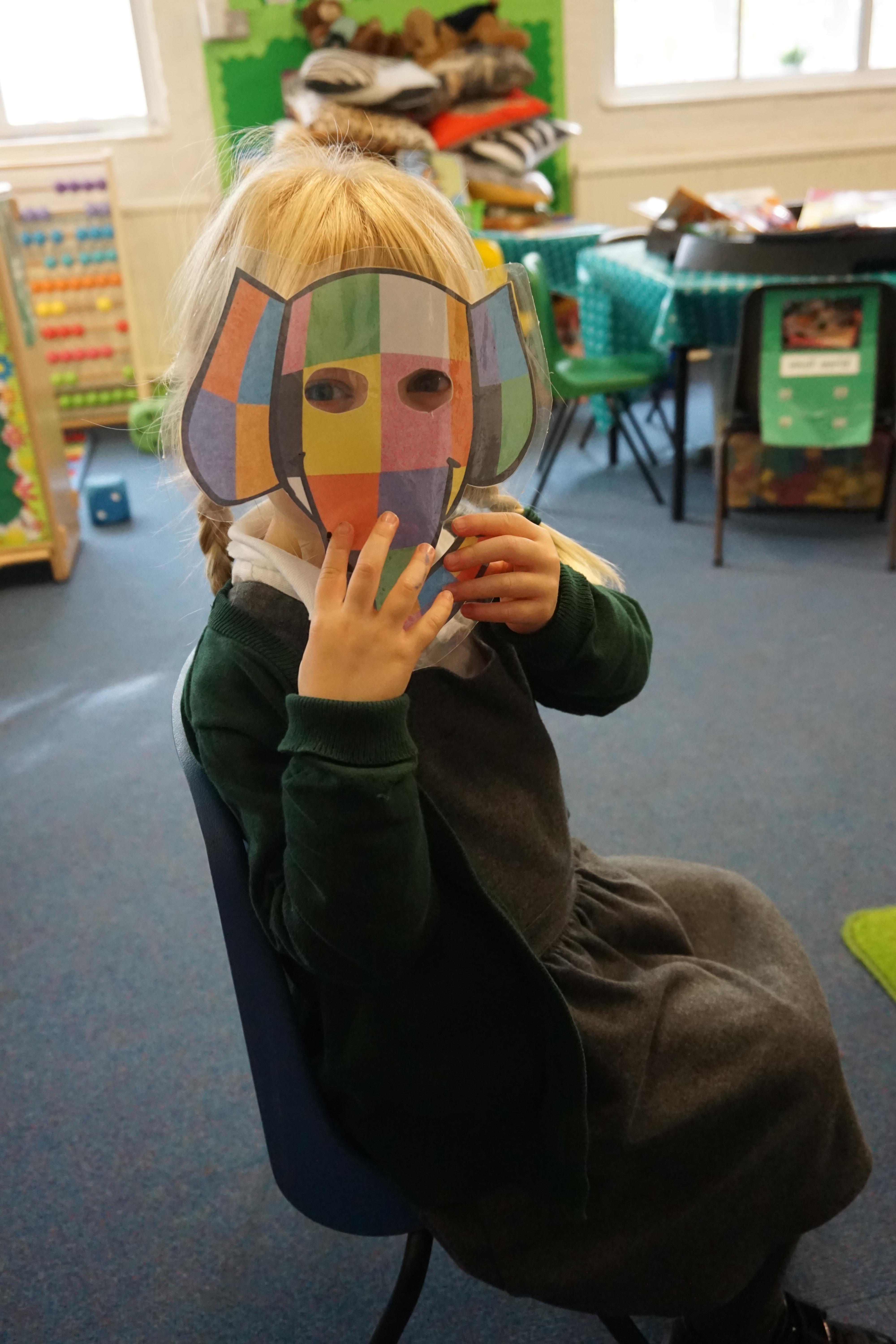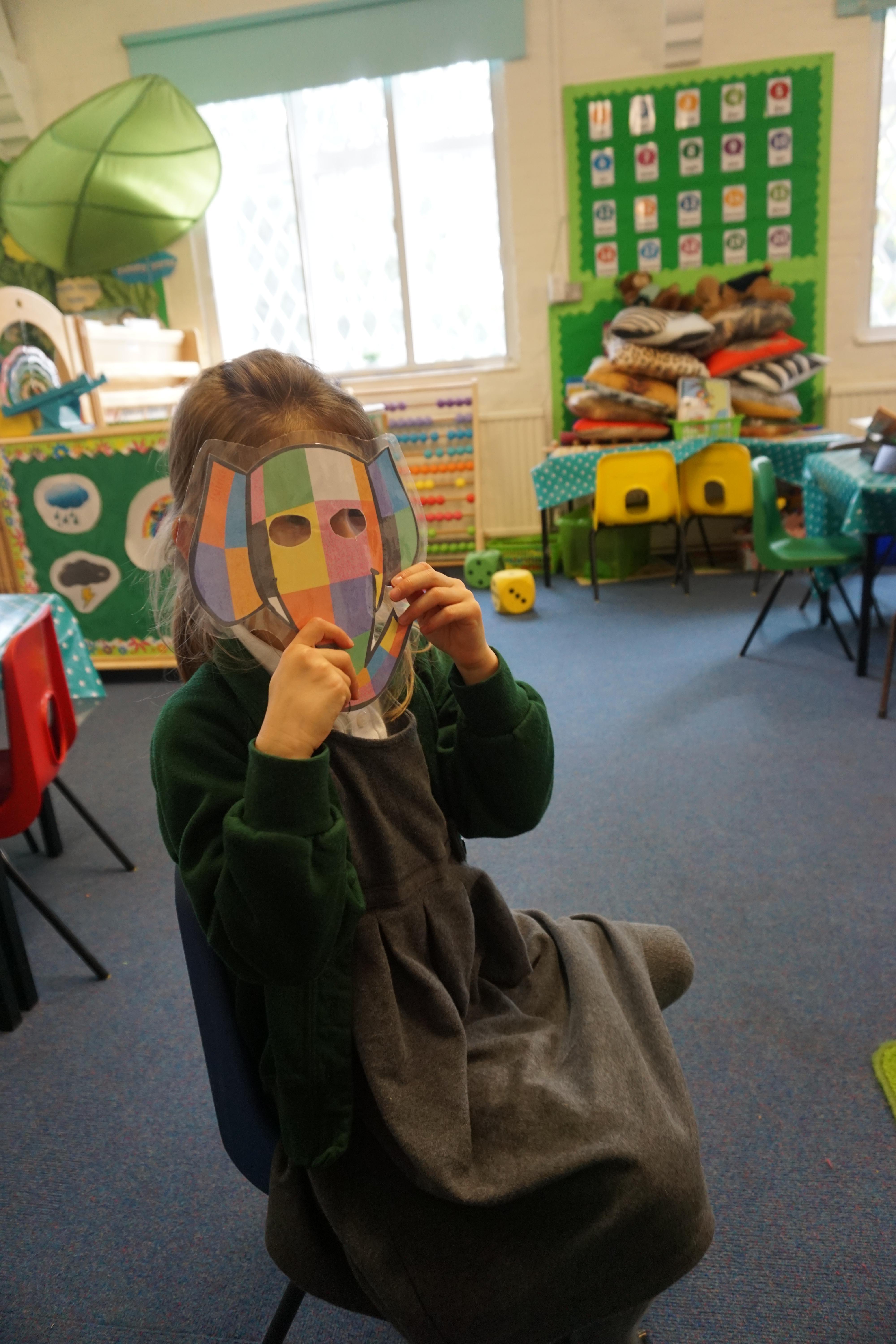 We have used the Elmer story as a fantastic basis for our learning again this week. During our Child Initiated learning the children are now making the most of our class resources having spent the last few weeks exploring what we have. Billy made some super dinosaurs out of the duplo and Alec and Ewan made a fab car tunnel out of a tube, while dressed as bees. We did some 'hot seating' where some of the children played the role of Elmer and the others asked questions.