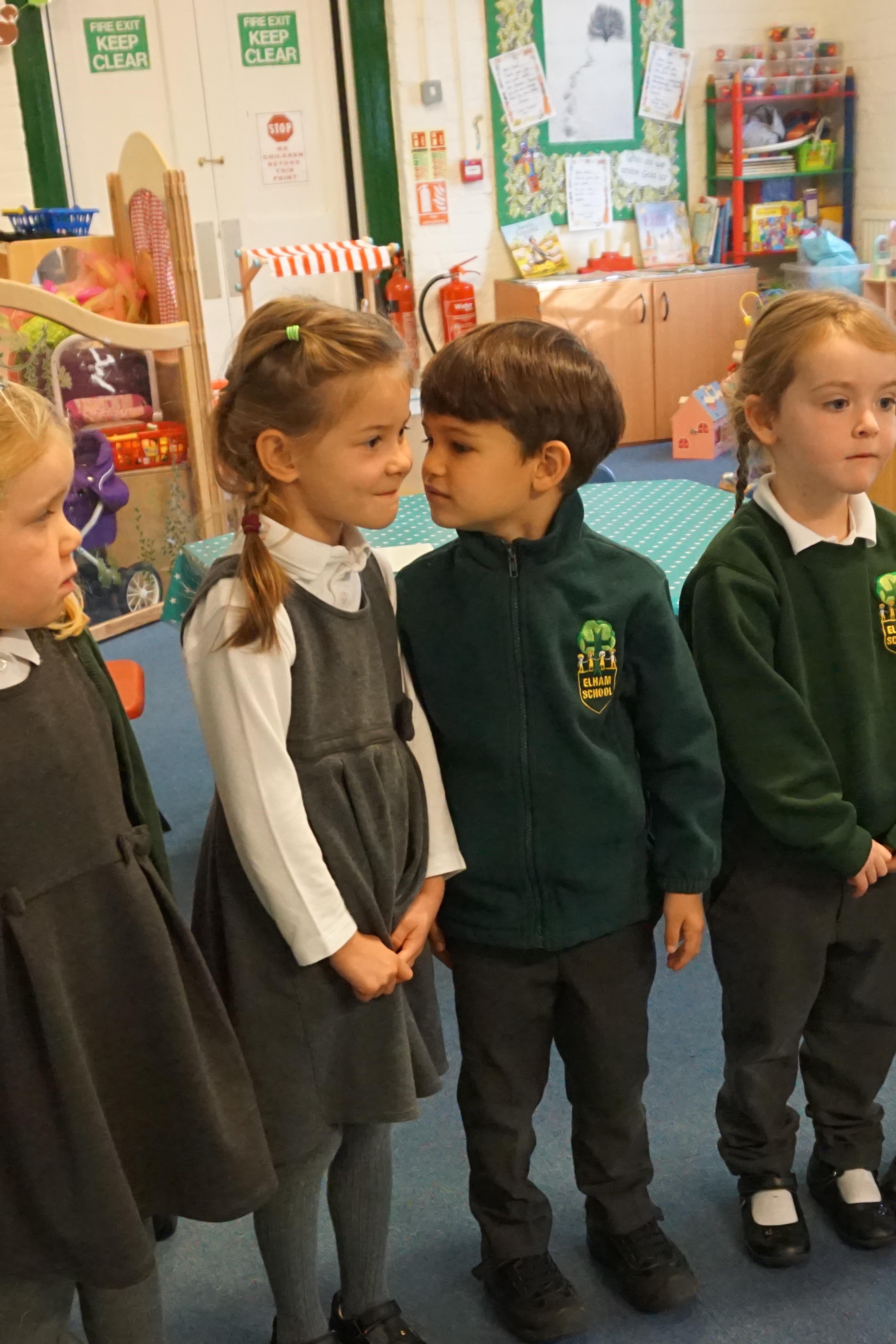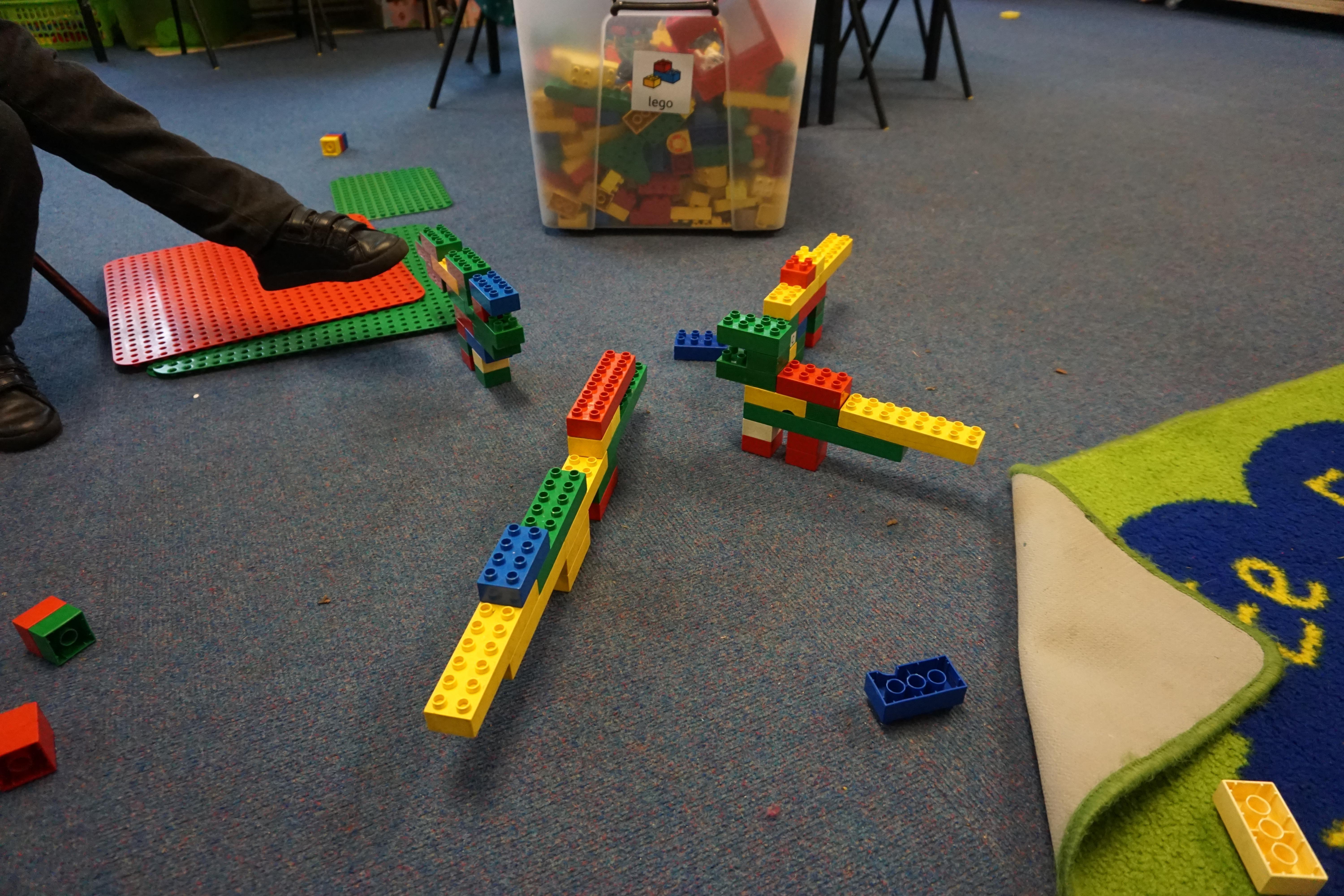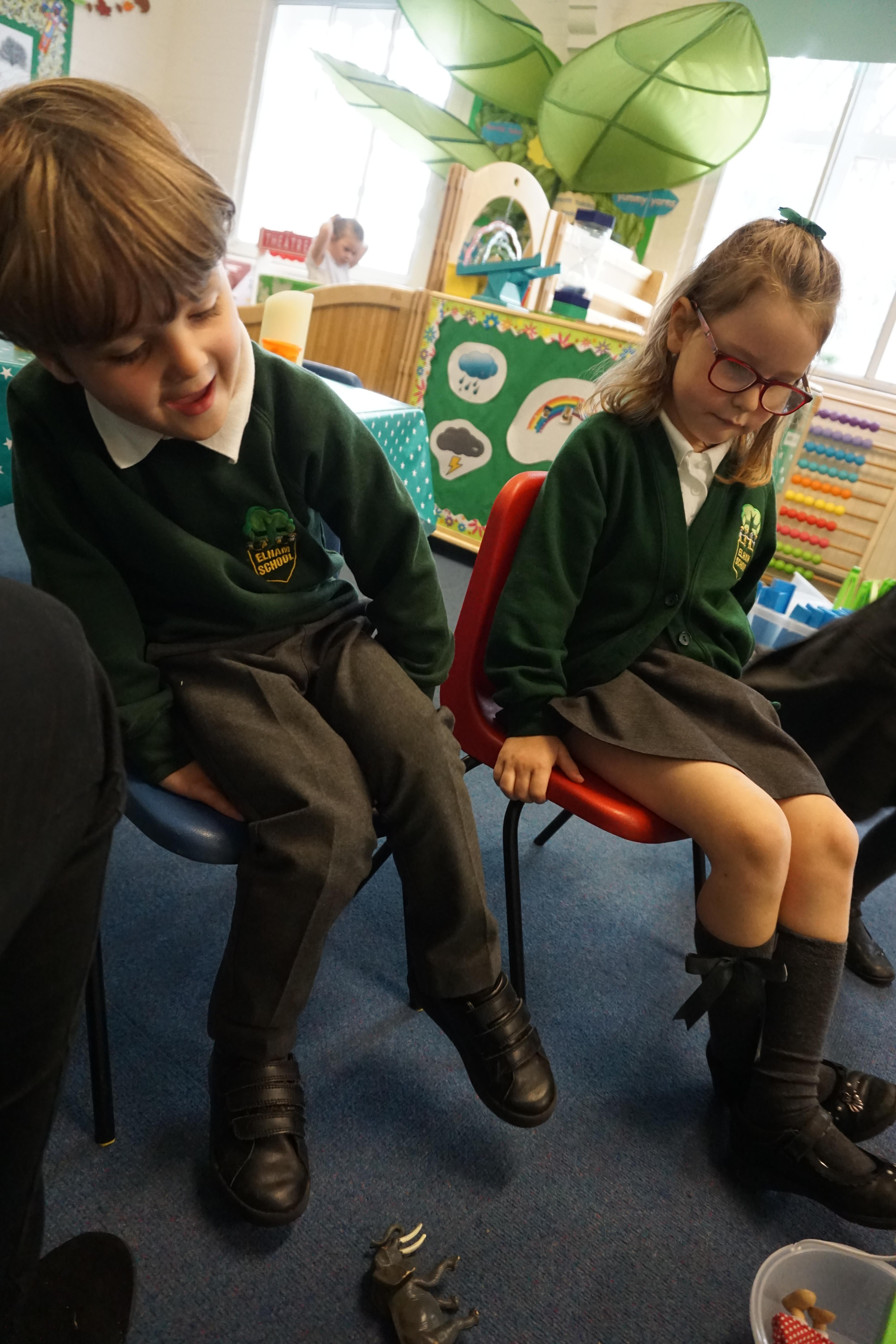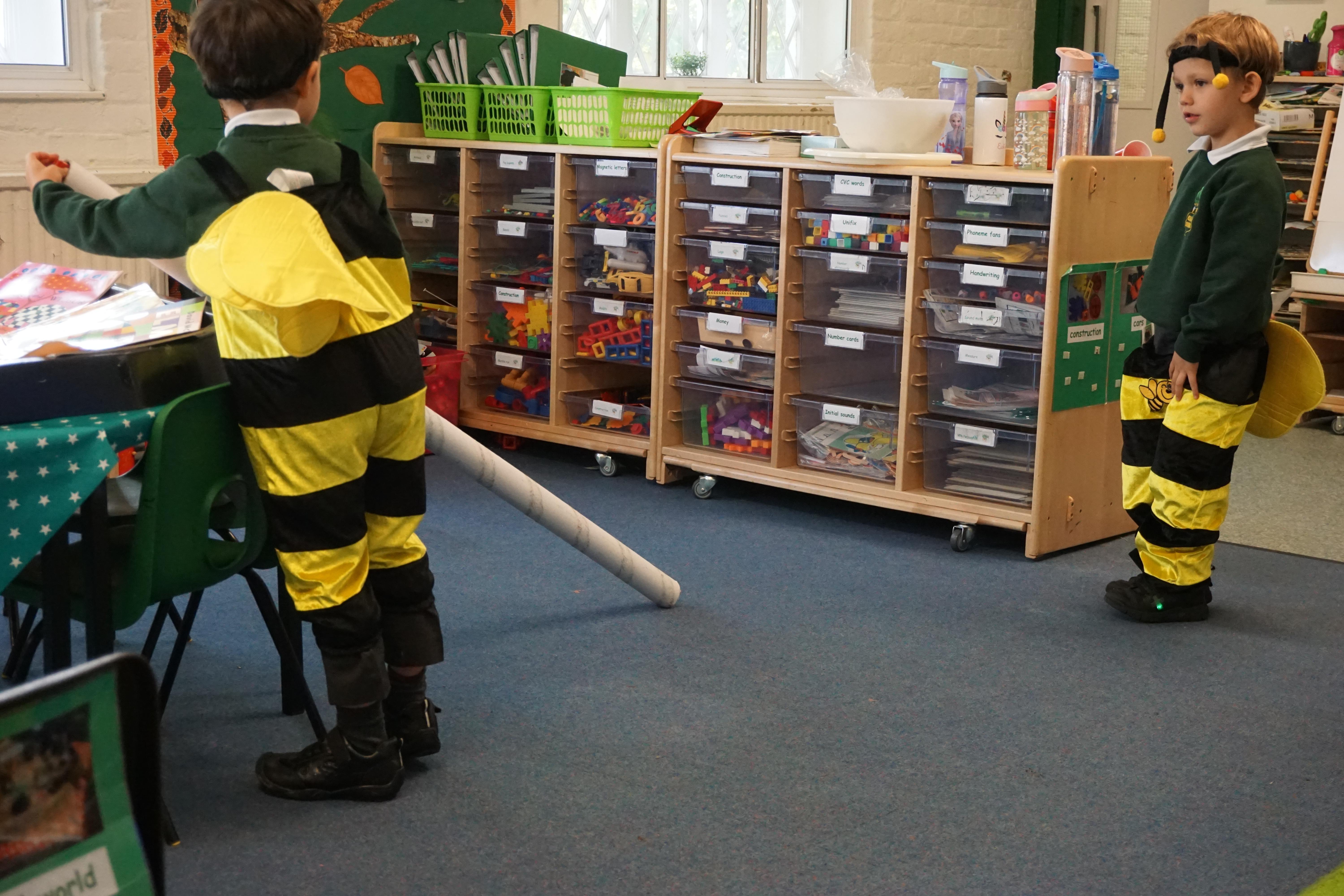We have used the Elmer story as a fantastic basis for our learning again this week. During our Child Initiated learning the children are now making the most of our class resources having spent the last few weeks exploring what we have. Billy made some super dinosaurs out of the duplo and Alec and Ewan made a fab car tunnel out of a tube, while dressed as bees. We did some 'hot seating' where some of the children played the role of Elmer and the others asked questions.