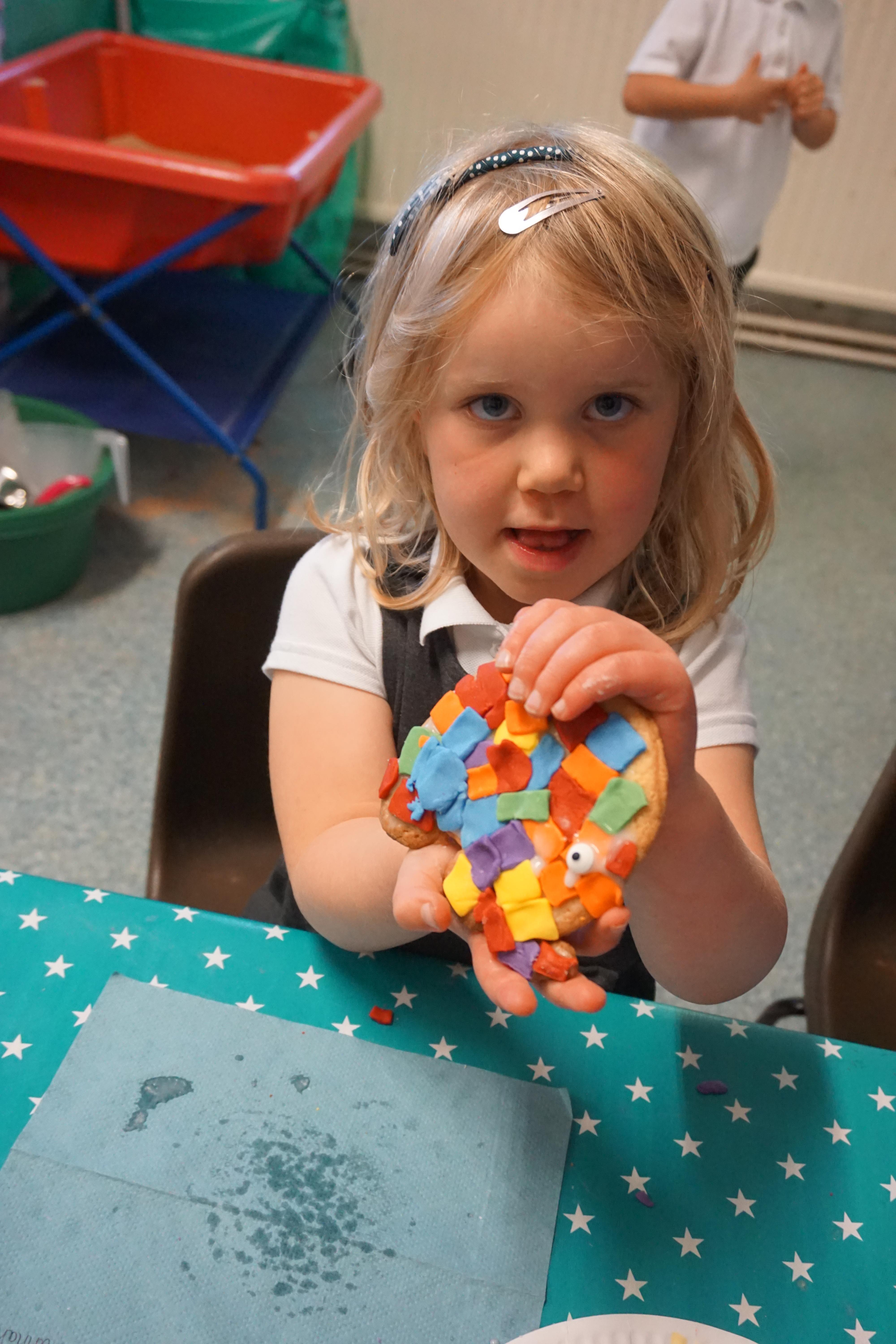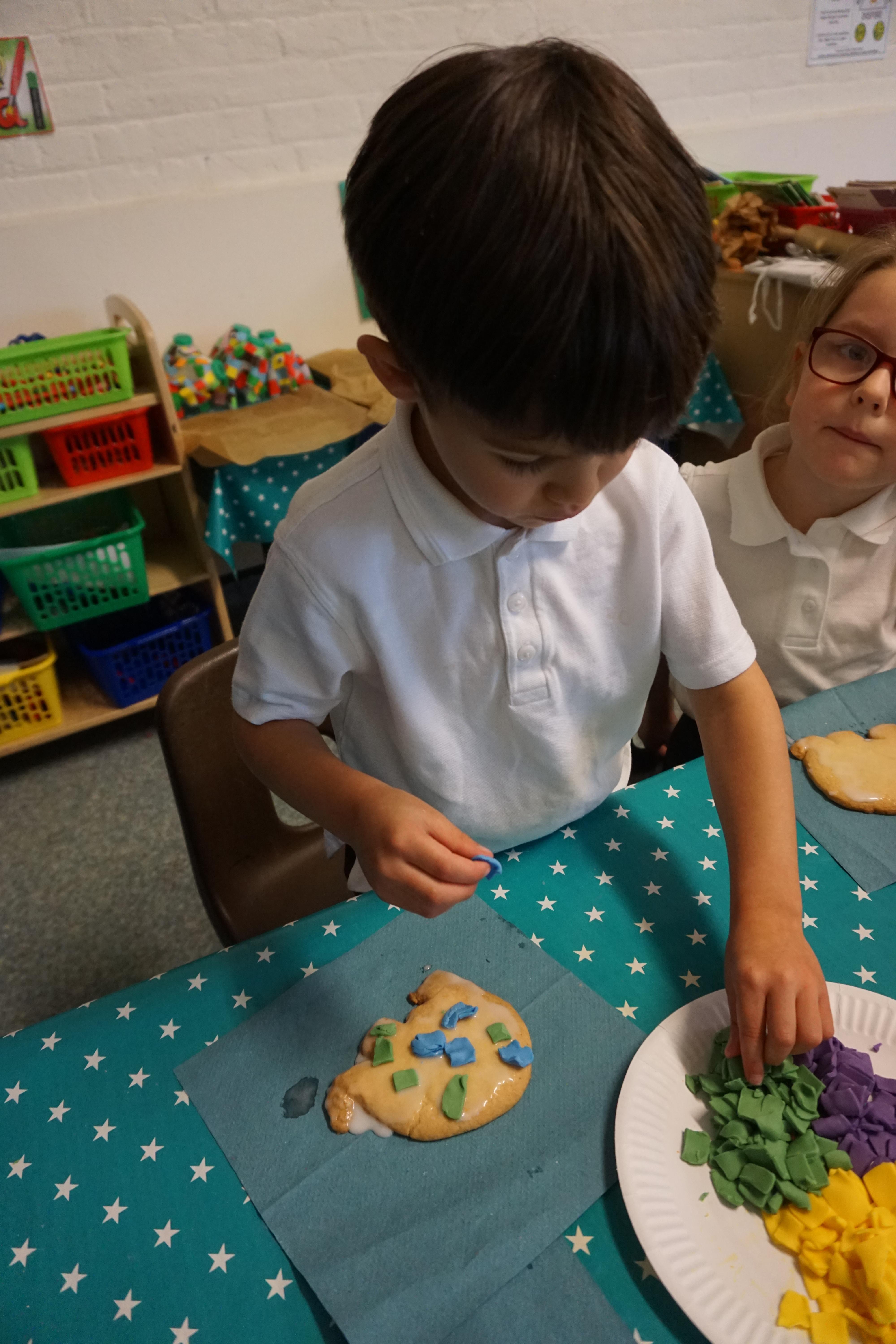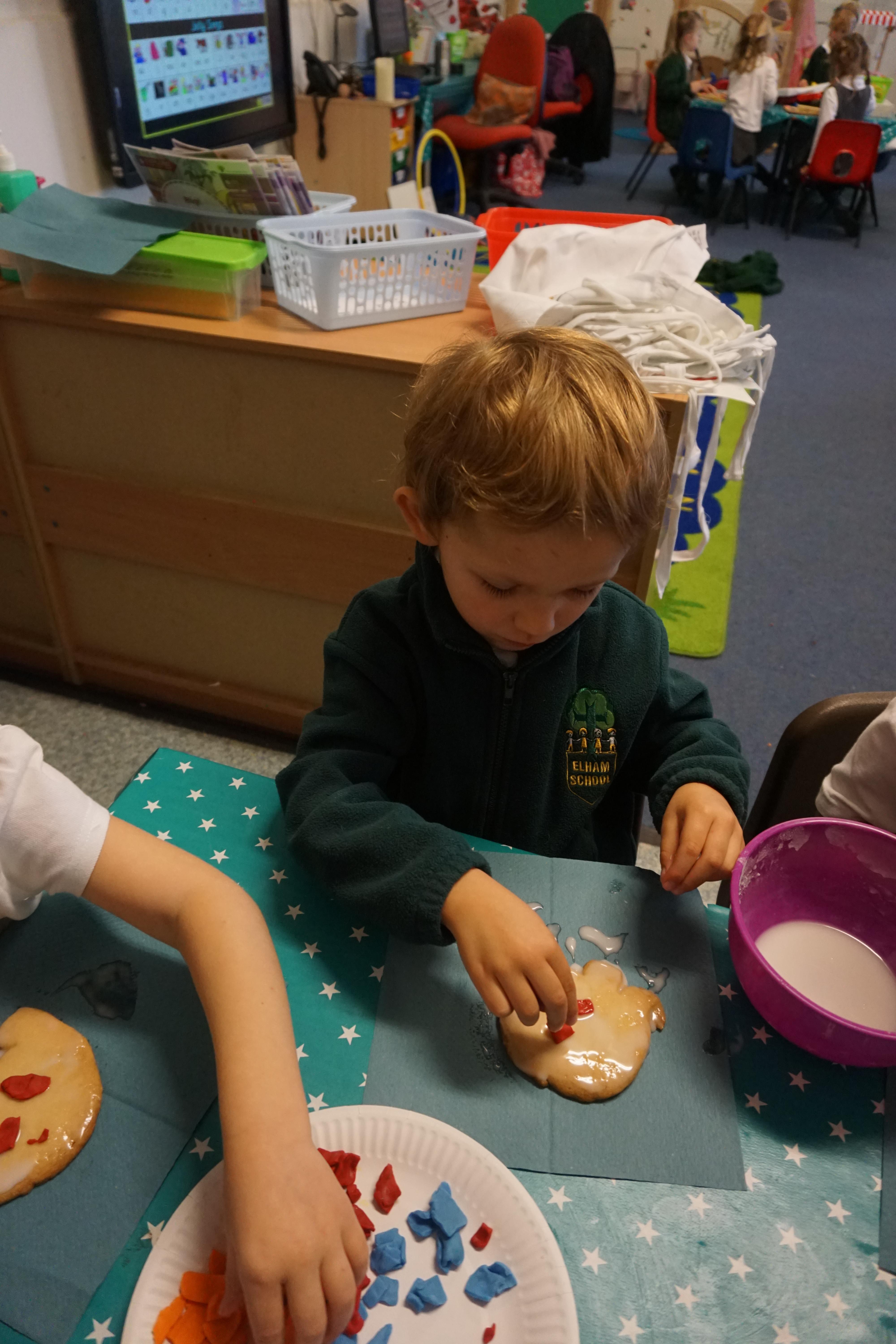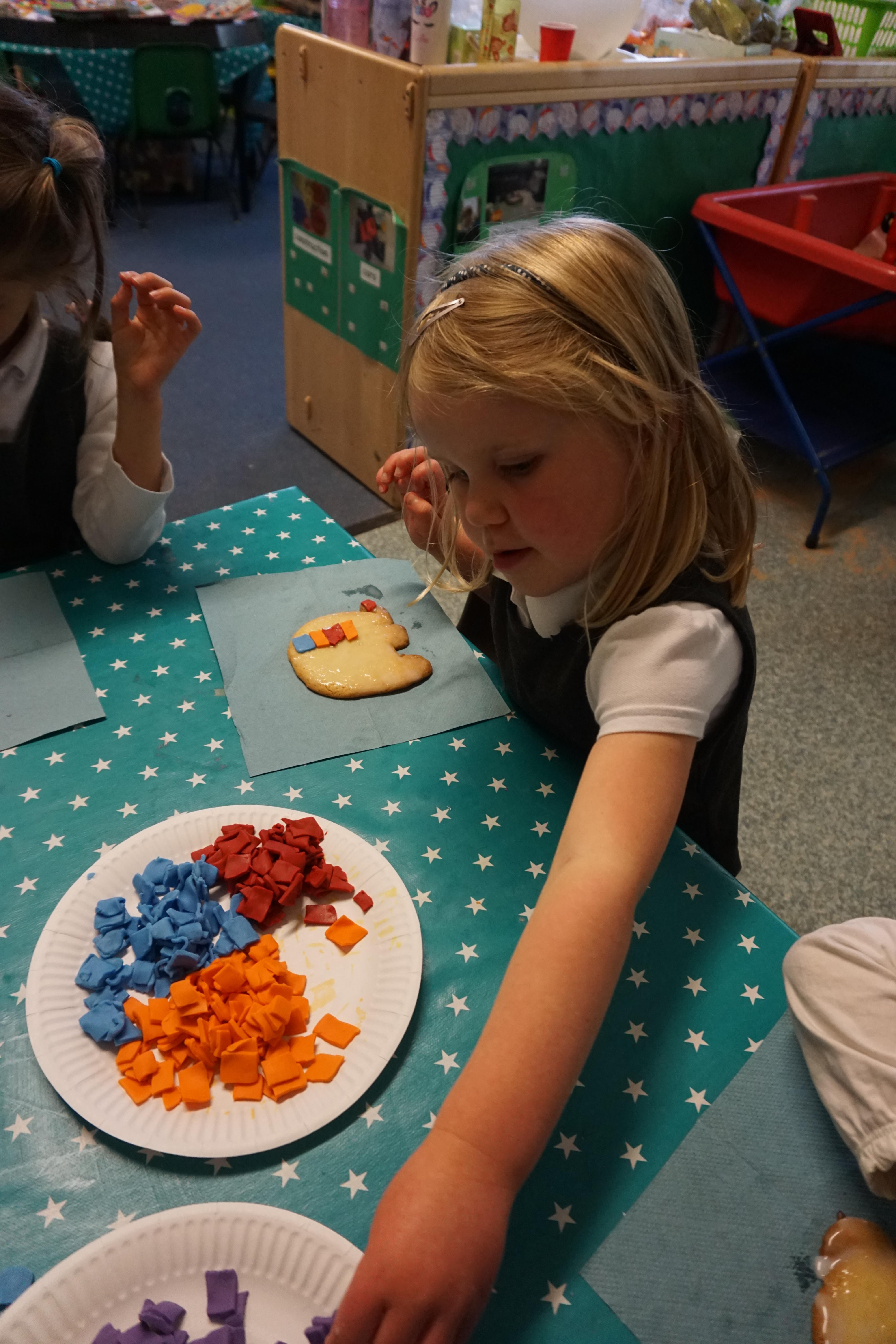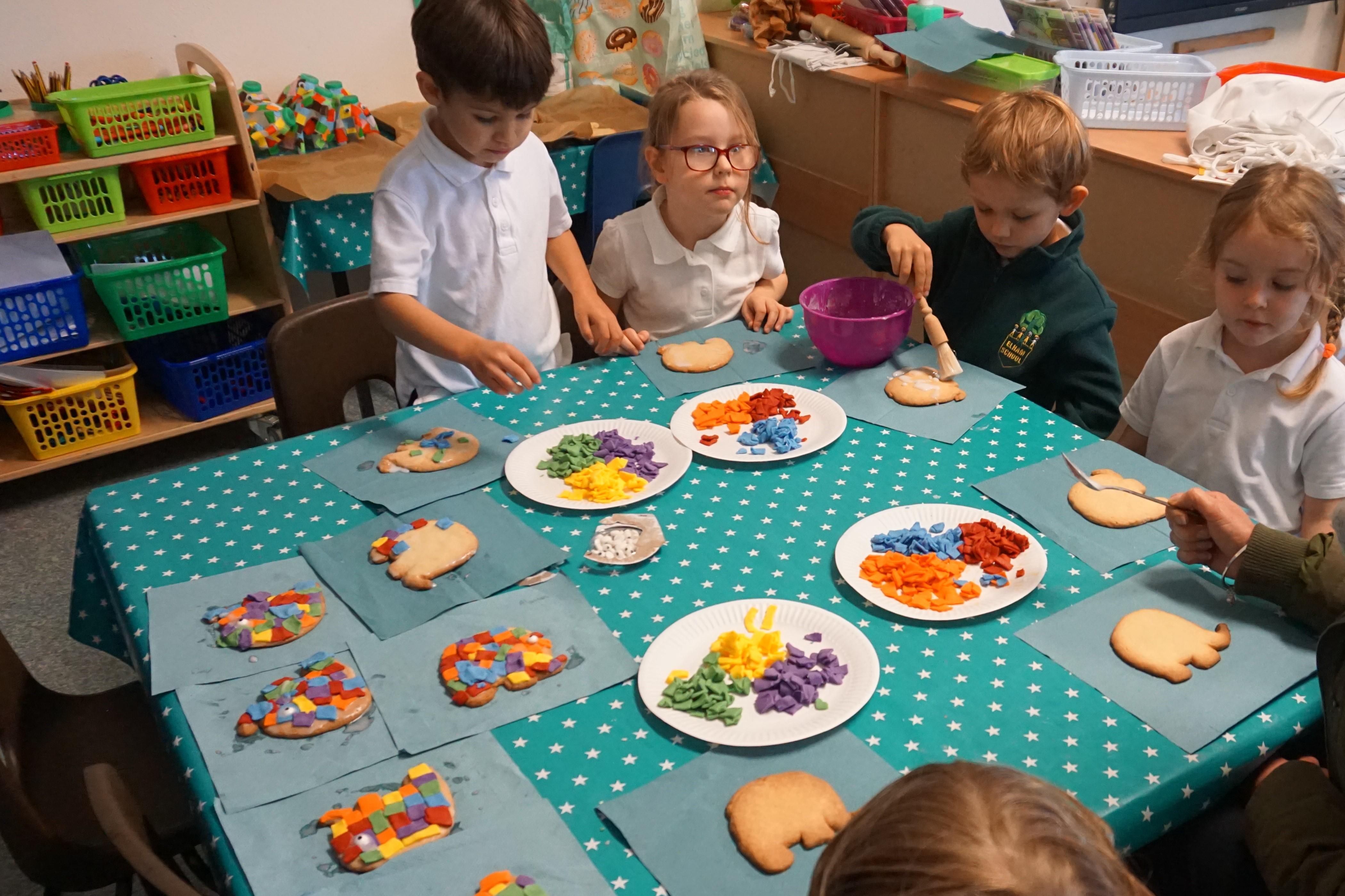 We also made some super Elmer biscuits using the coloured icing to make his patchwork body.