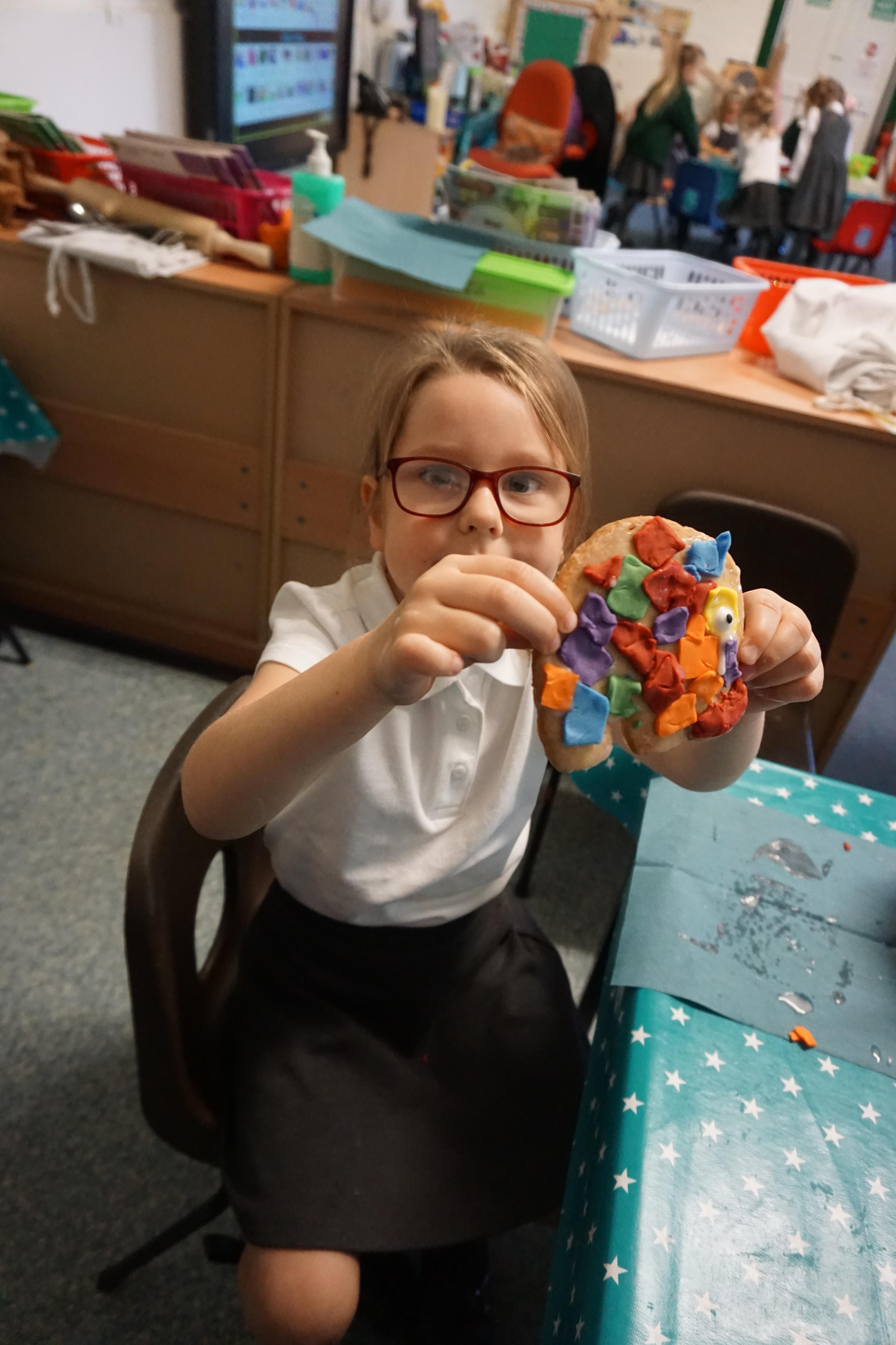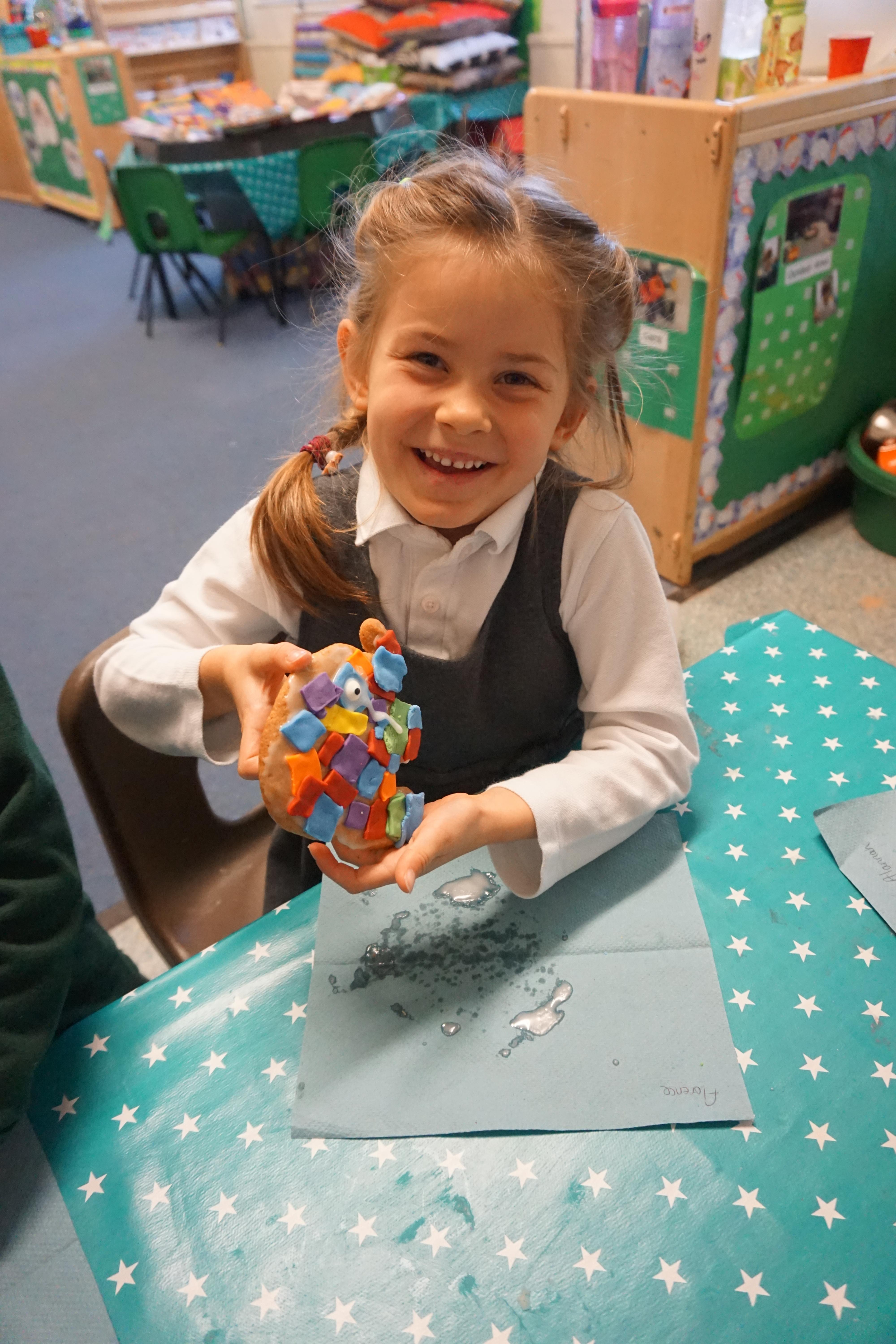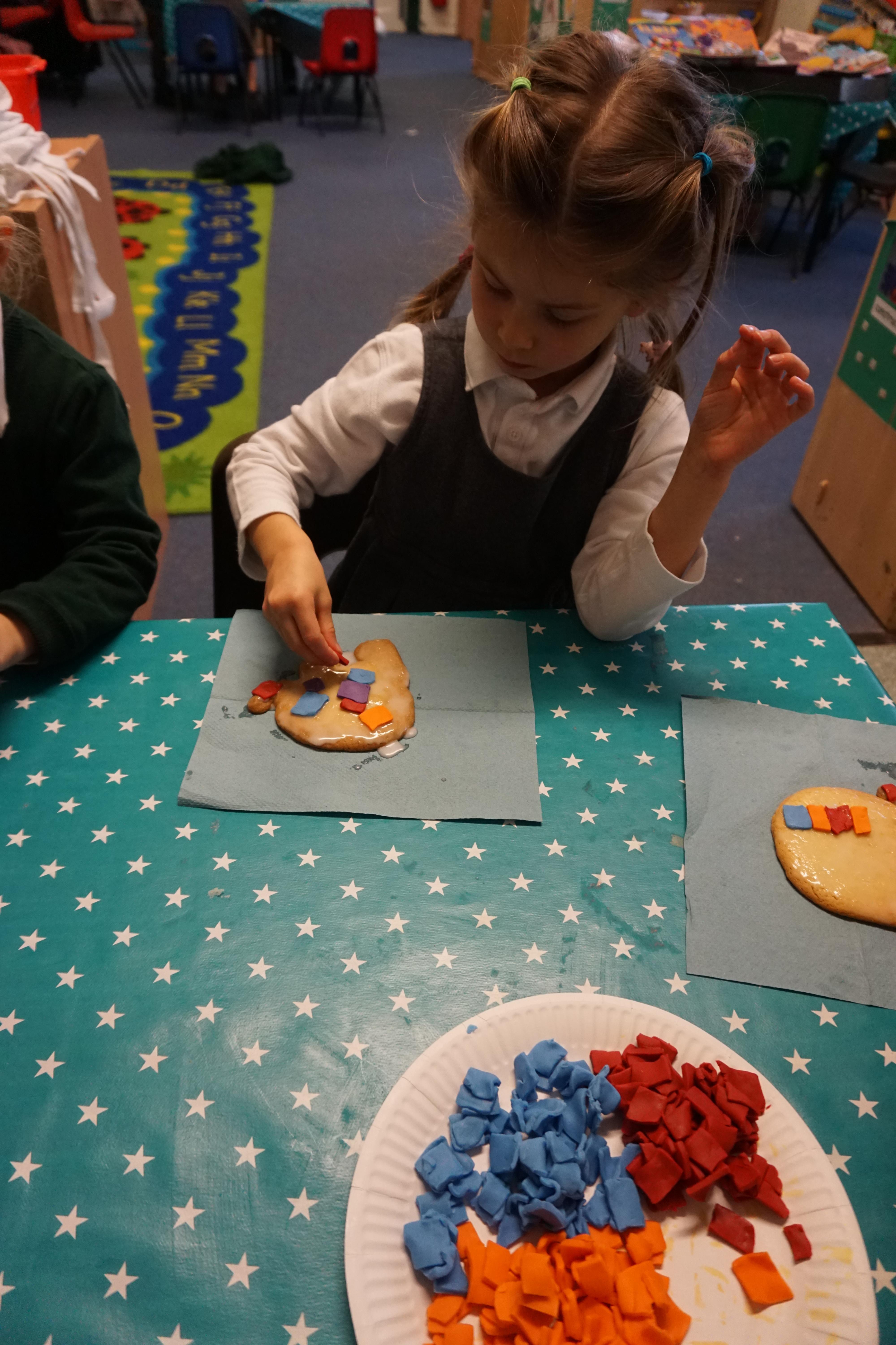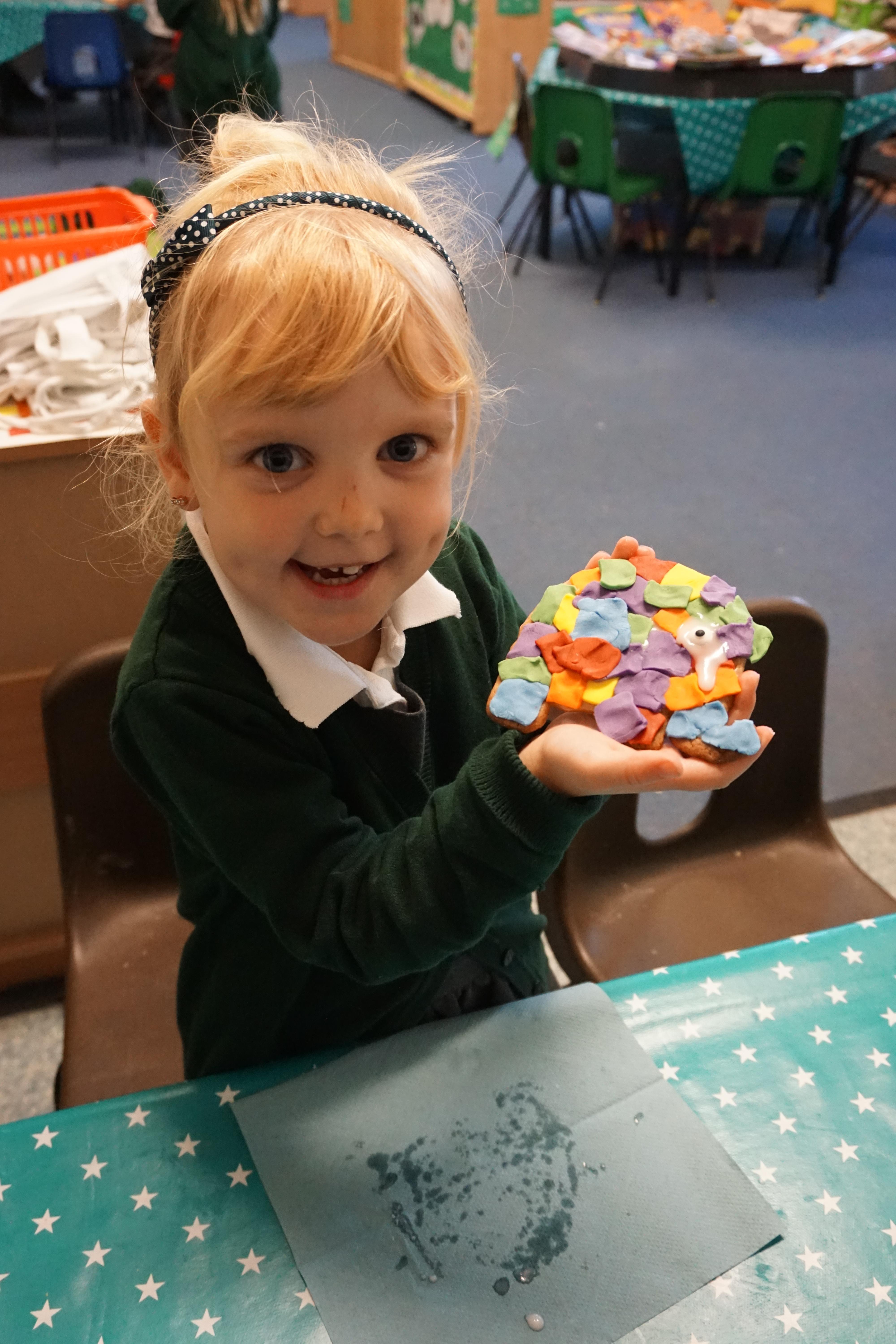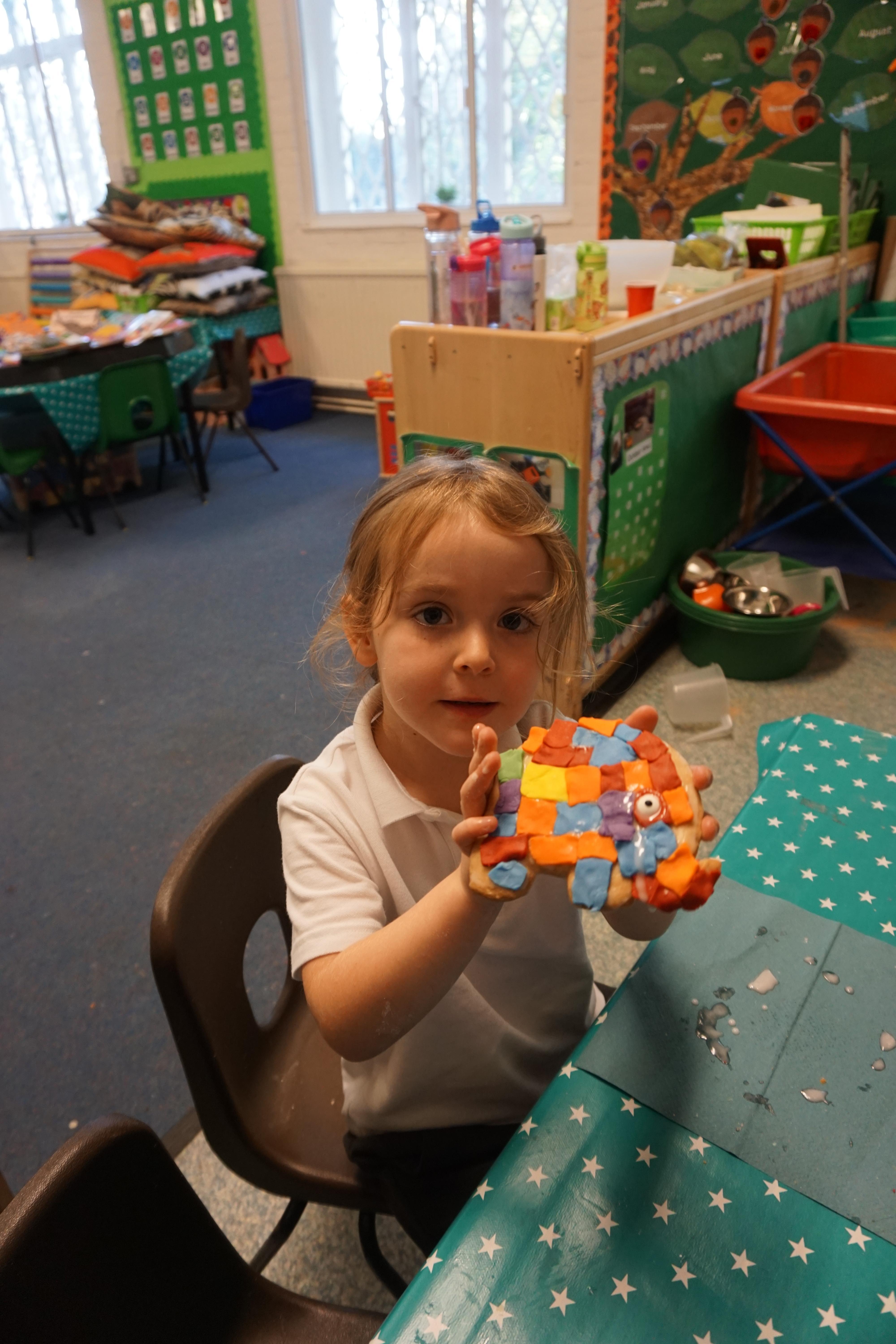 We also made some super Elmer biscuits using the coloured icing to make his patchwork body.