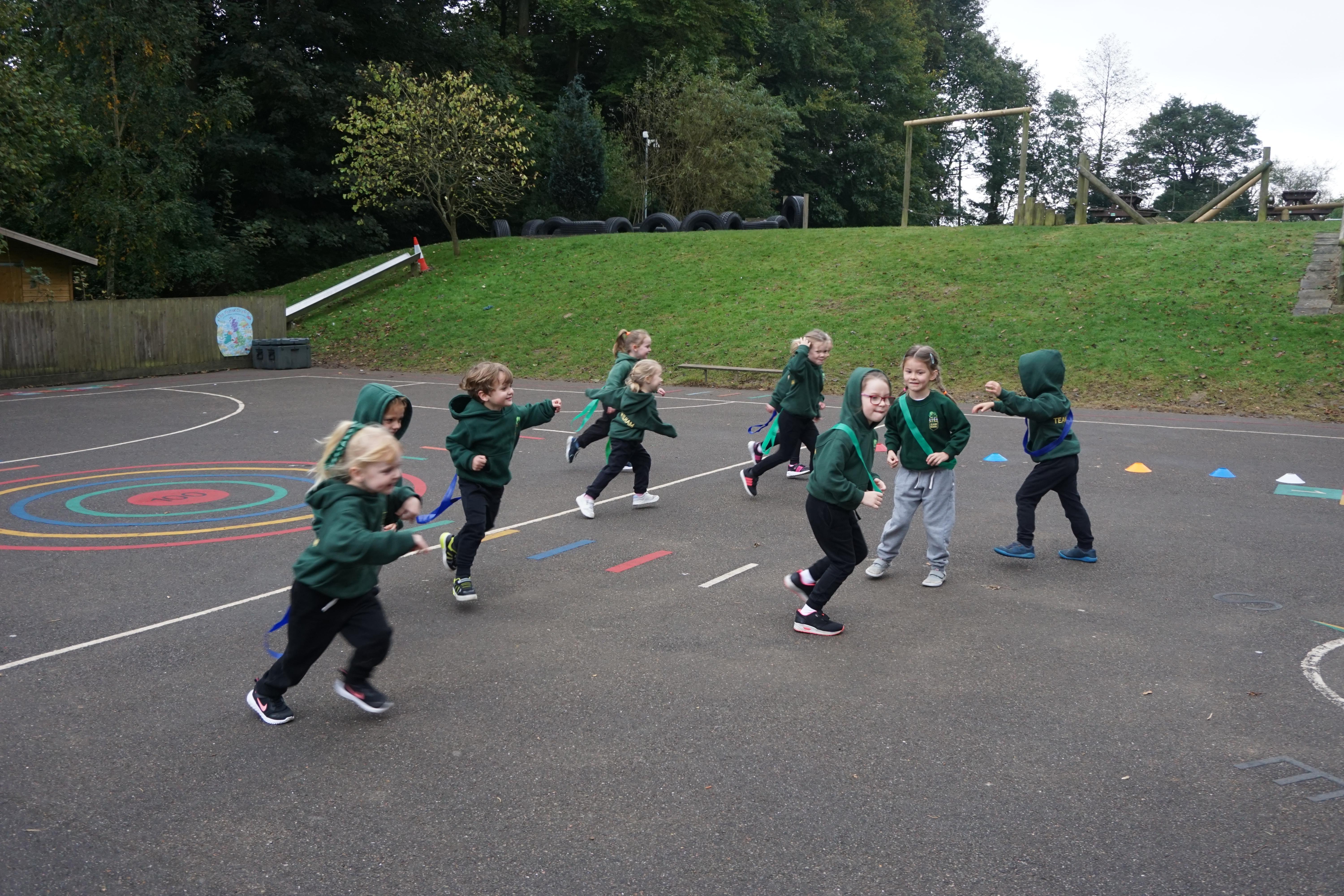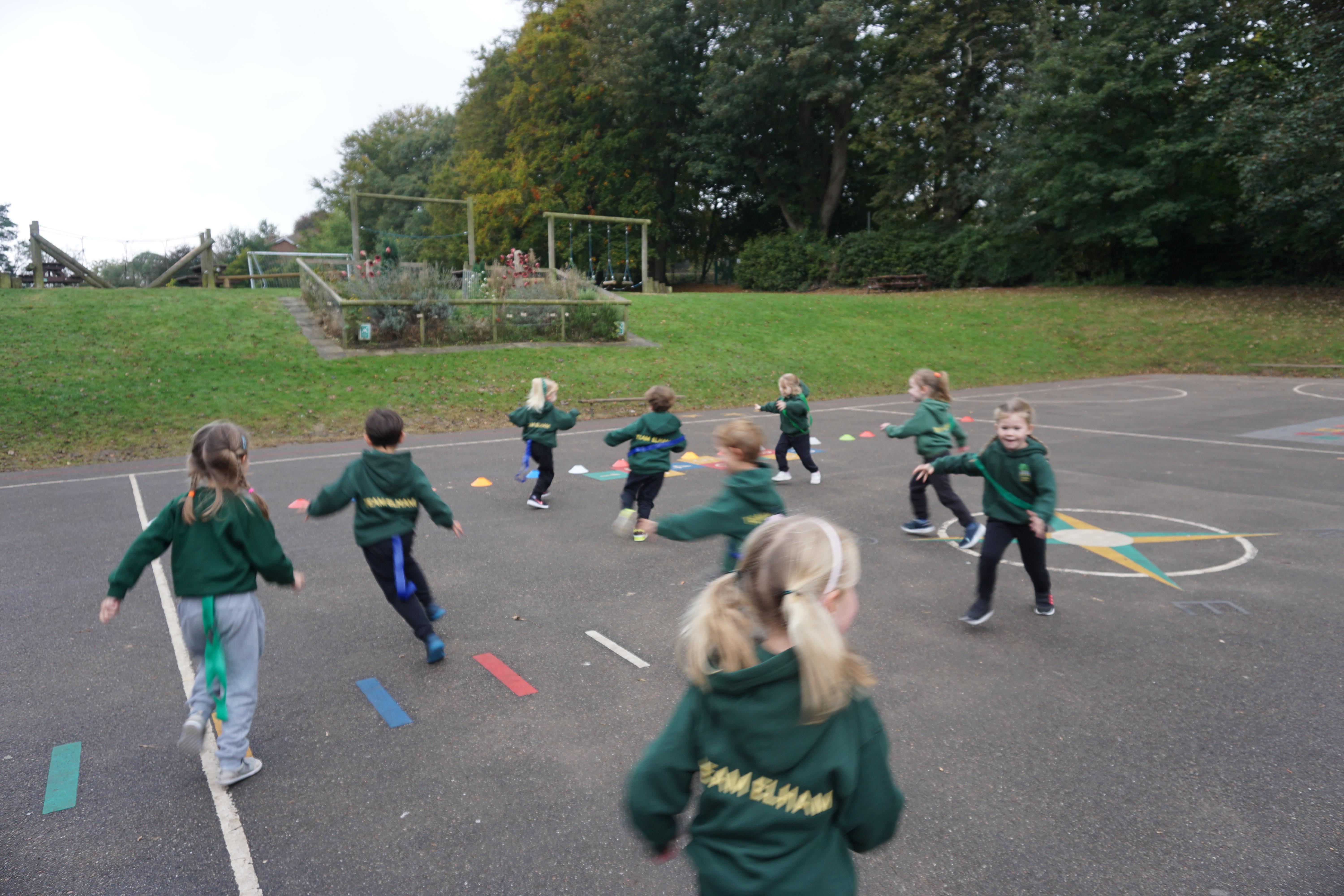 PE was fun, we played farmers and foxes and started to learn the rules of a game.