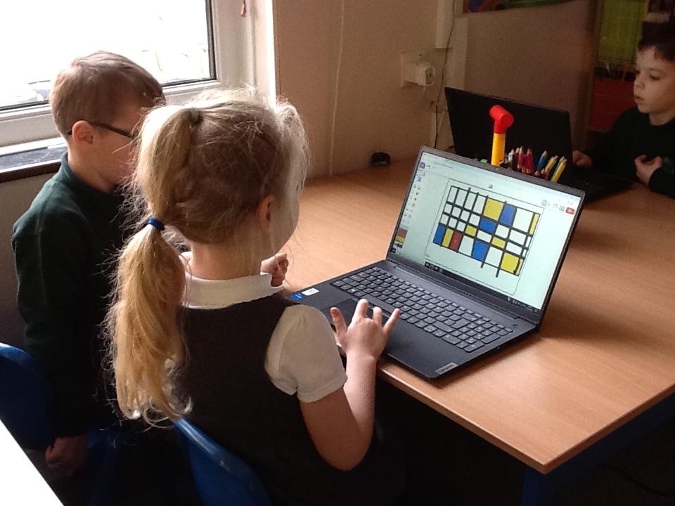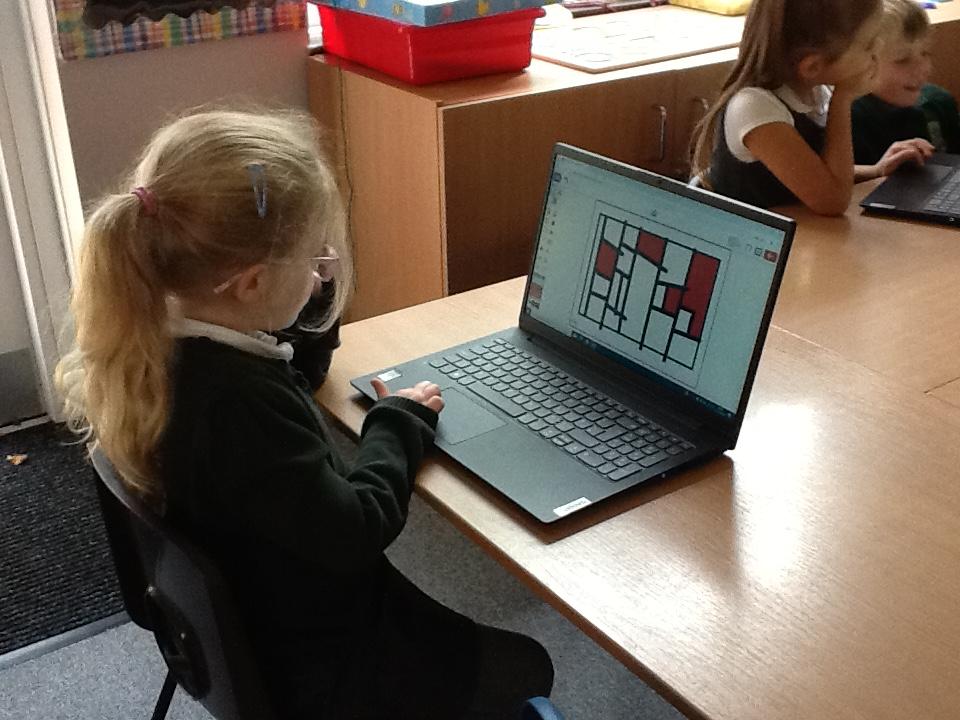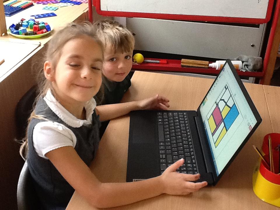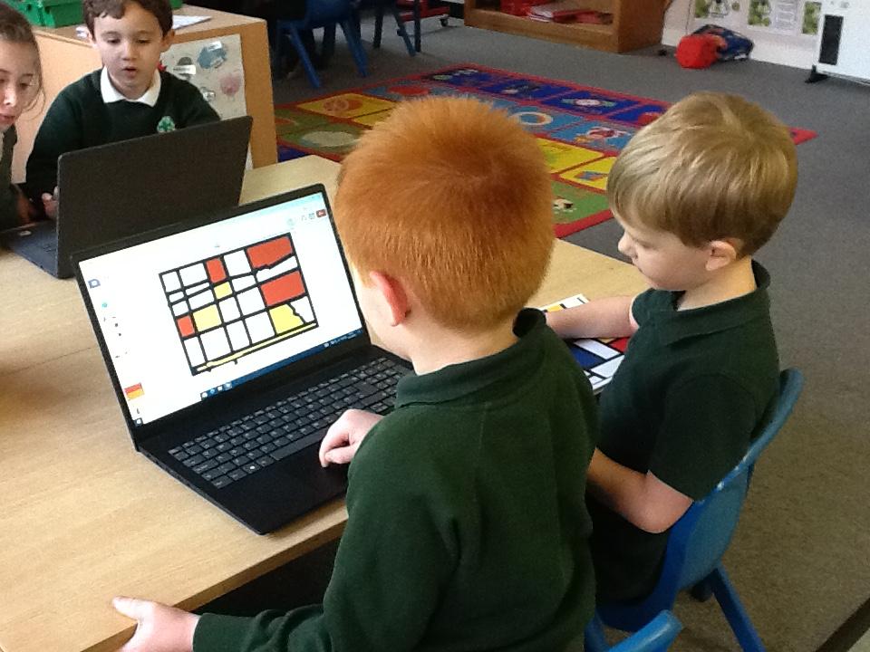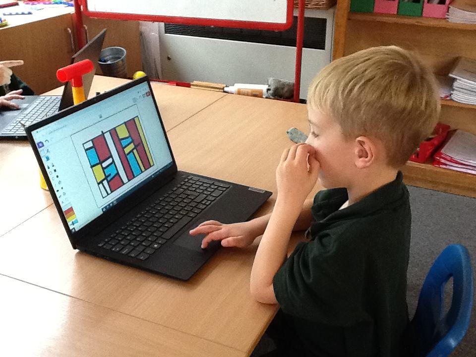 Our task this week was to be able to use lines and shapes when using the paint programme in purple mash to recreate the work of an artist. We looked at Piet Mondrian, the children worked in pairs or individually to create their own version of his abstract art. We had some brilliant creations!