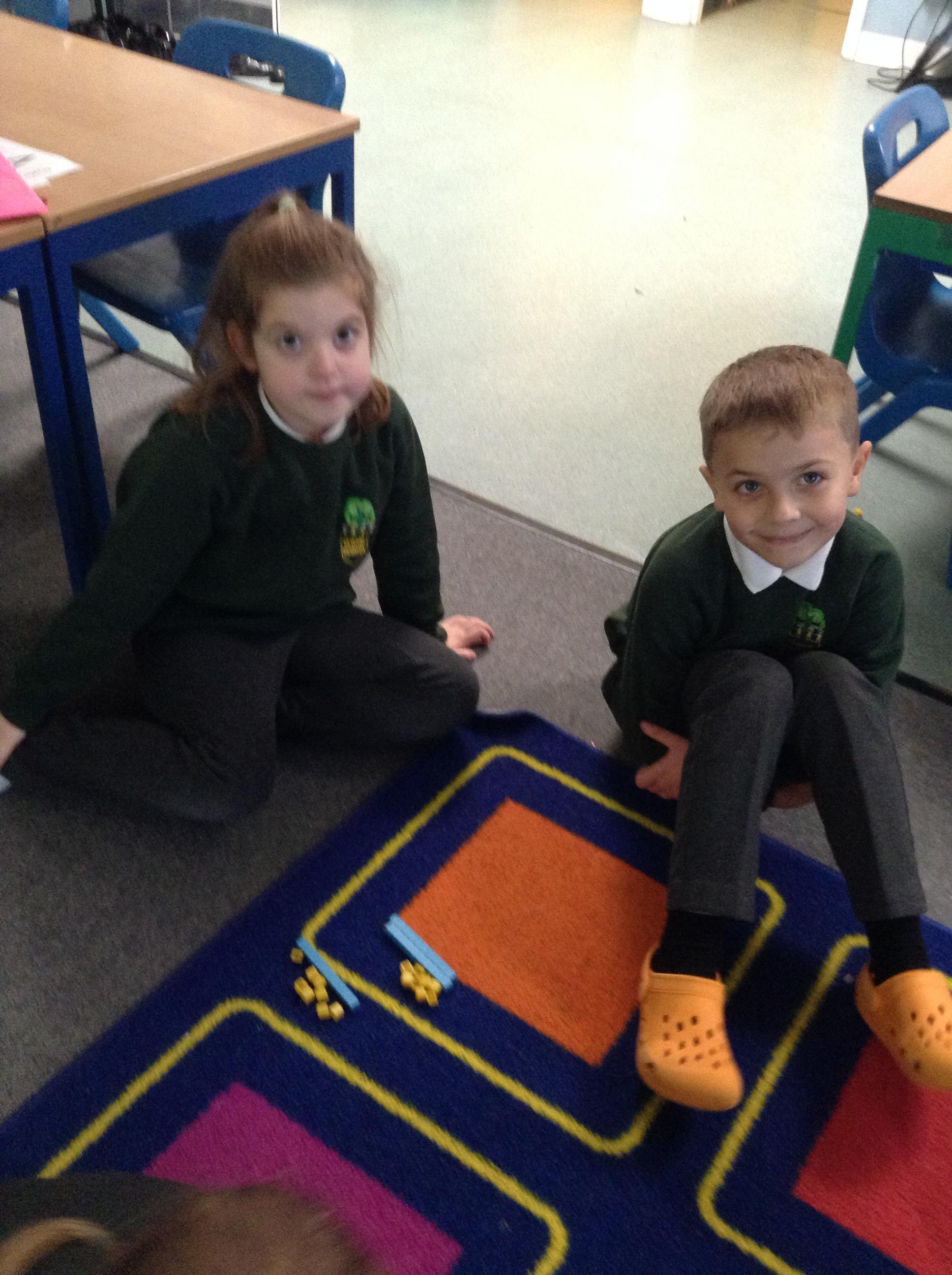 Today we have been using base ten blocks to add 2-digit numbers across 10.