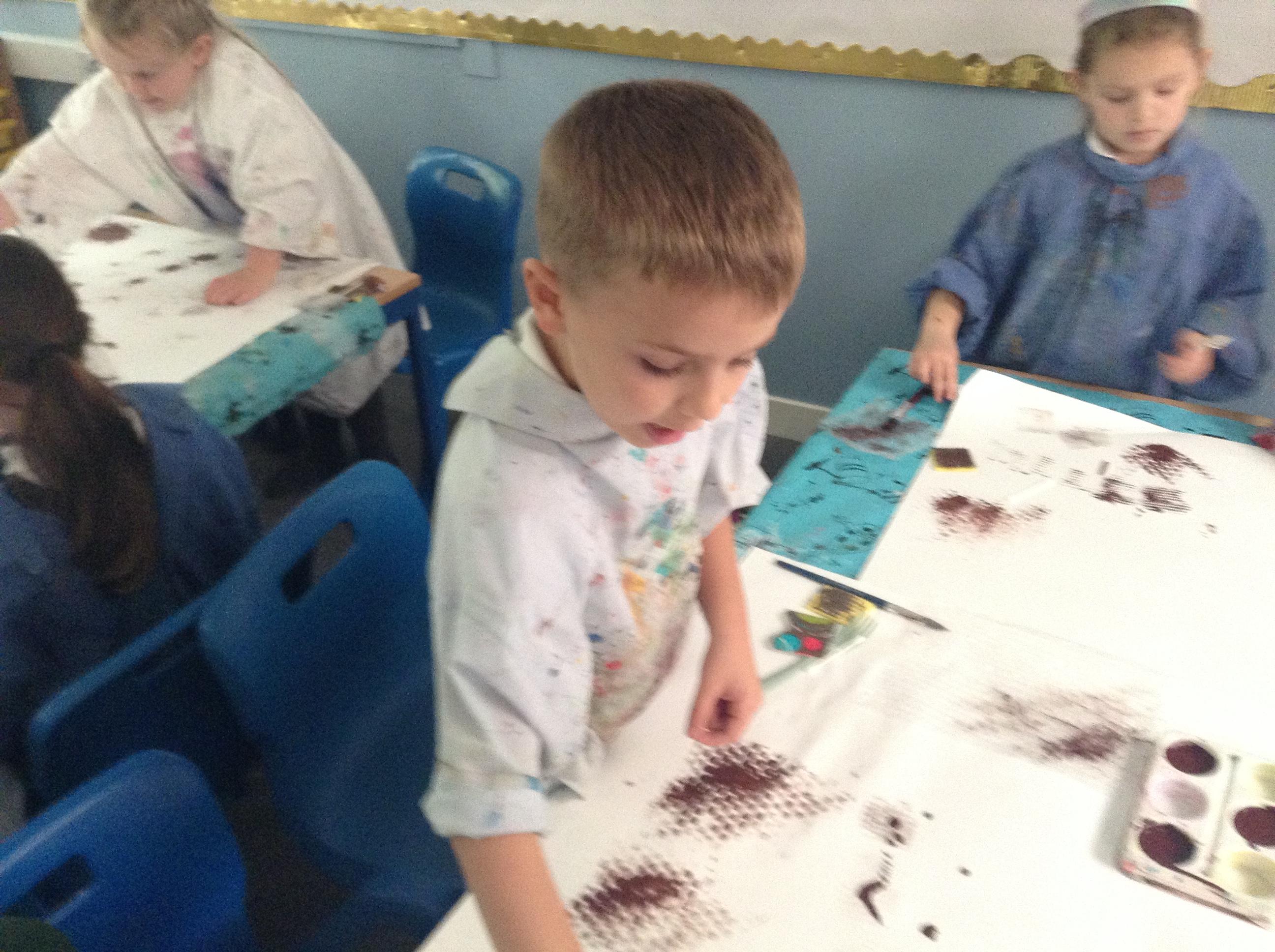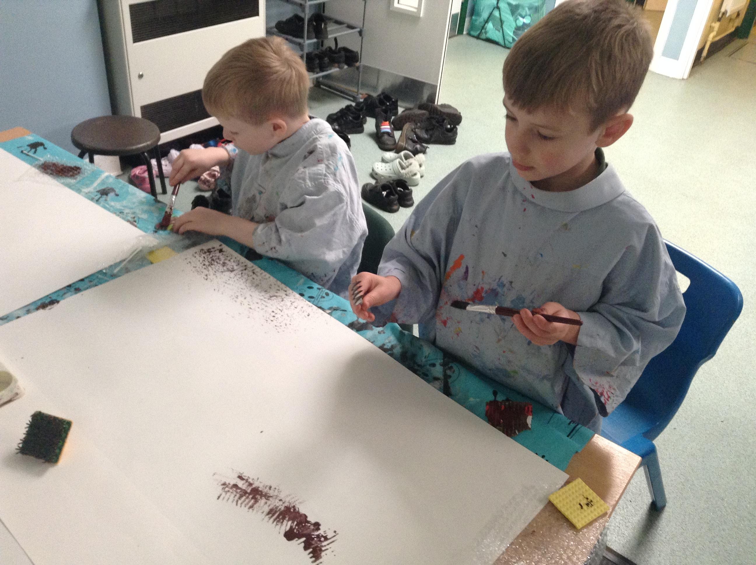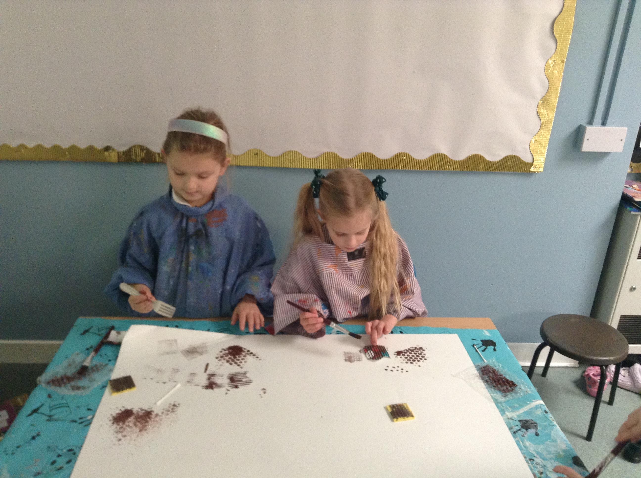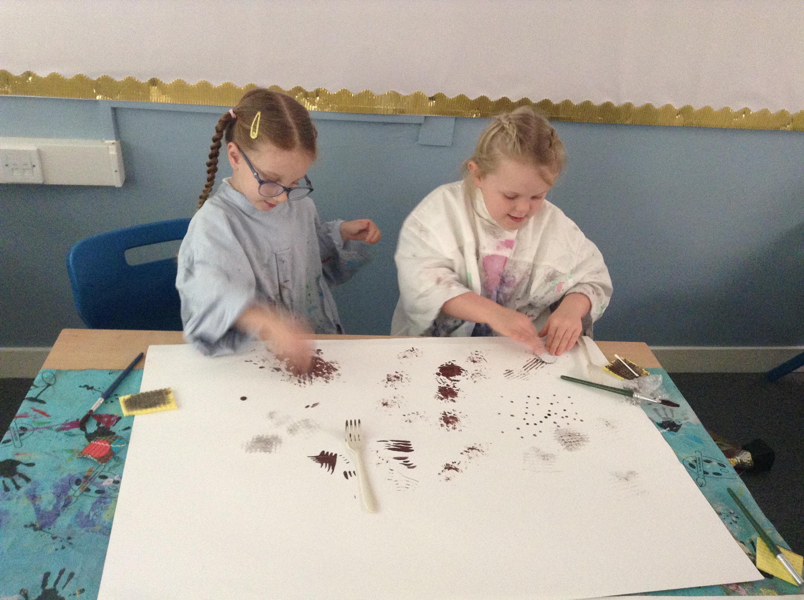 The children have been using paint to create different textures.